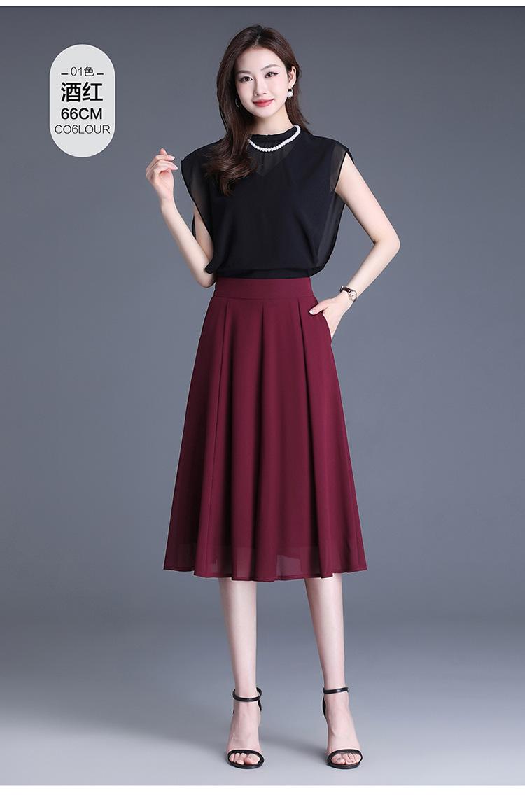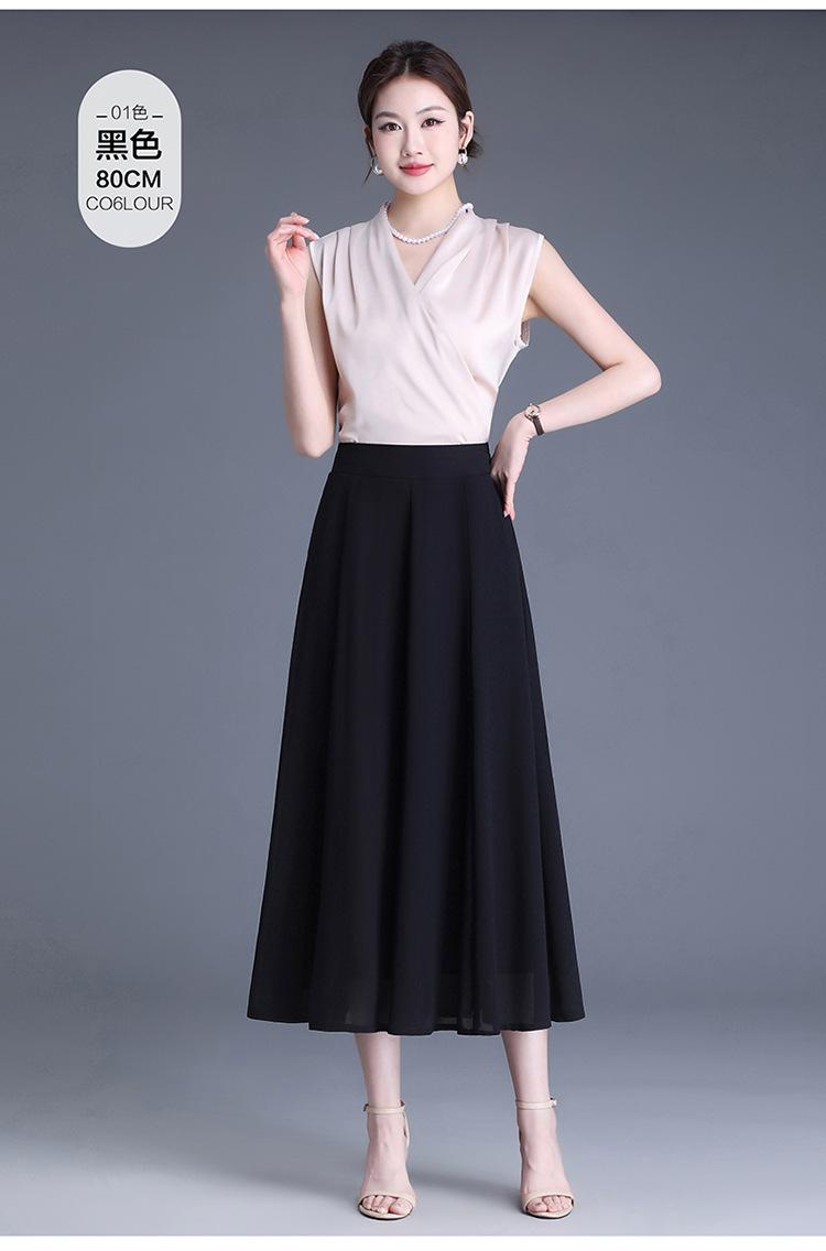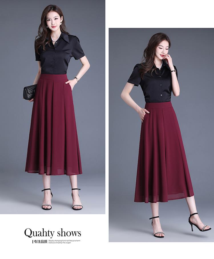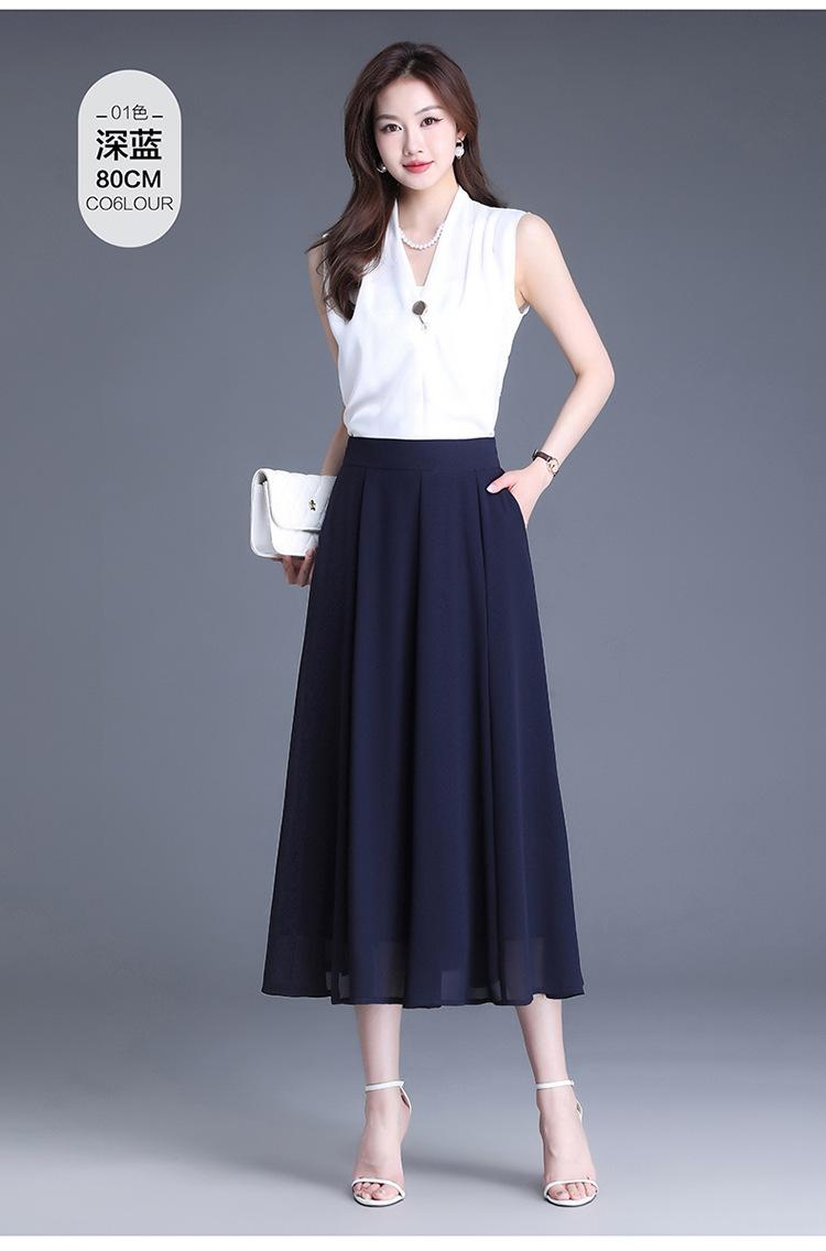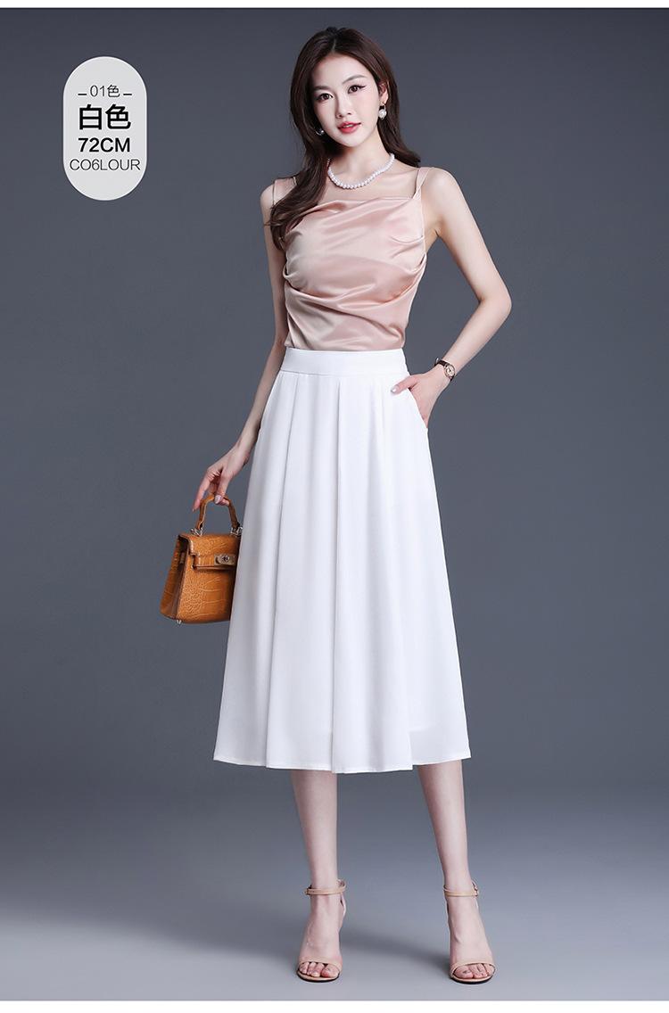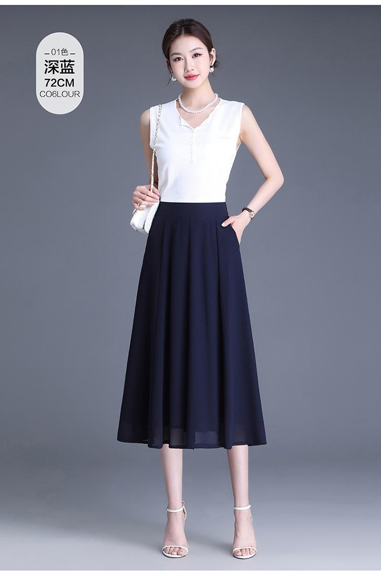 Elegante Falda Delgada de Gasa en A para Mujer 2025 Verano Nuevo Estilo Coreano Cintura Alta Plisada Midi