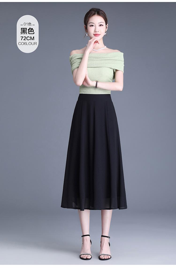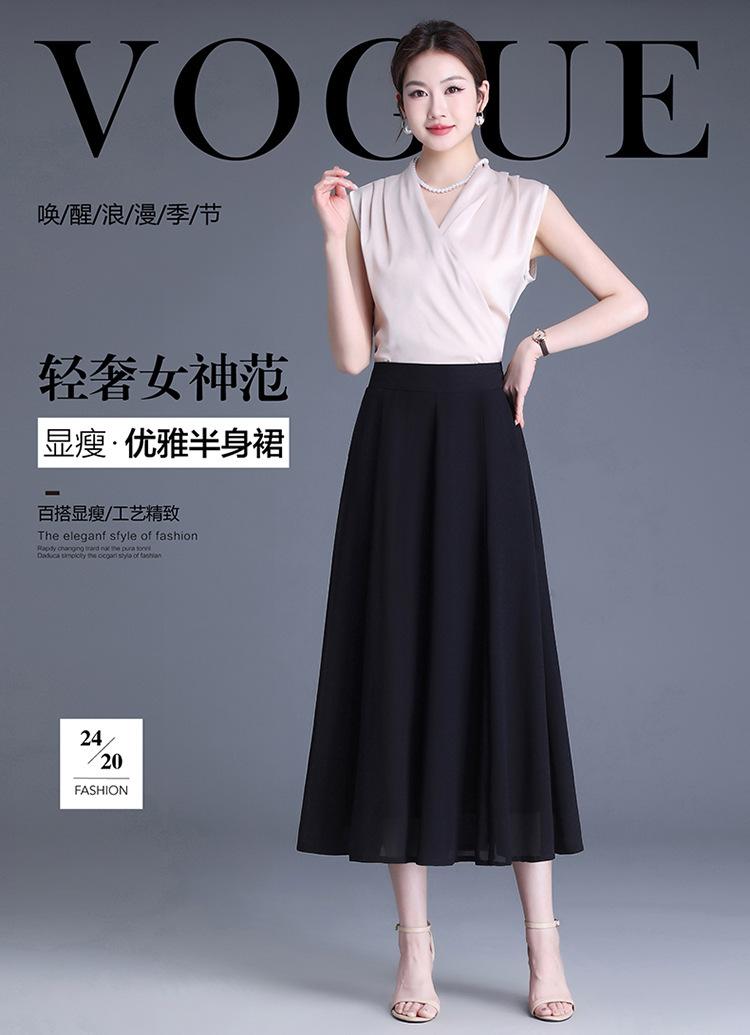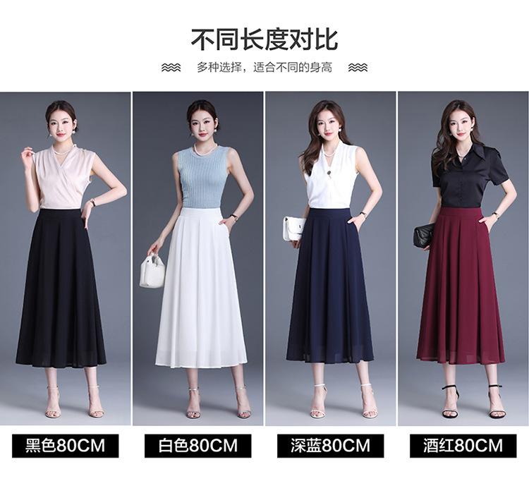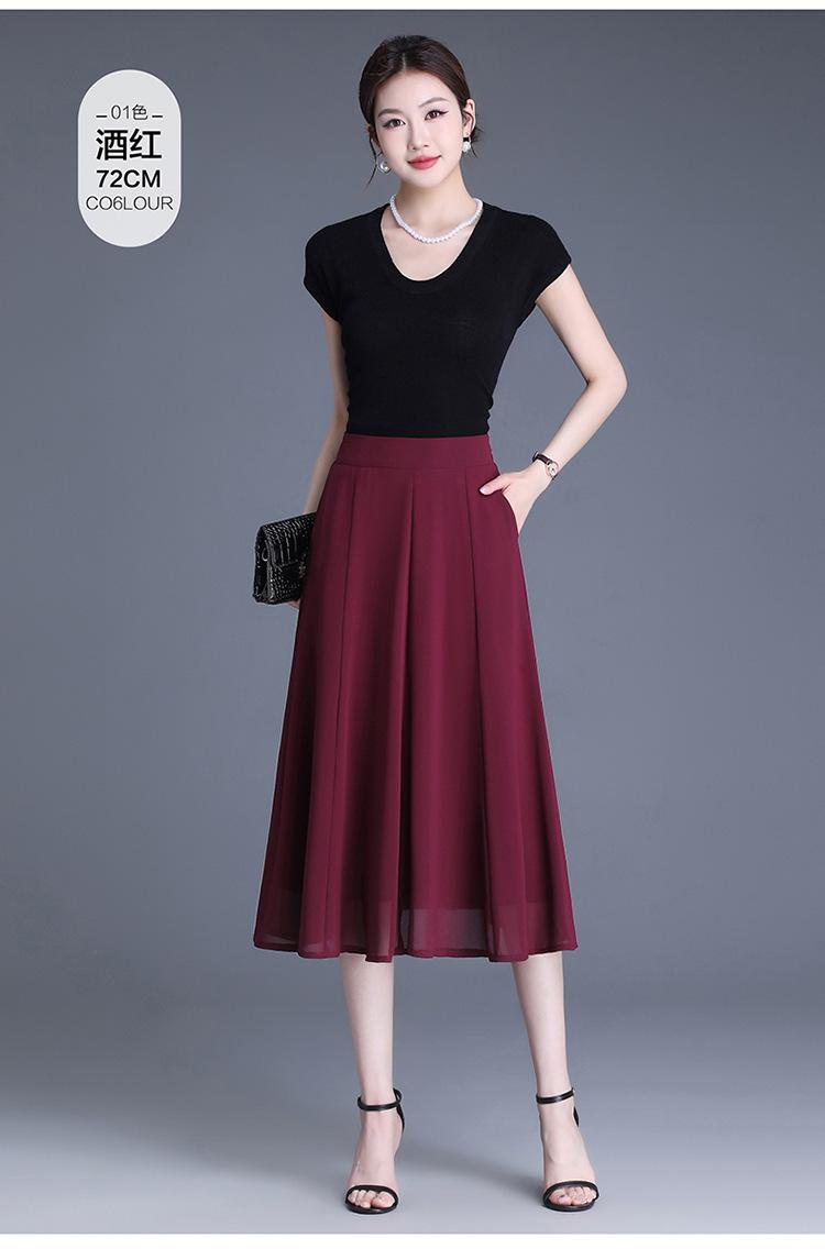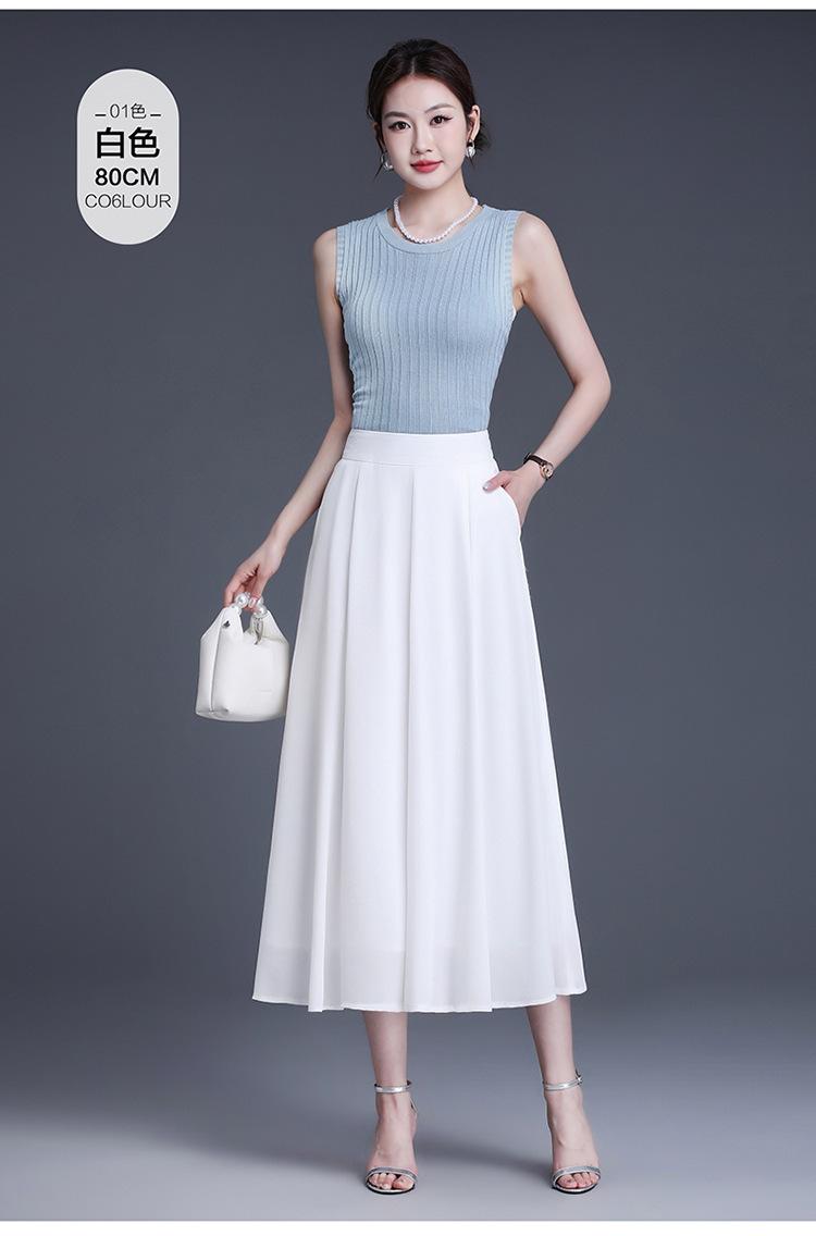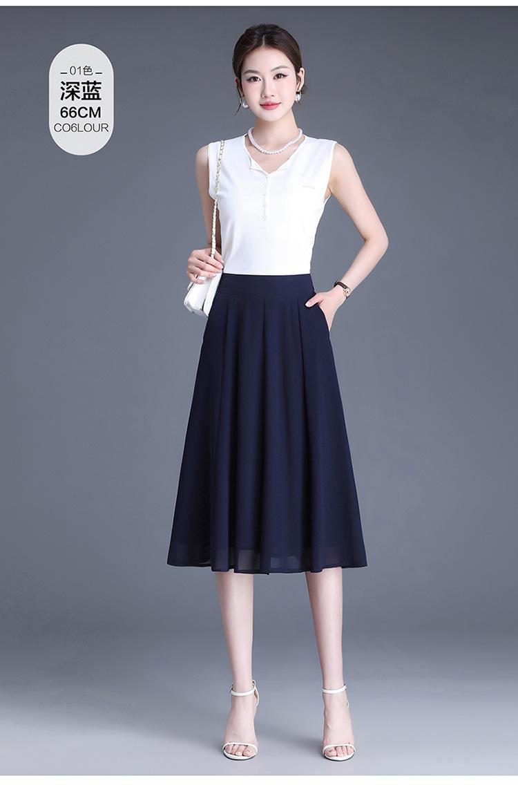 Elegante Falda Delgada de Gasa en A para Mujer 2025 Verano Nuevo Estilo Coreano Cintura Alta Plisada Midi