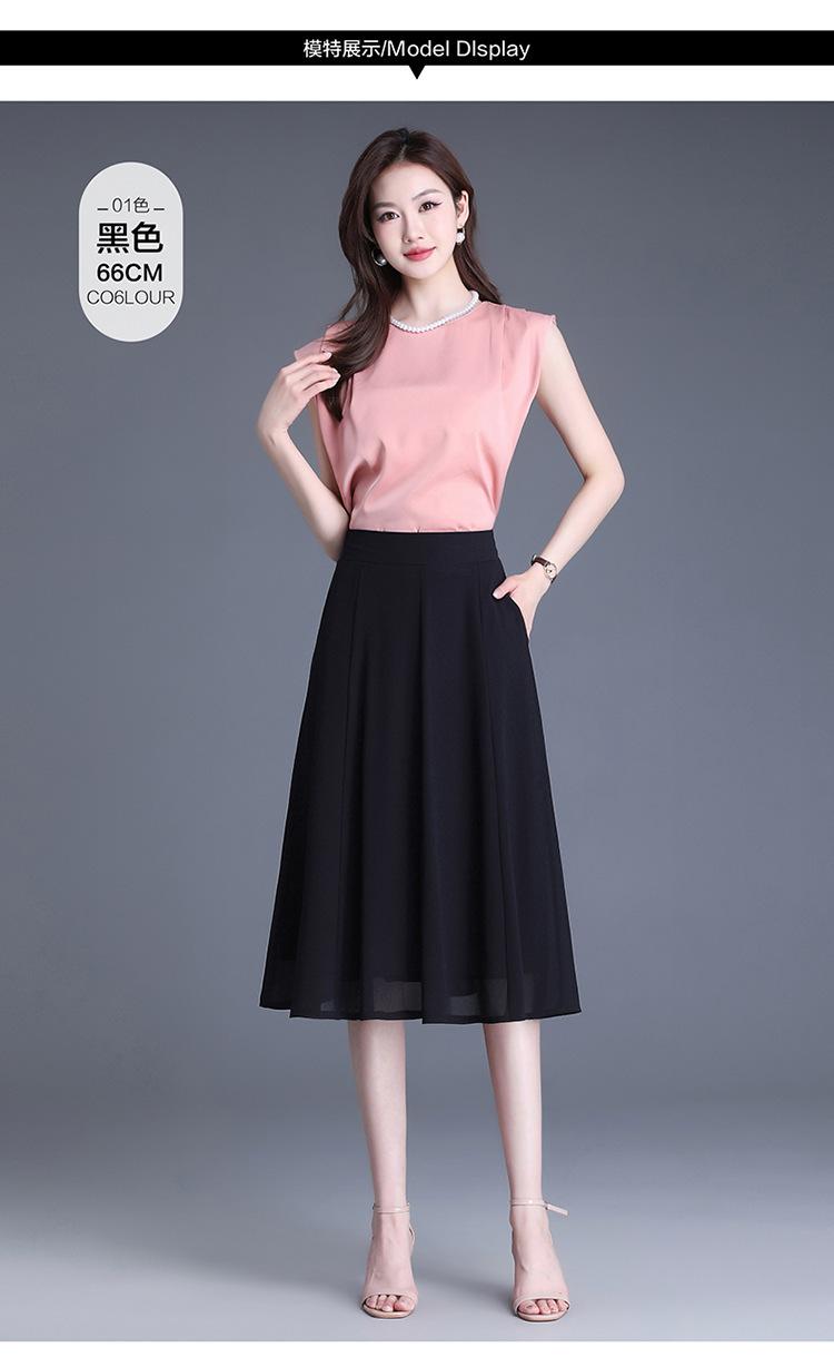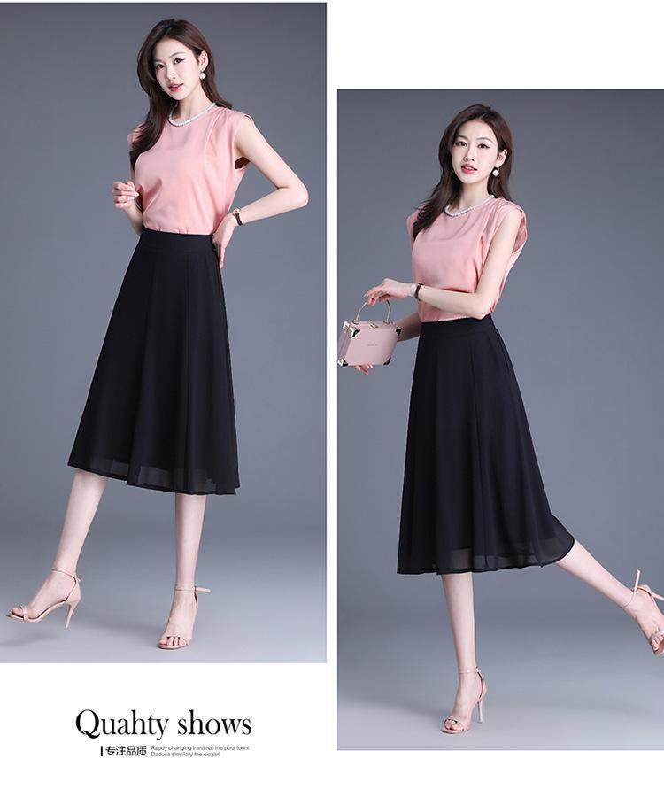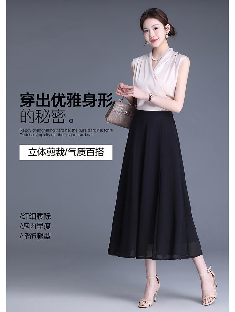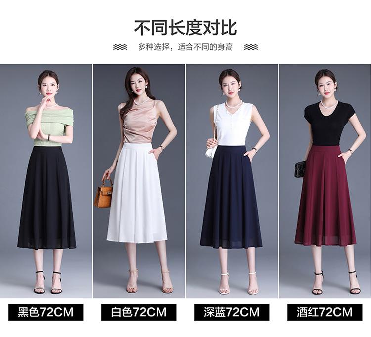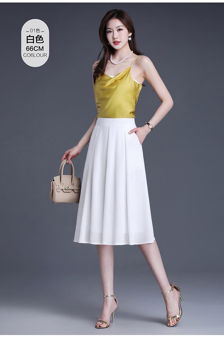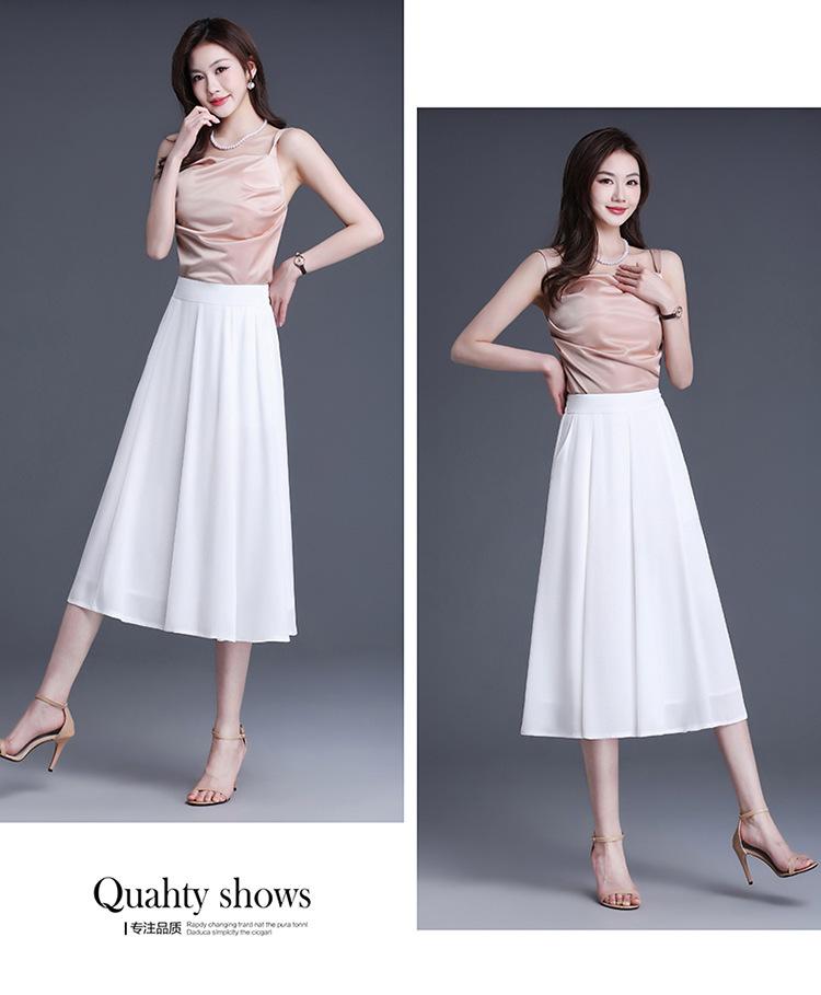 Elegante Falda Delgada de Gasa en A para Mujer 2025 Verano Nuevo Estilo Coreano Cintura Alta Plisada Midi