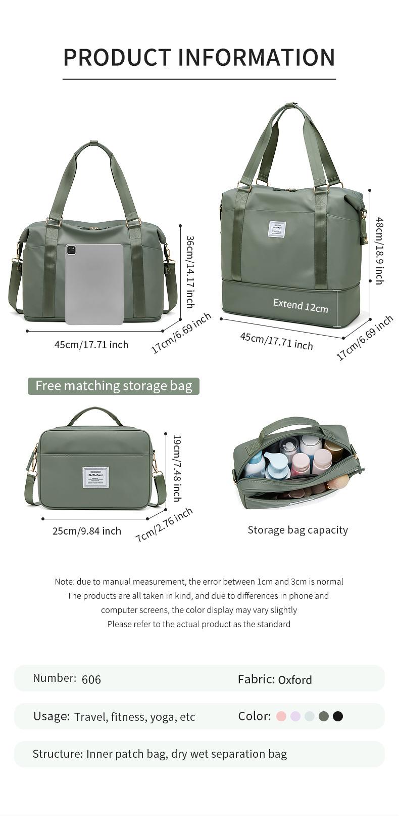 Bolsa de viaje para mujer, de gran capacidad, portátil, impermeable, con separación de ropa húmeda y seca, bolsa de equipaje para viajes de negocios de corta distancia, bolsa de almacenamiento para máquina de embarque