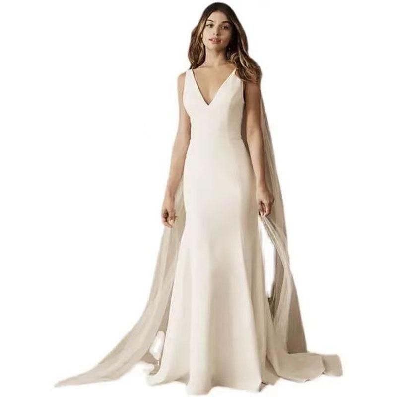 Vestido de Noche Blanco 2025 Nuevo Estilo Elegante Anfitrión de Banquete Francés Ligero Vestido de Boda Estilo Largo Vestido para Salir Otoño