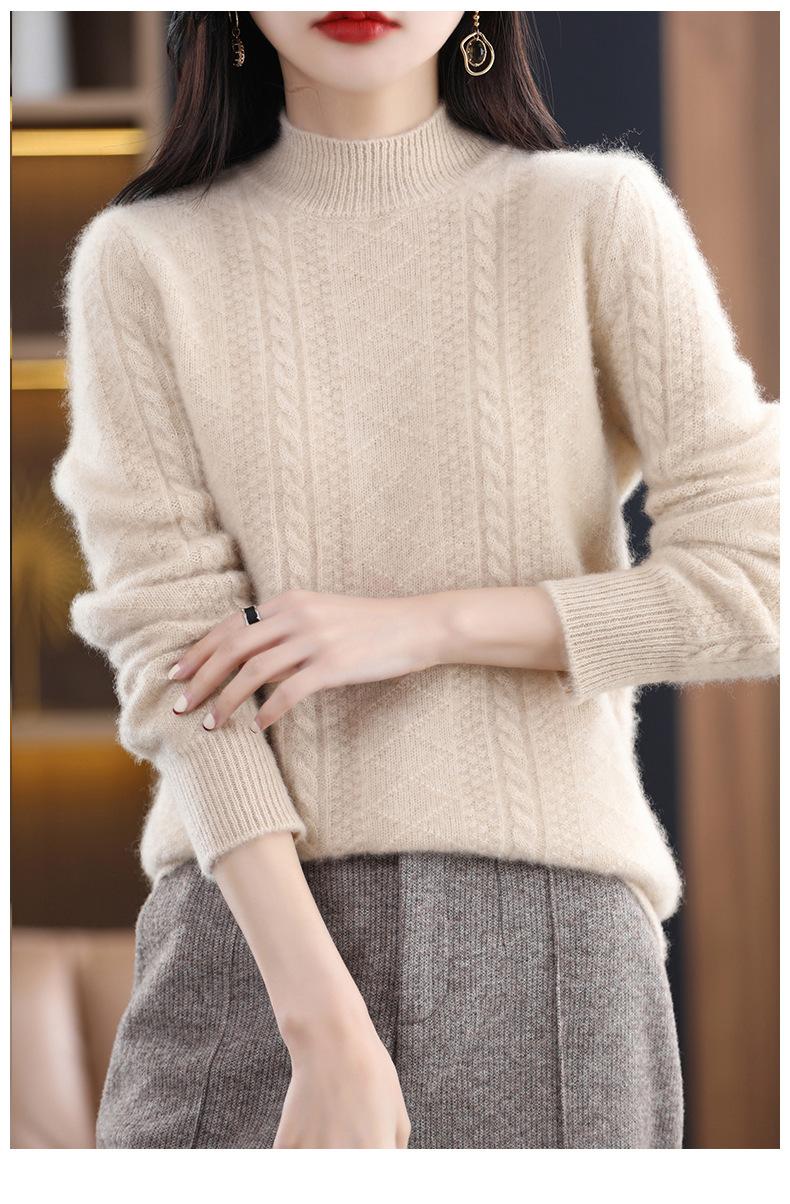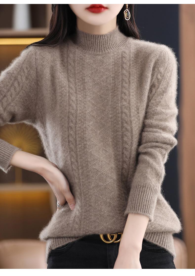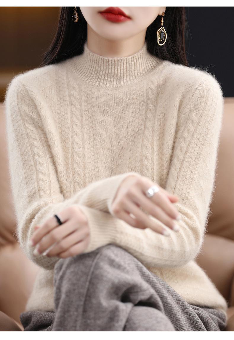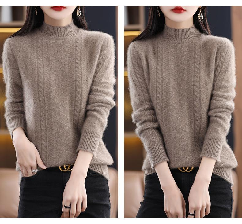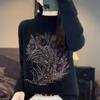 Suéter de punto de lana con cuello en V para mujer, jersey de manga larga de color liso, holgado, con diamantes, para otoño e invierno, 2023