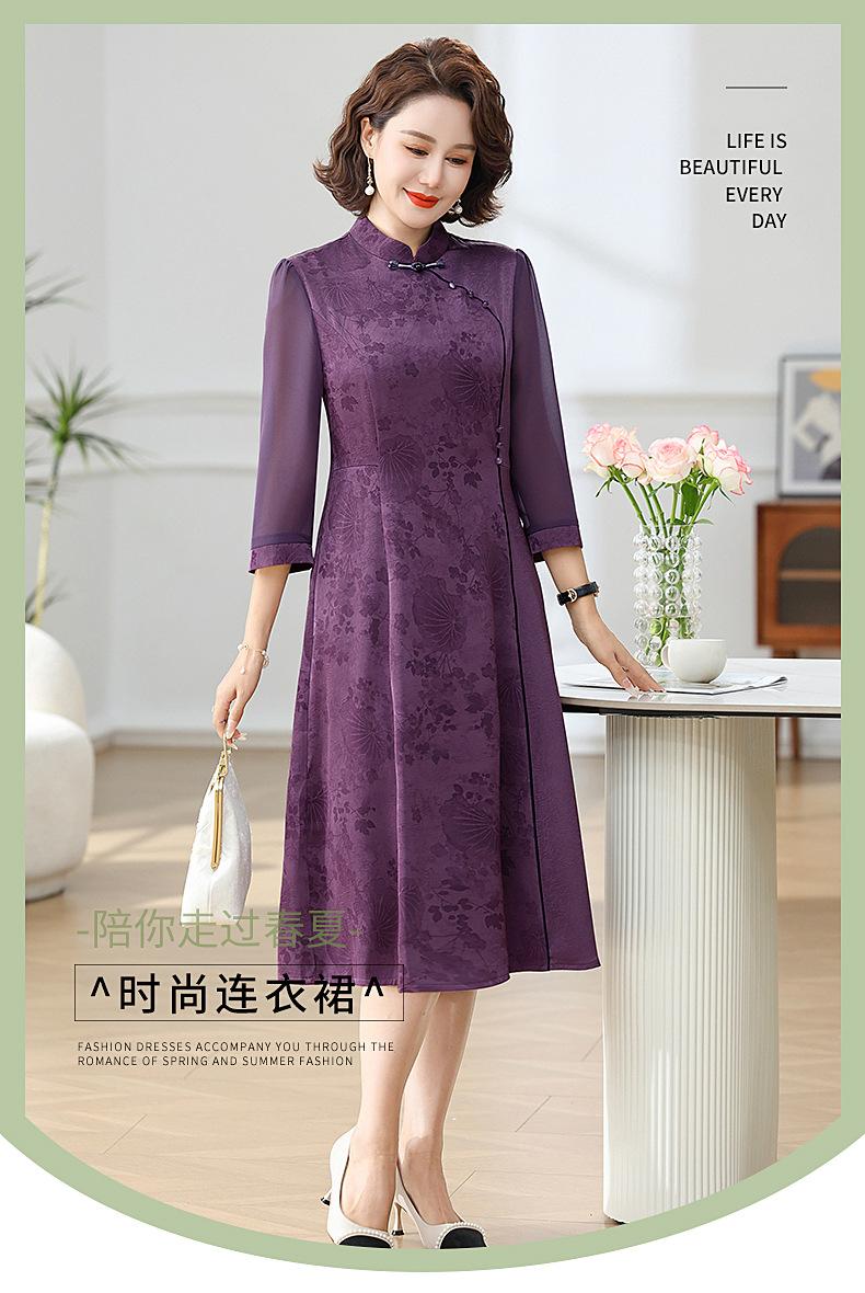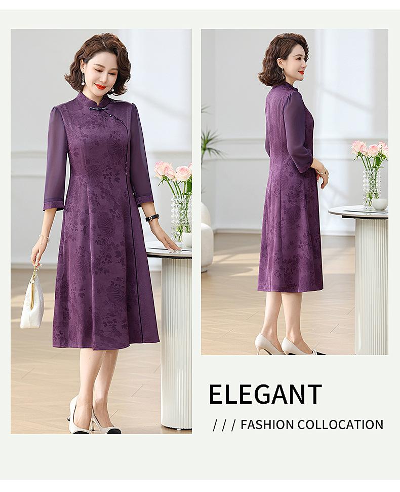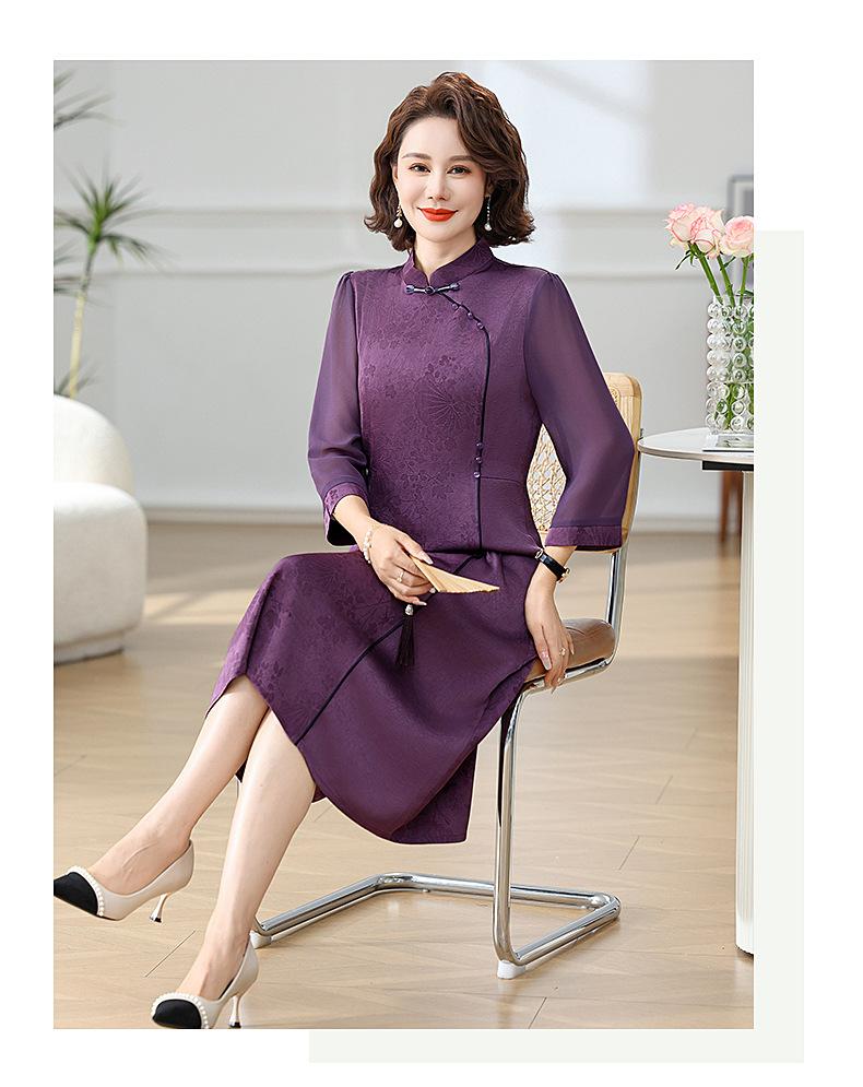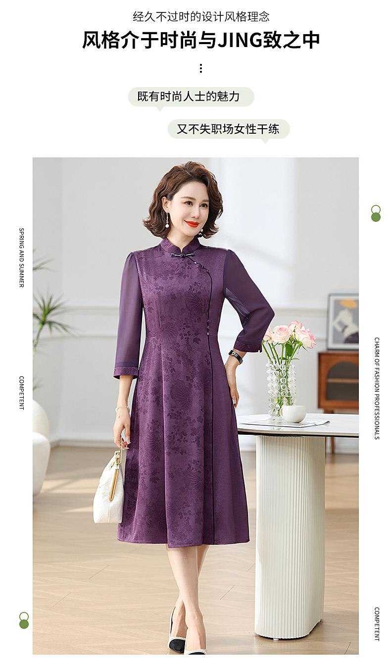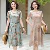 Elegante Vestido de Verano para Mamá con Mangas Cortas de Gasa para Mujeres de Mediana Edad de 50 Años, Socialité y Dama, Vestido Midi de Satén al por Mayor