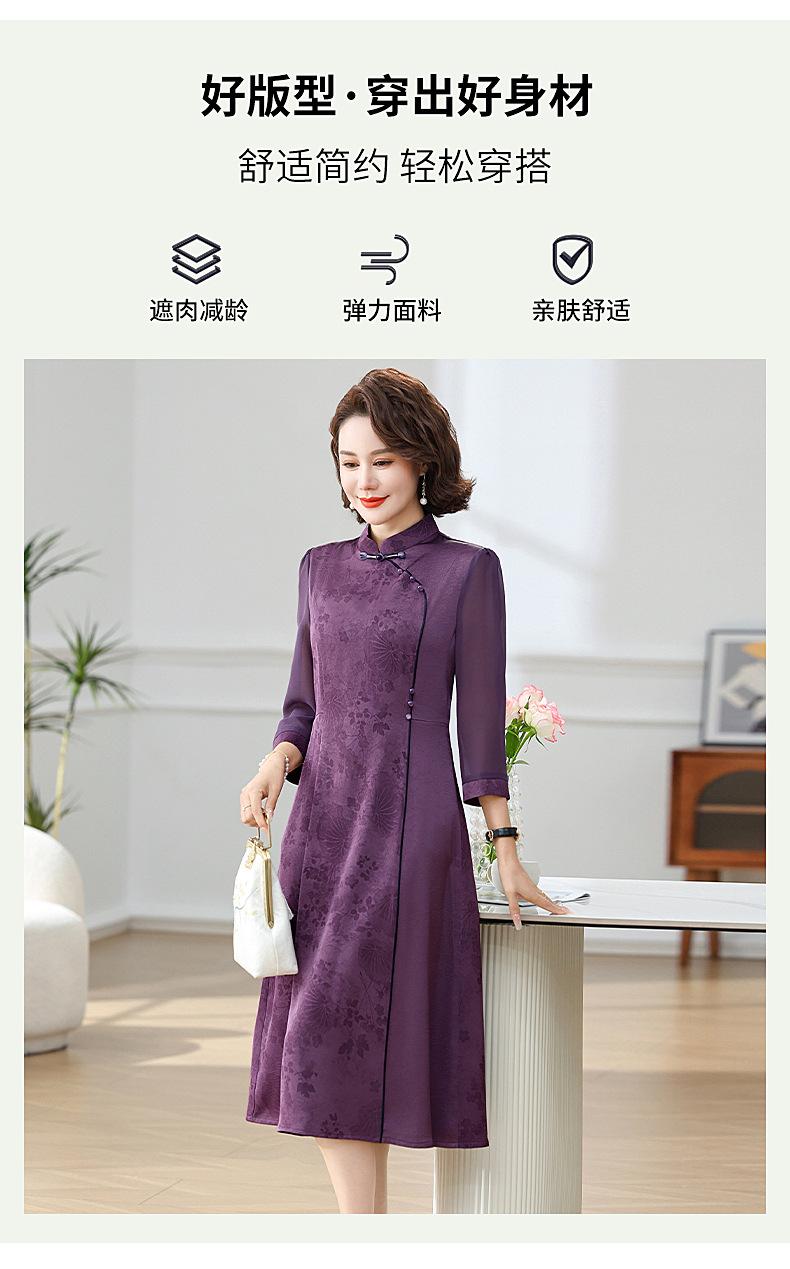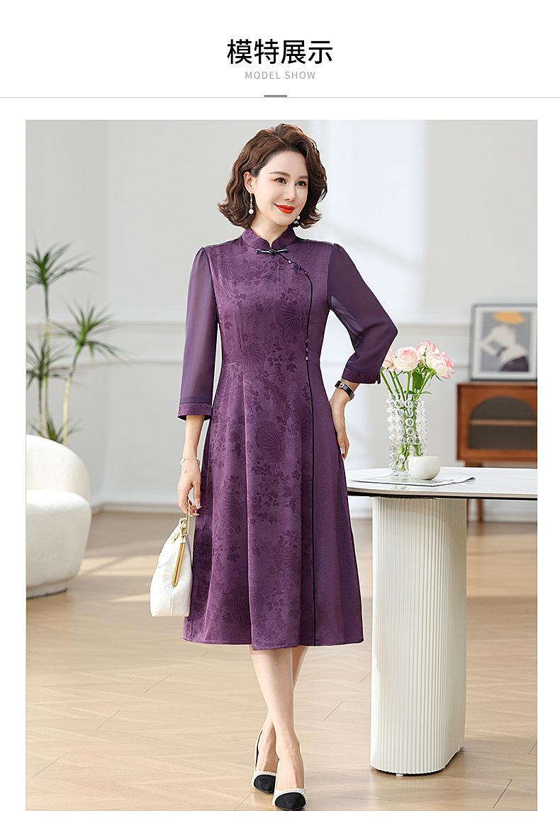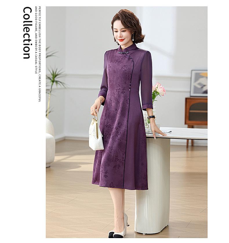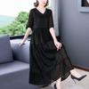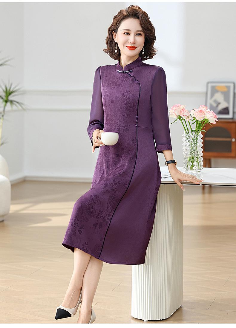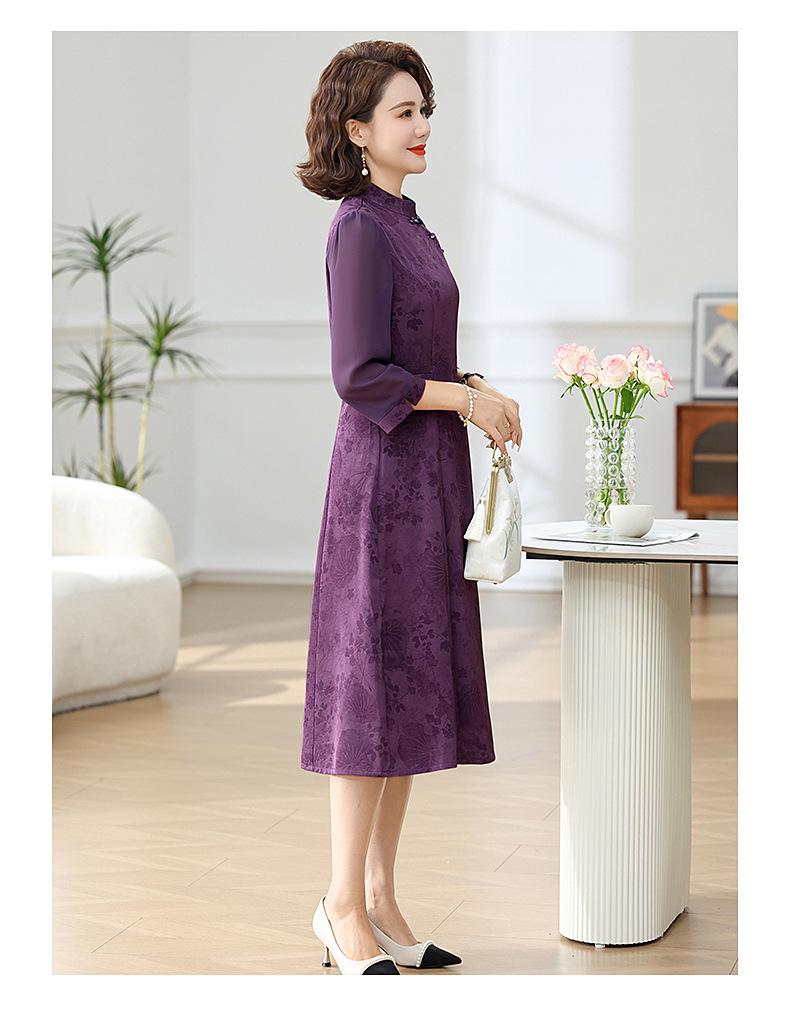 Elegante Vestido de Verano para Mamá con Mangas Cortas de Gasa para Mujeres de Mediana Edad de 50 Años, Socialité y Dama, Vestido Midi de Satén al por Mayor