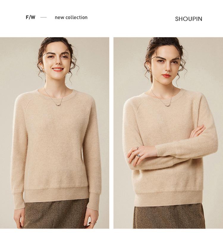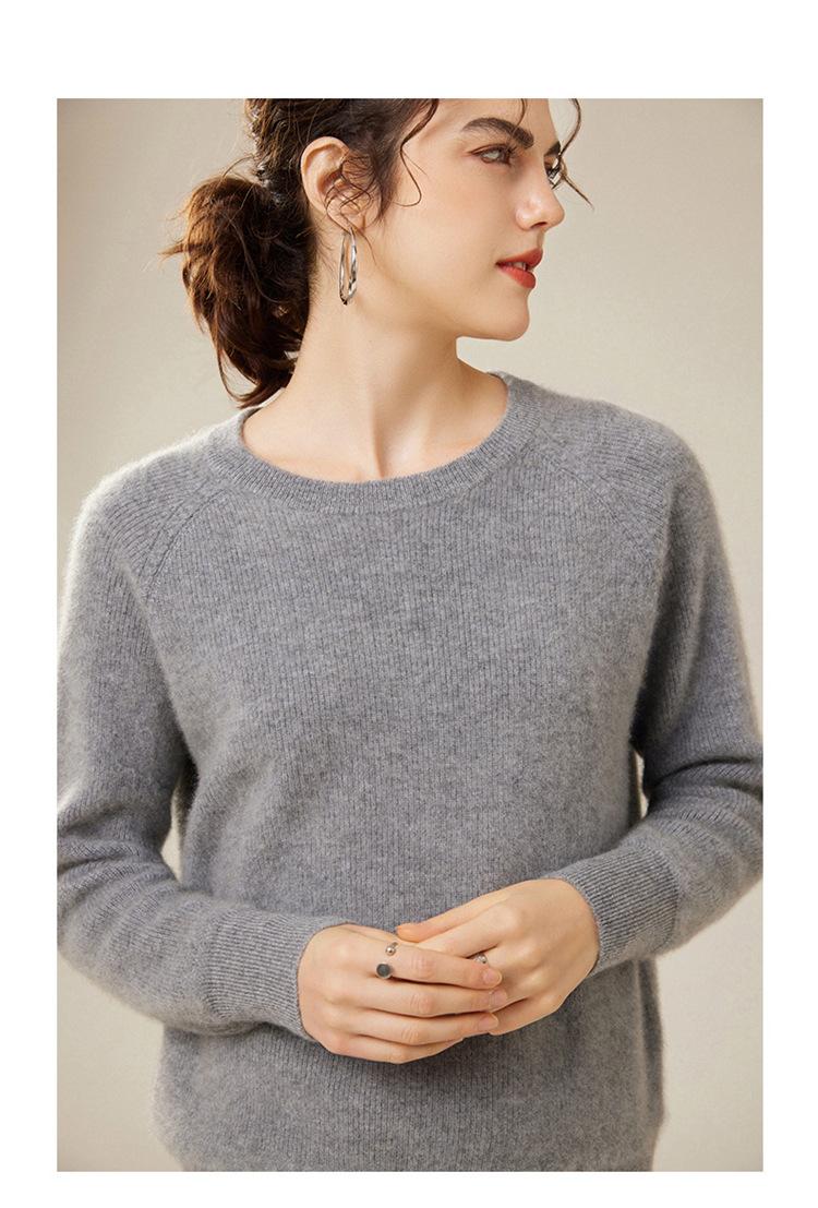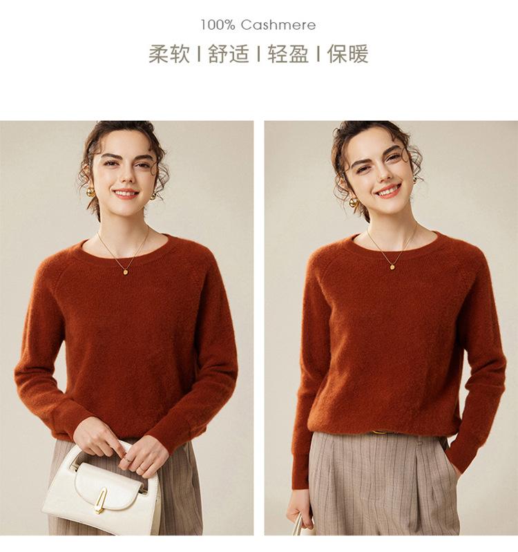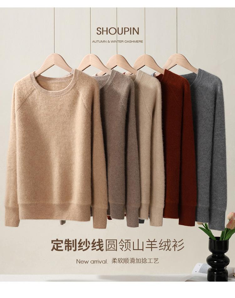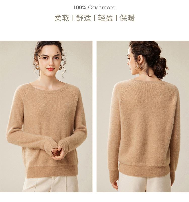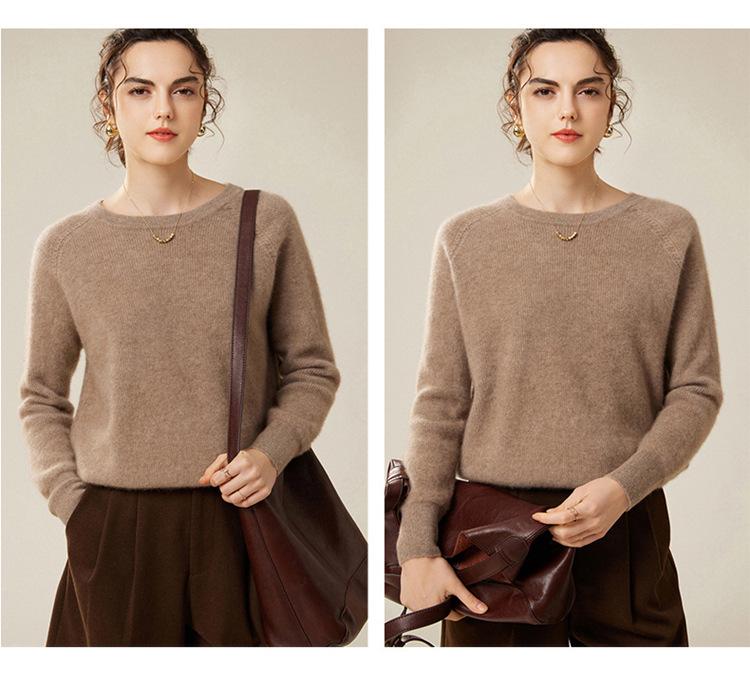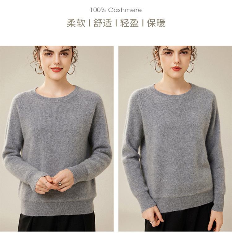 Suéter de cachemira 100% pura para mujer, suéter de cachemira con cuello redondo y mangas raglán, suéter grueso, camisa holgada de base, otoño e invierno, nuevo