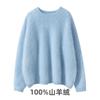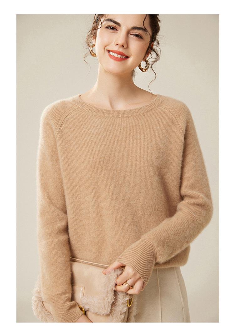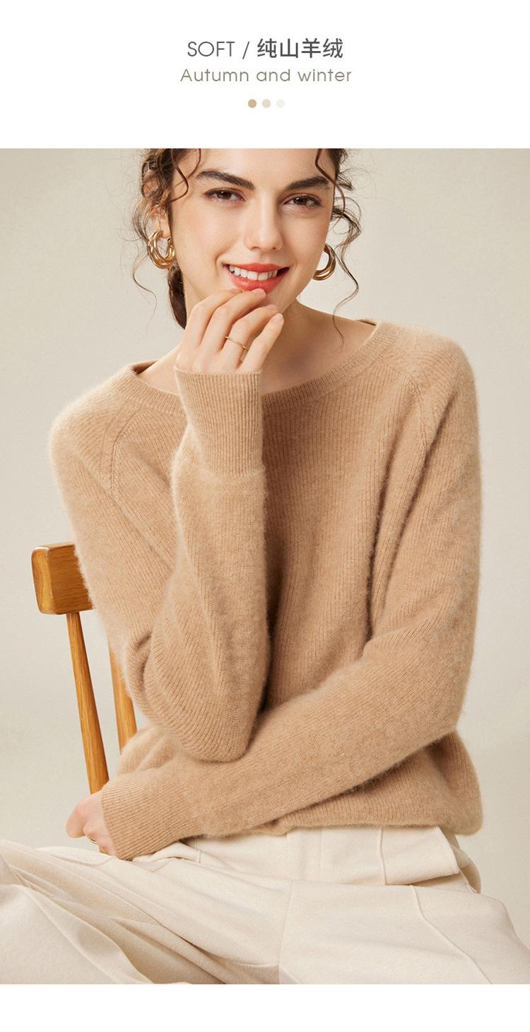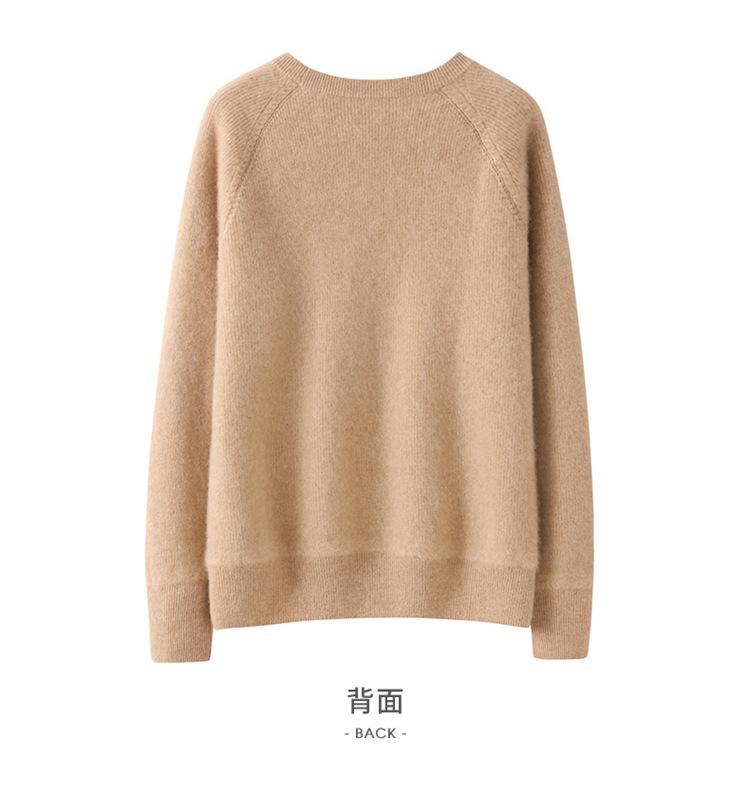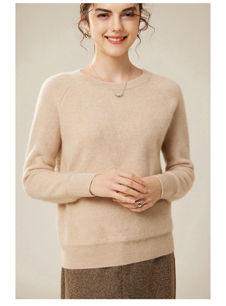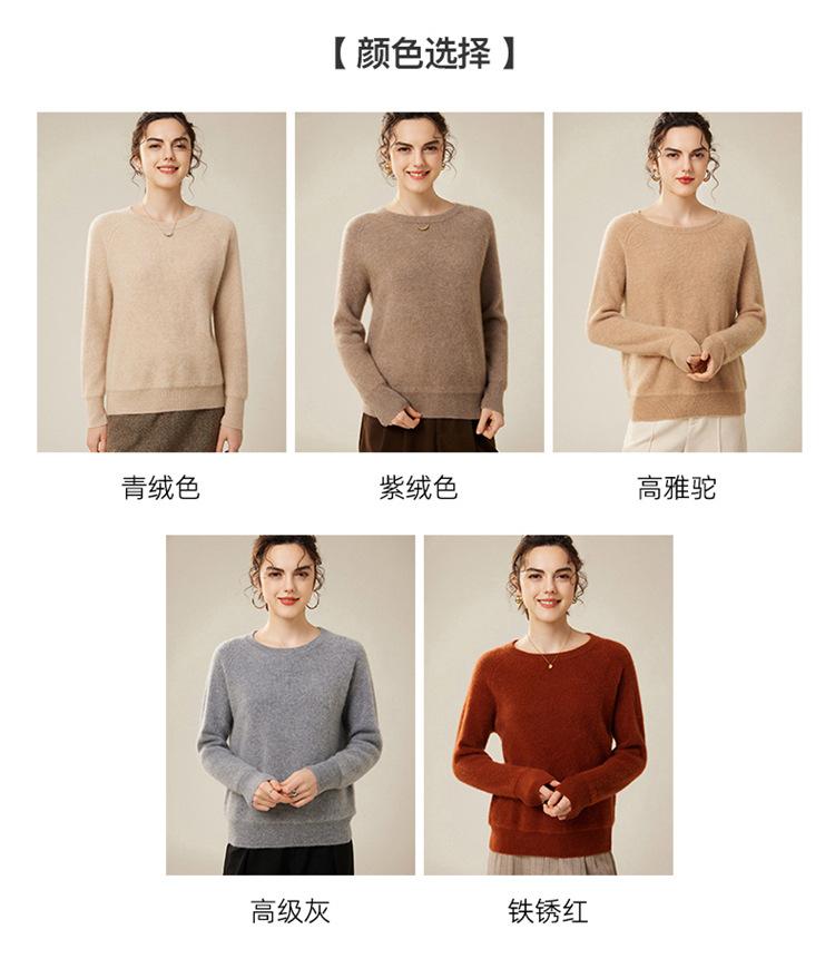 Suéter de cachemira 100% pura para mujer, suéter de cachemira con cuello redondo y mangas raglán, suéter grueso, camisa holgada de base, otoño e invierno, nuevo