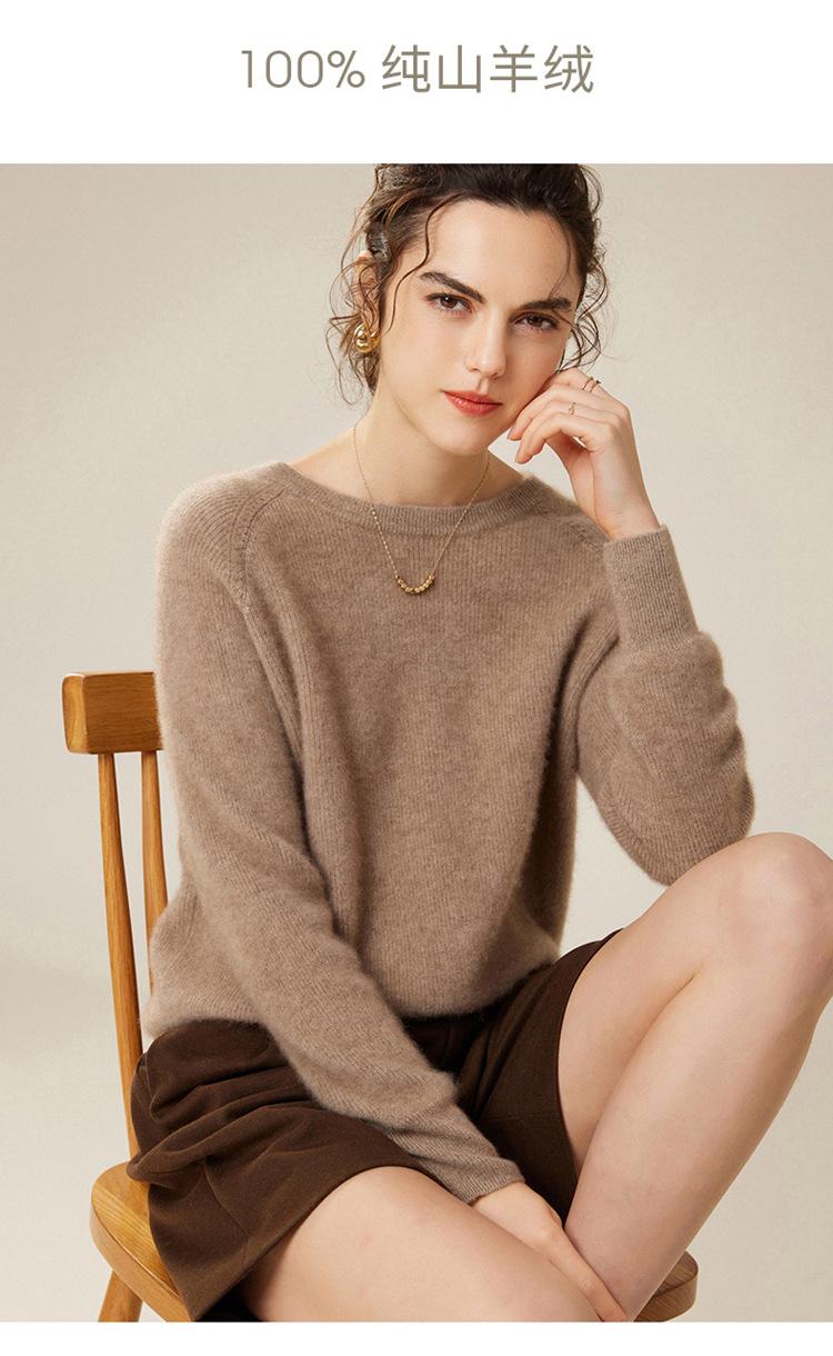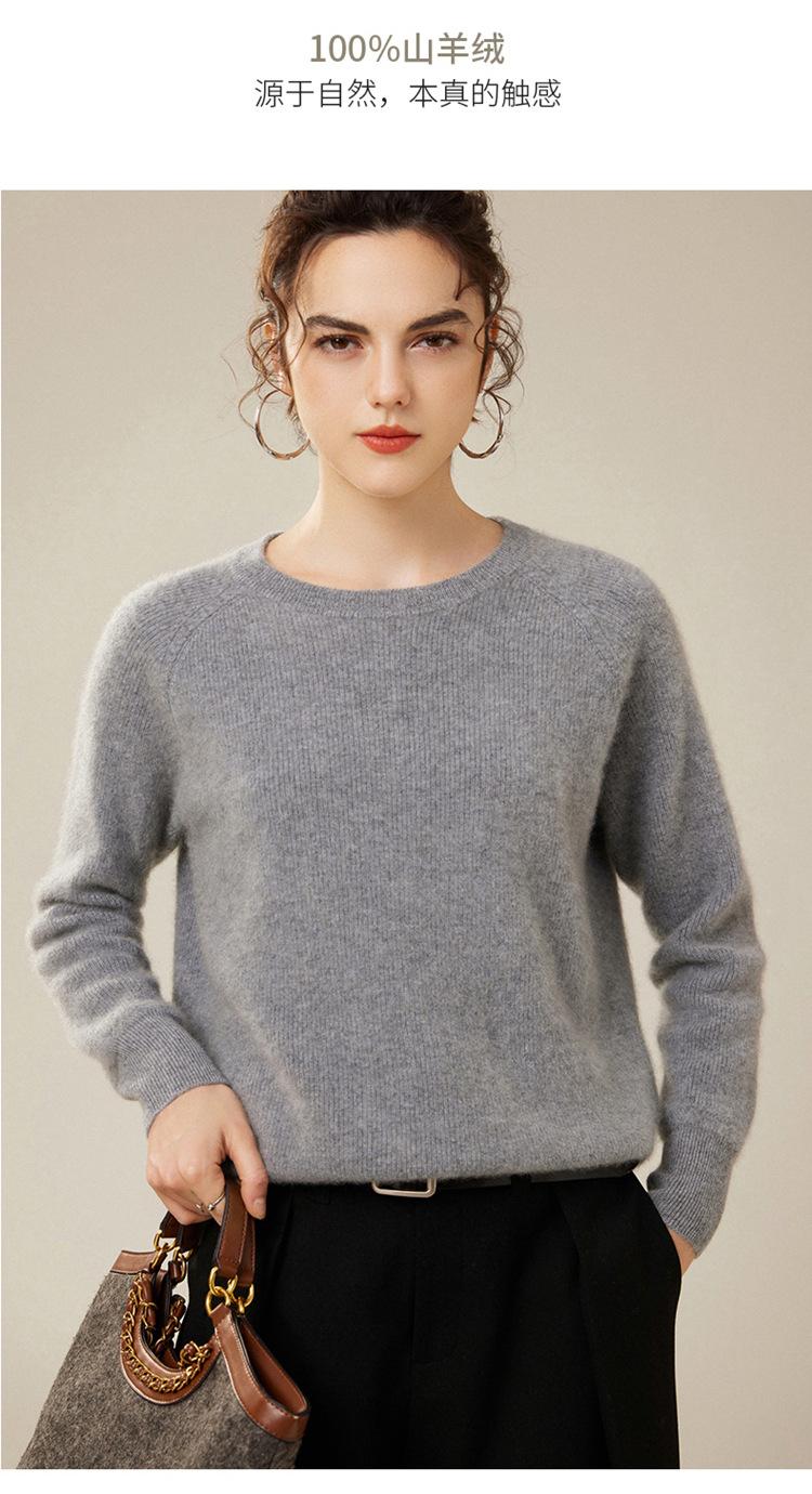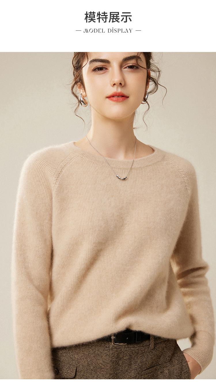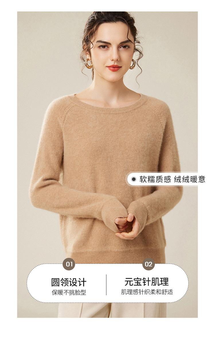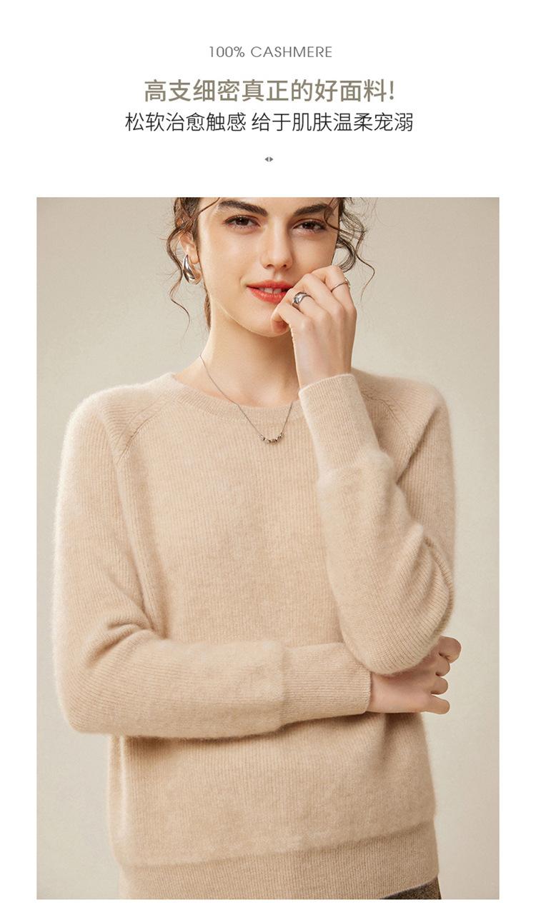 Suéter de cachemira 100% pura para mujer, suéter de cachemira con cuello redondo y mangas raglán, suéter grueso, camisa holgada de base, otoño e invierno, nuevo