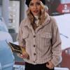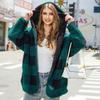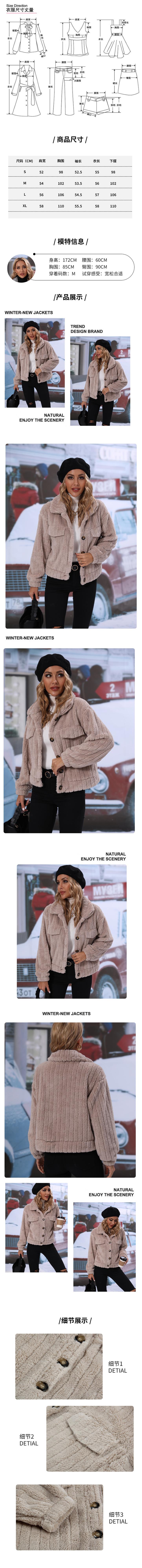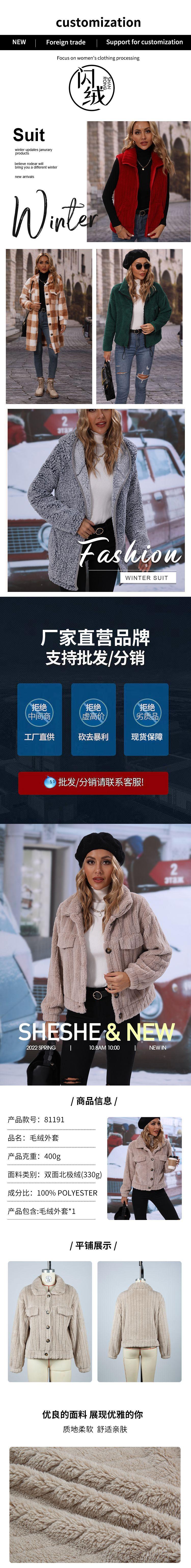 Cárdigan de terciopelo flash transfronterizo Amazon otoño e invierno para mujer europeo y americano con solapa de manga larga suelto de un solo botón abrigo de felpa de doble cara