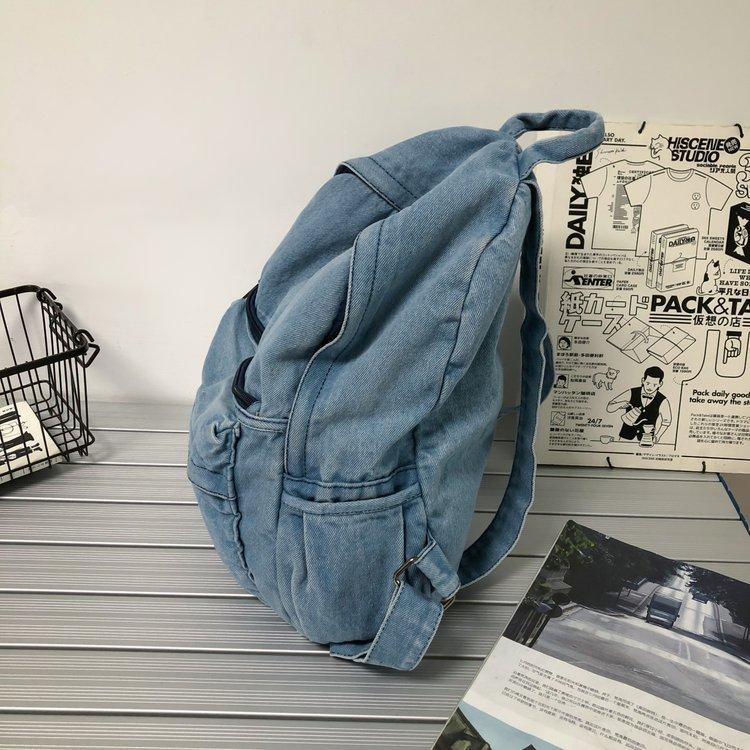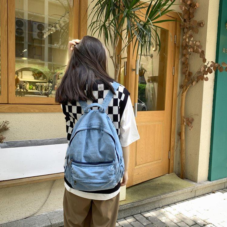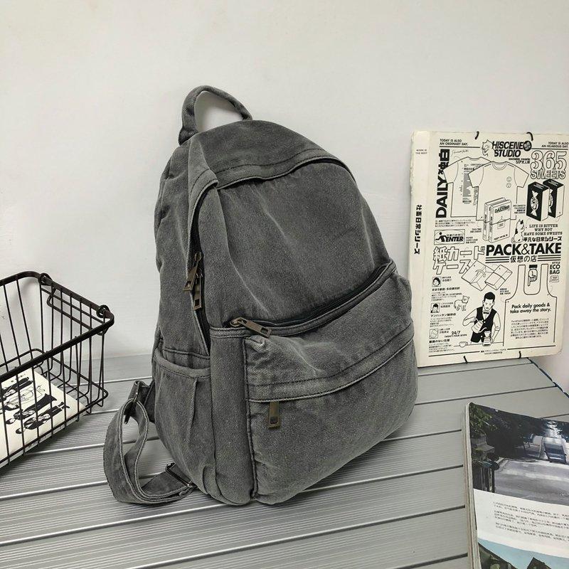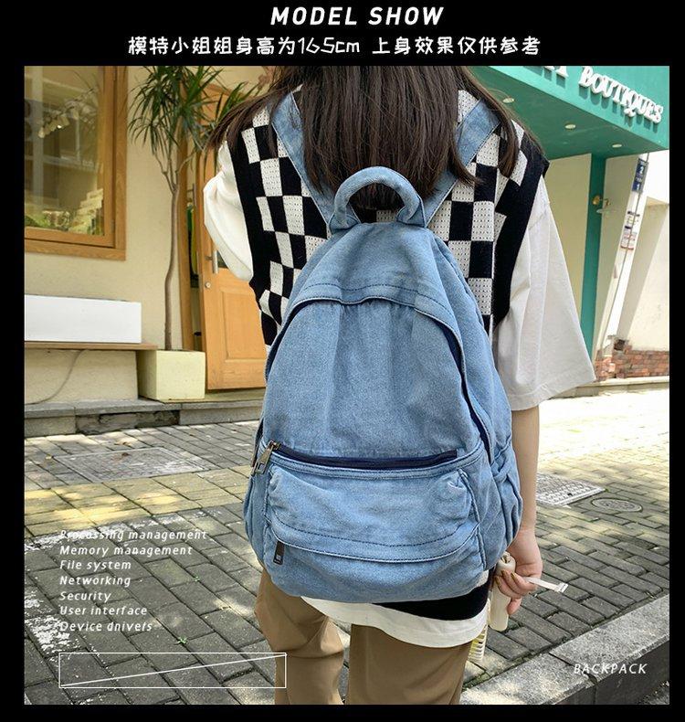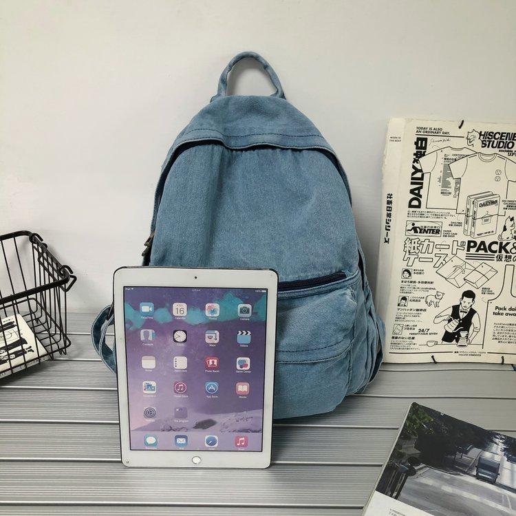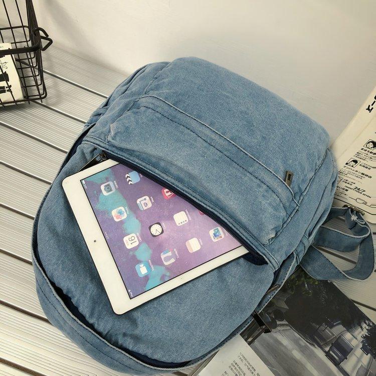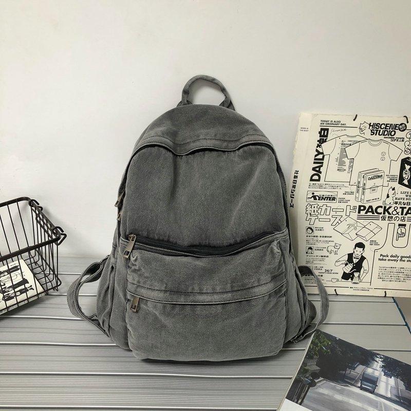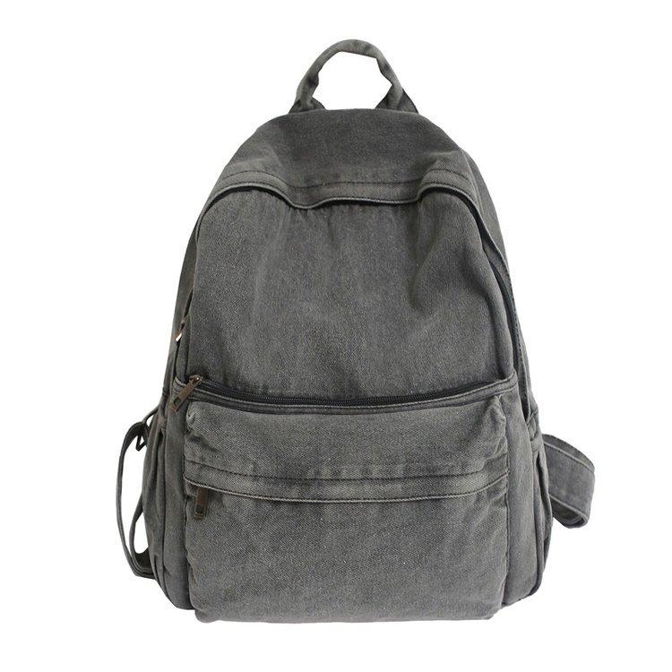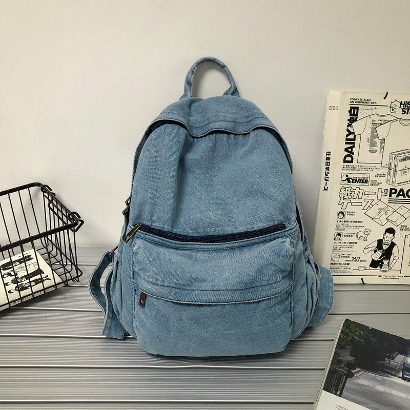 Cross-border pure color denim retro backpack casual women's backpack student outdoor travel bag student school bag