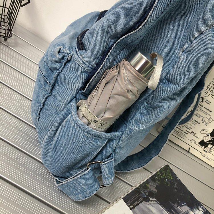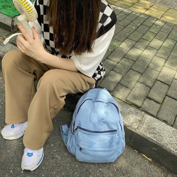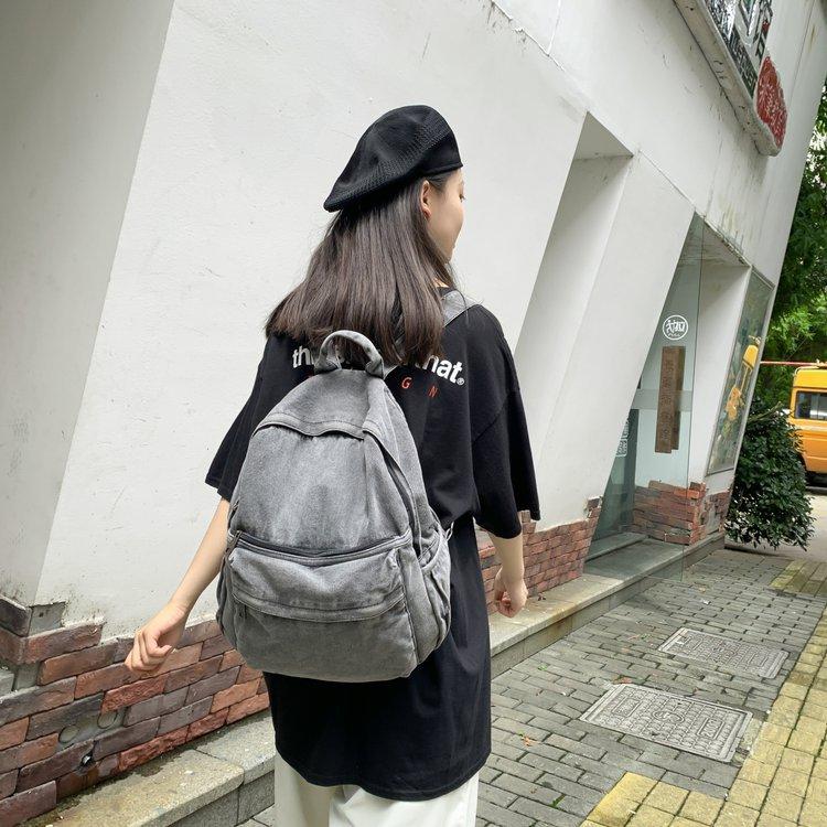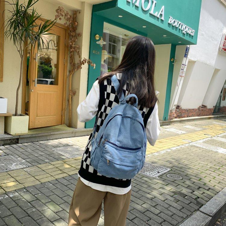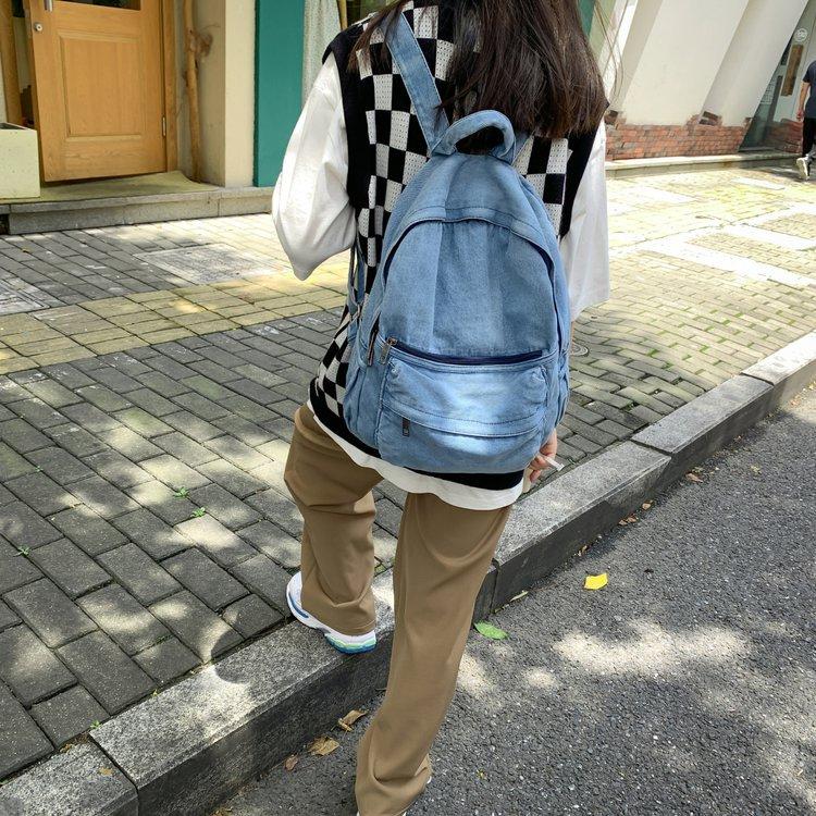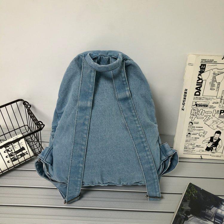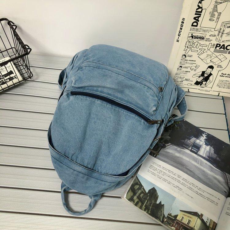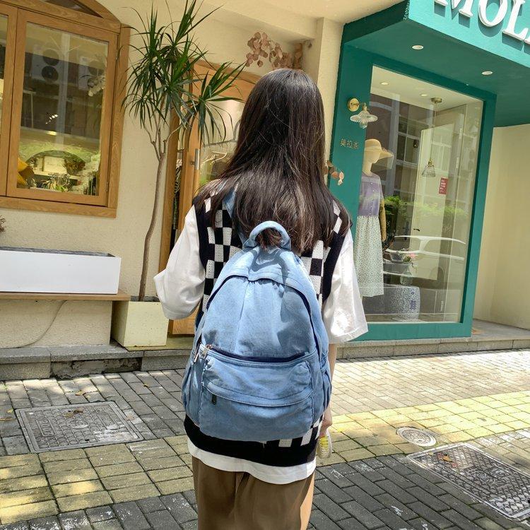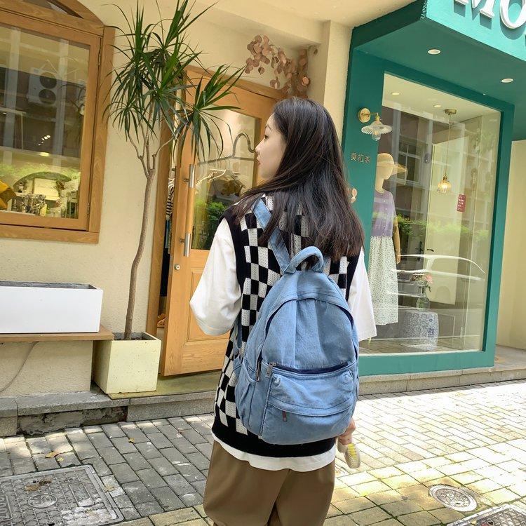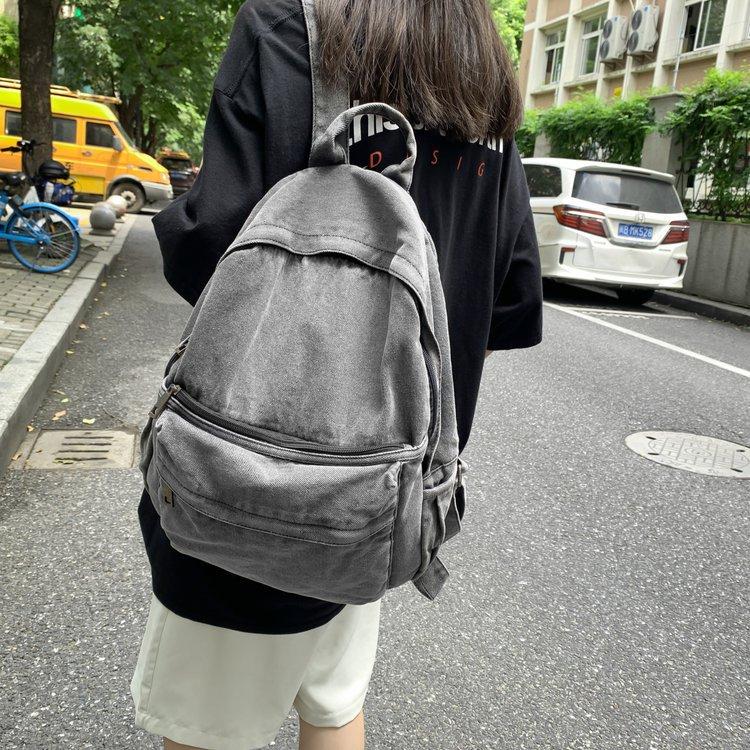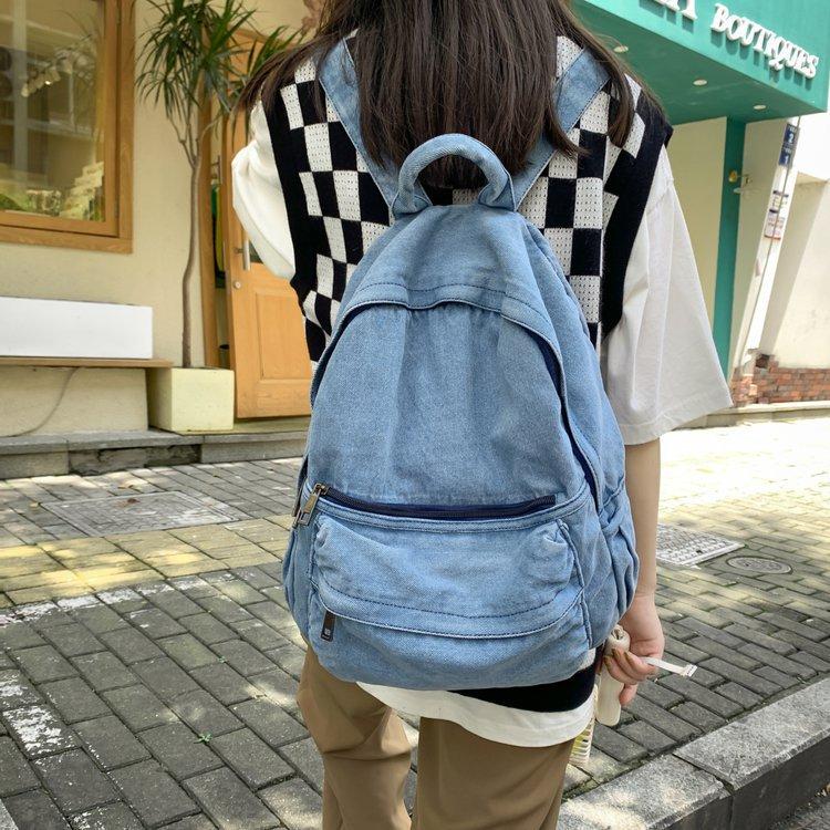 Cross-border pure color denim retro backpack casual women's backpack student outdoor travel bag student school bag