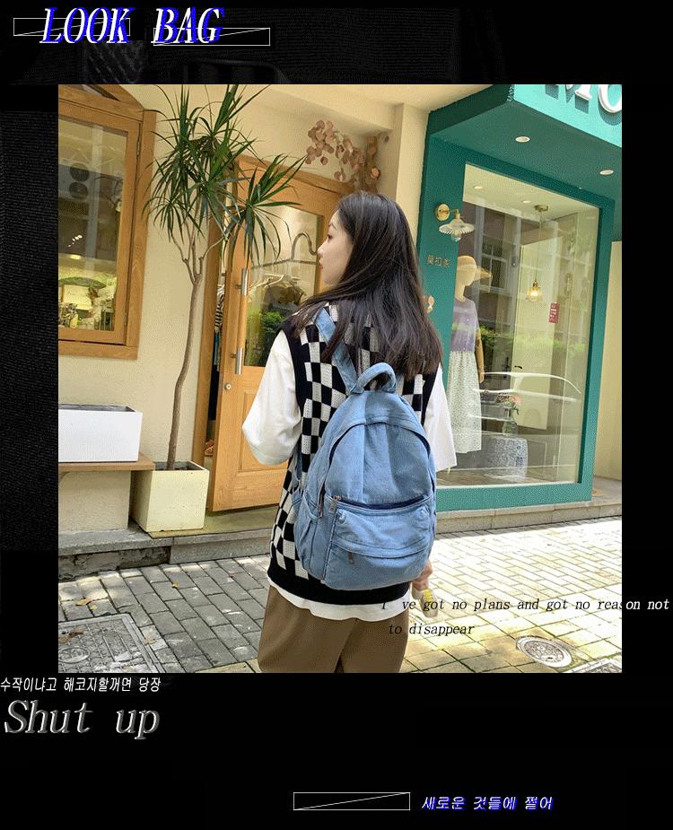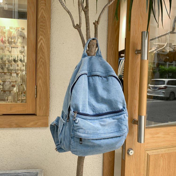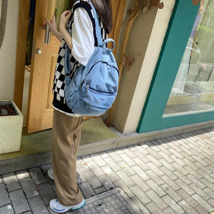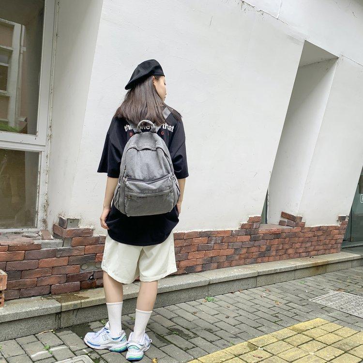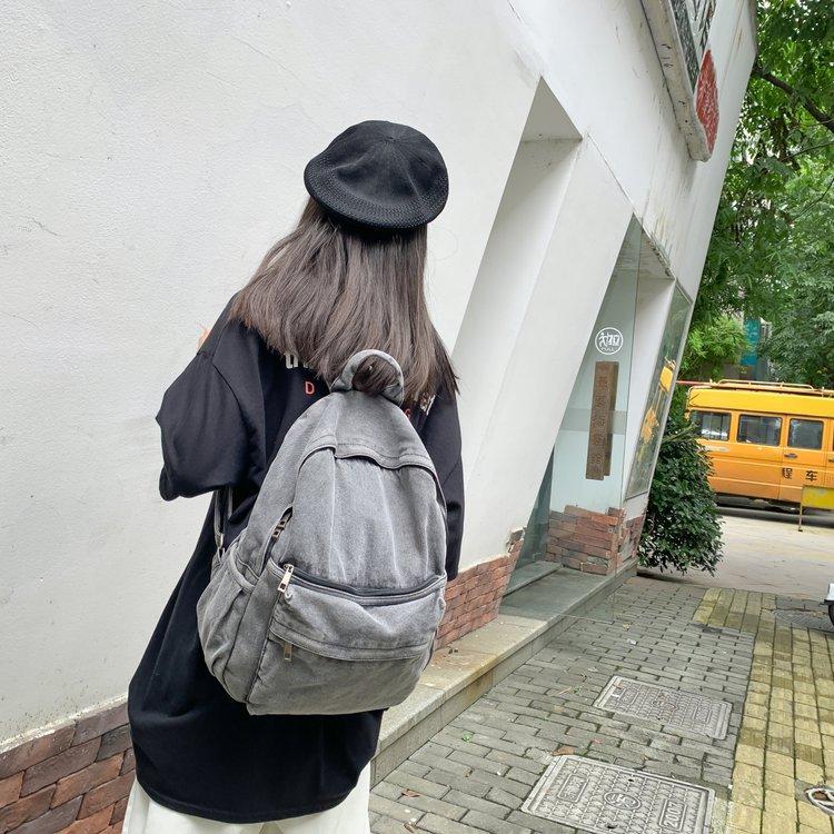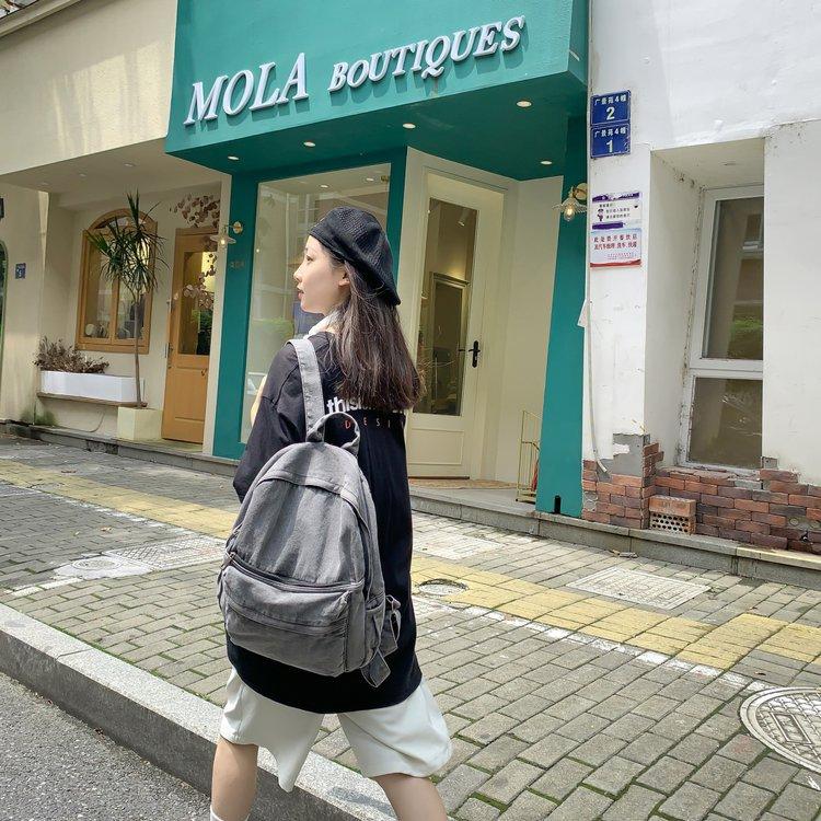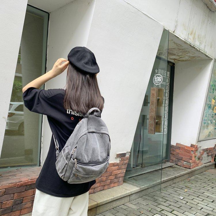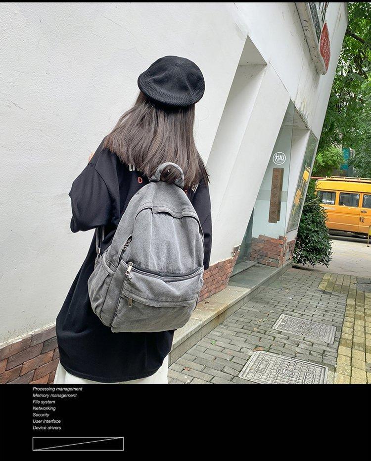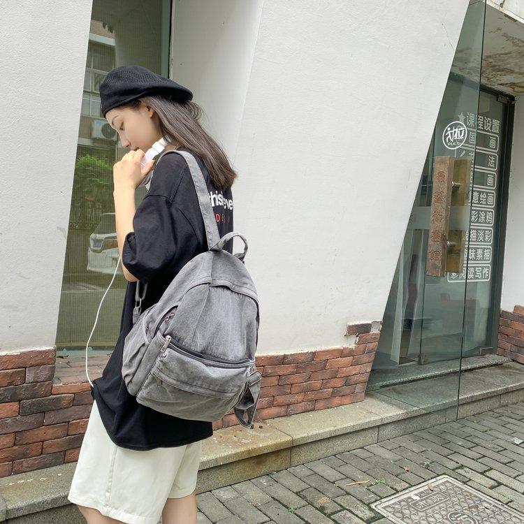 Cross-border pure color denim retro backpack casual women's backpack student outdoor travel bag student school bag