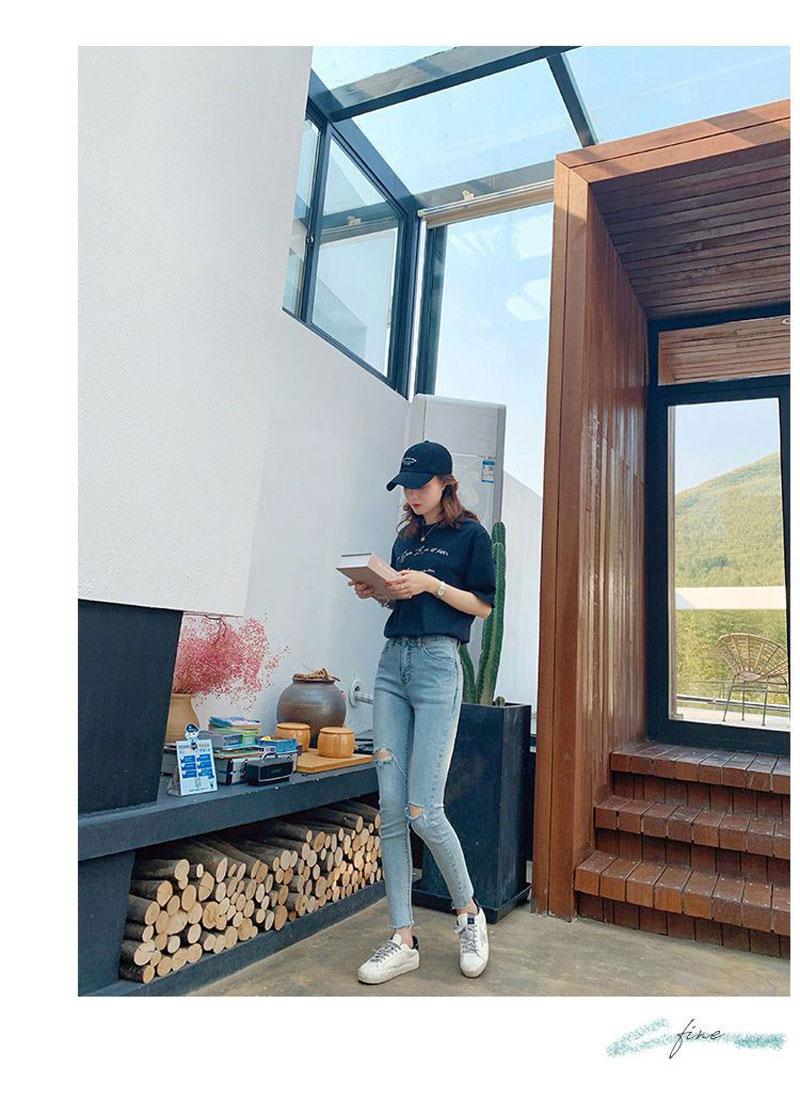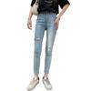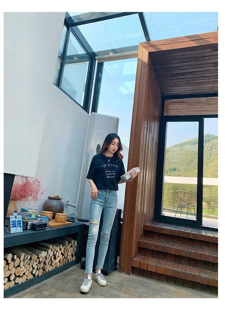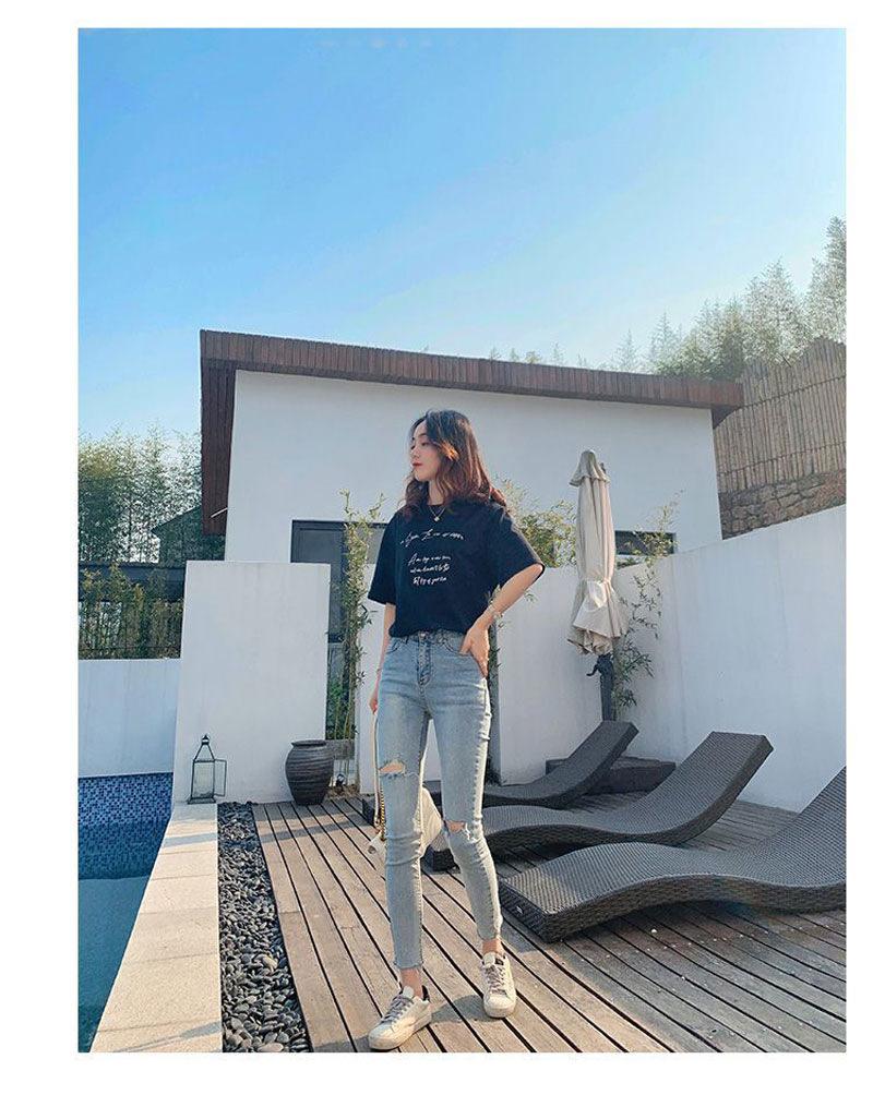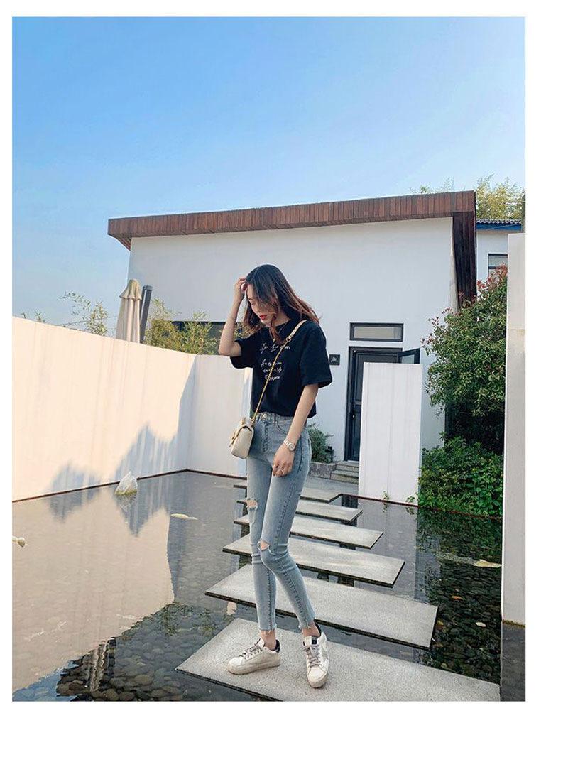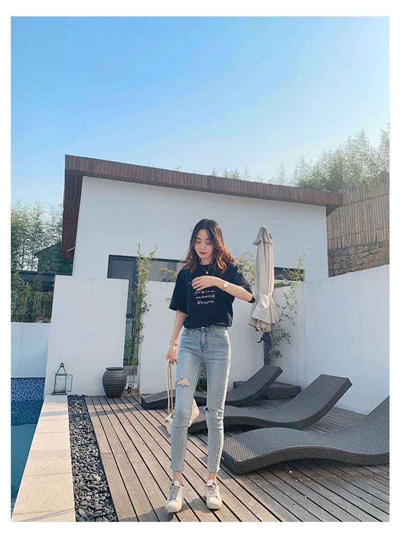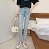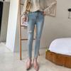 Pantalones vaqueros rotos de color claro para mujer, leggings ajustados elásticos finos de primavera y verano, pantalones de tubo a la moda hasta los tobillos de corte entallado.