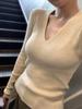 Suéter de cuello en V de color liso de estilo suave para mujer, nuevo estilo de otoño 2023, suéter ajustado de manga larga con parte inferior