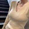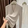 Suéter de cuello en V de color sólido de estilo suave para mujer, otoño e invierno 2023, nuevo suéter de camisa interior adelgazante de manga larga con ajuste ajustado