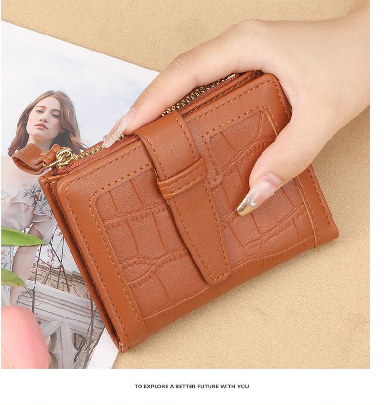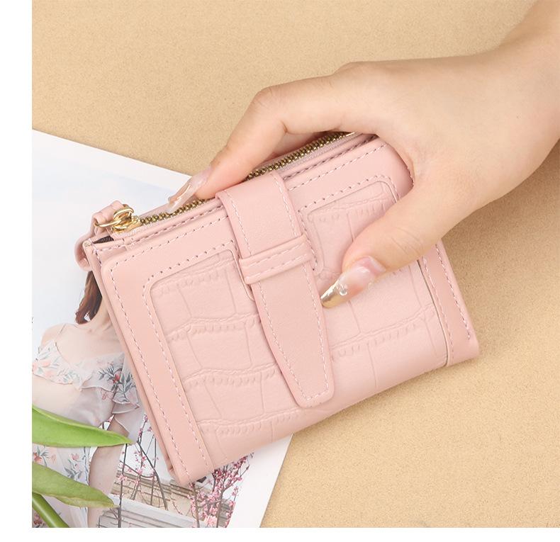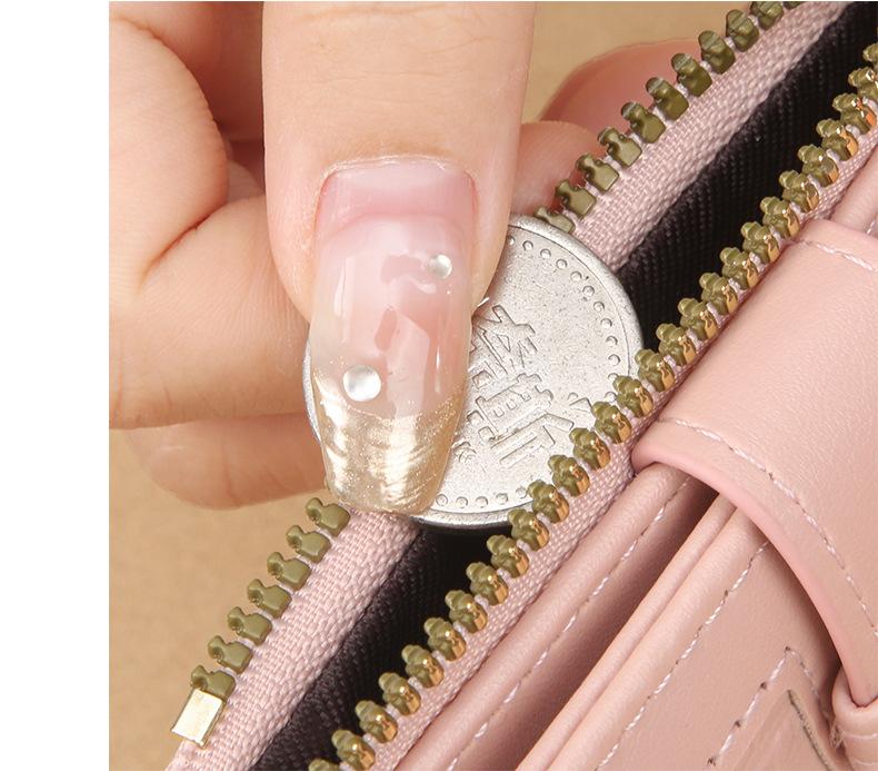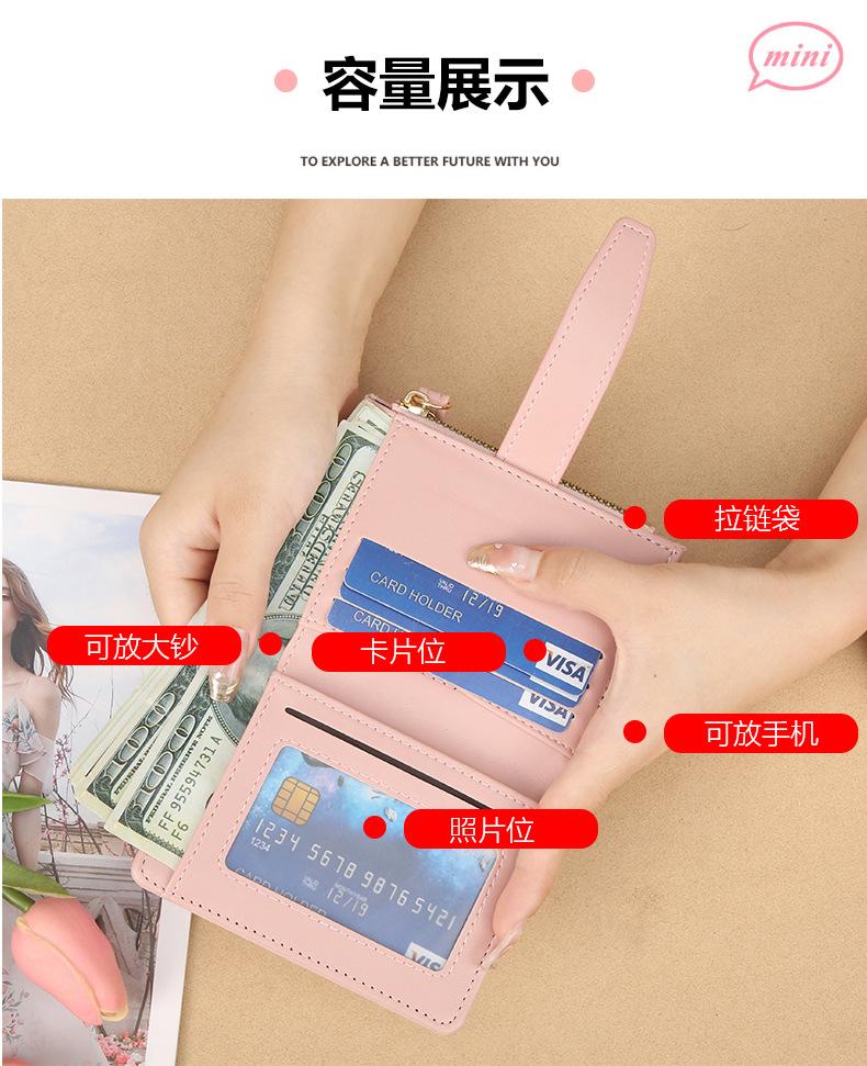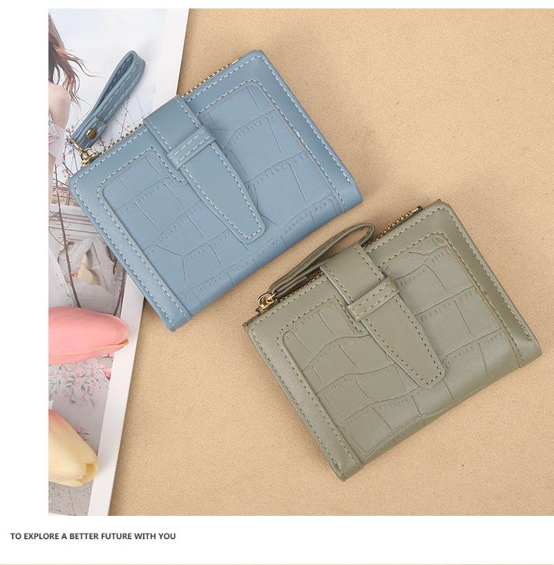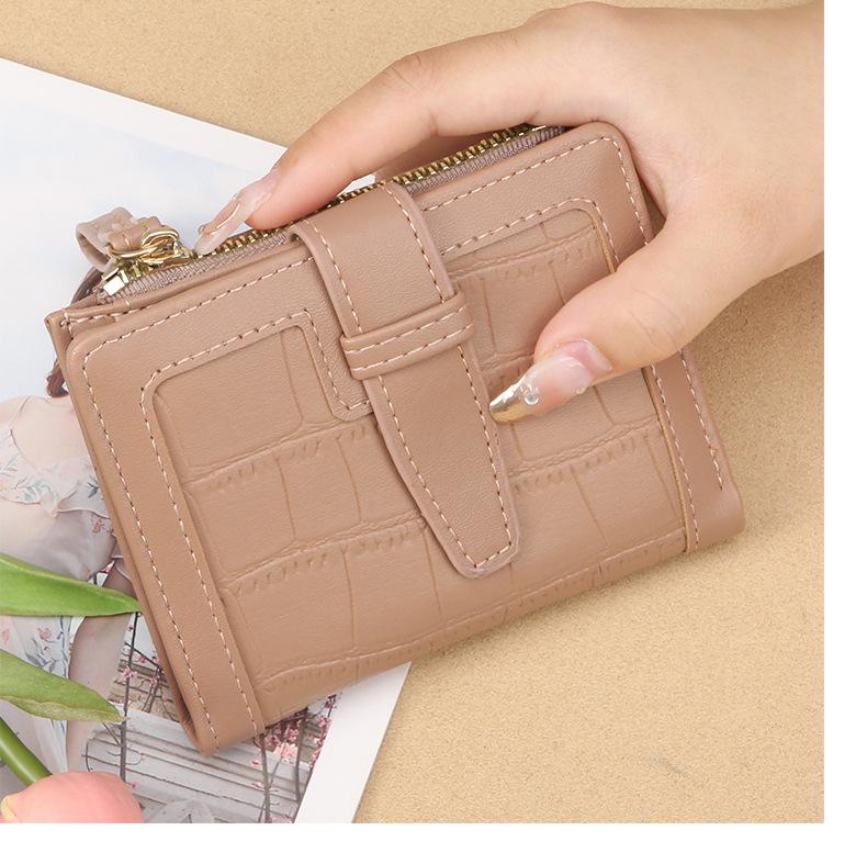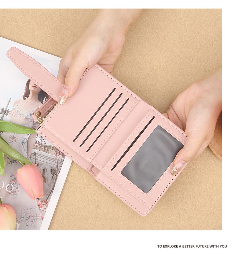 Cartera pequeña de estilo coreano para mujer, de color liso, con cremallera simple, multitarjeta, de gran capacidad, para estudiantes, nueva y fresca, monedero