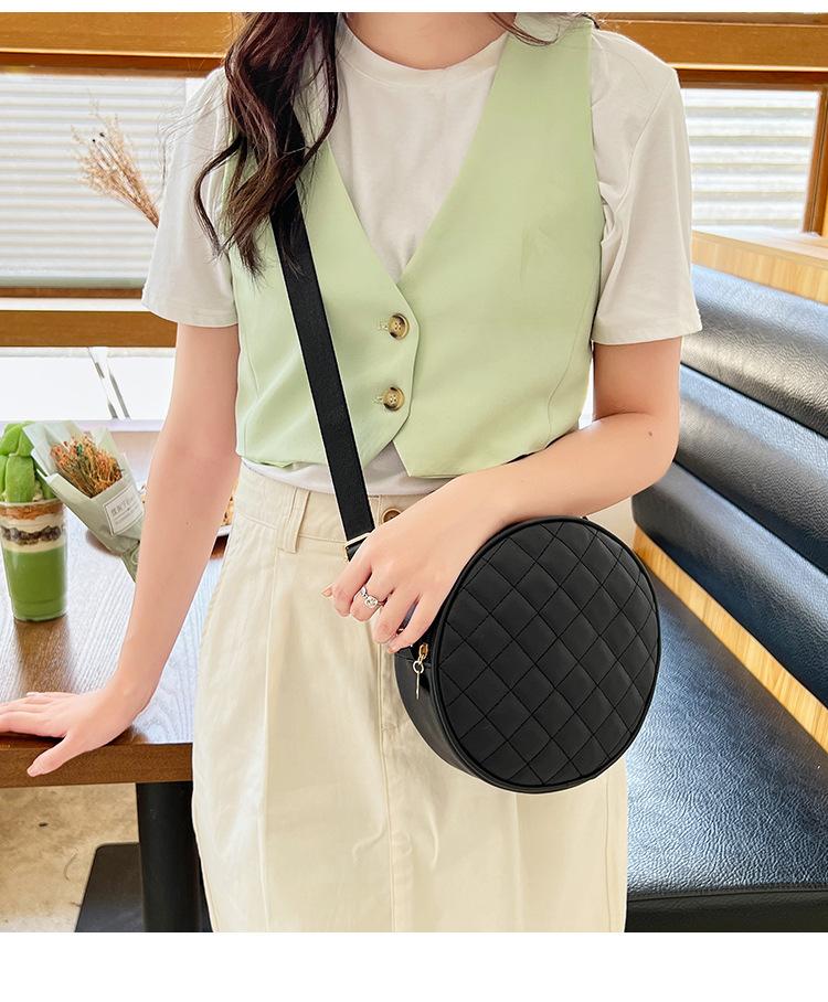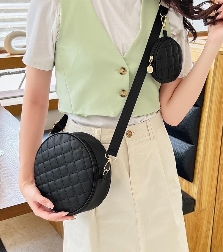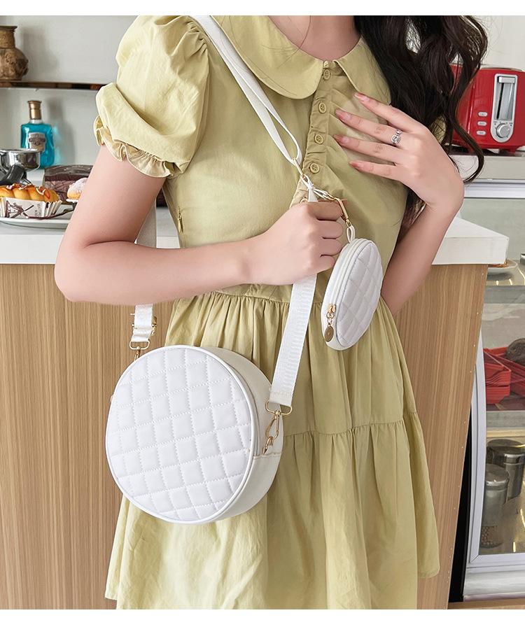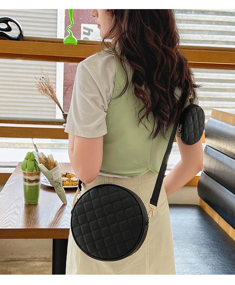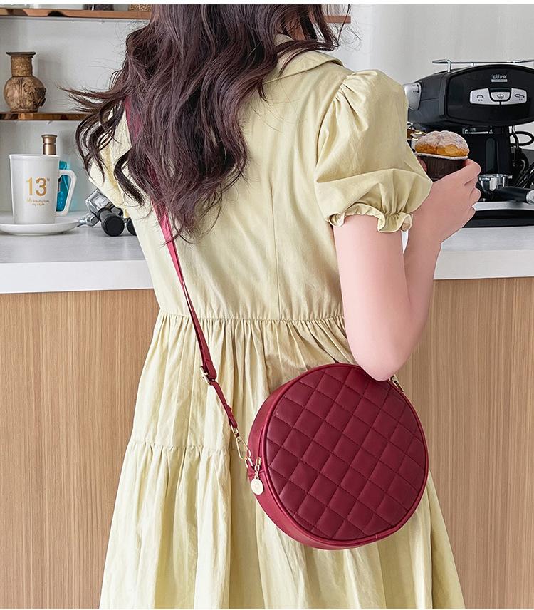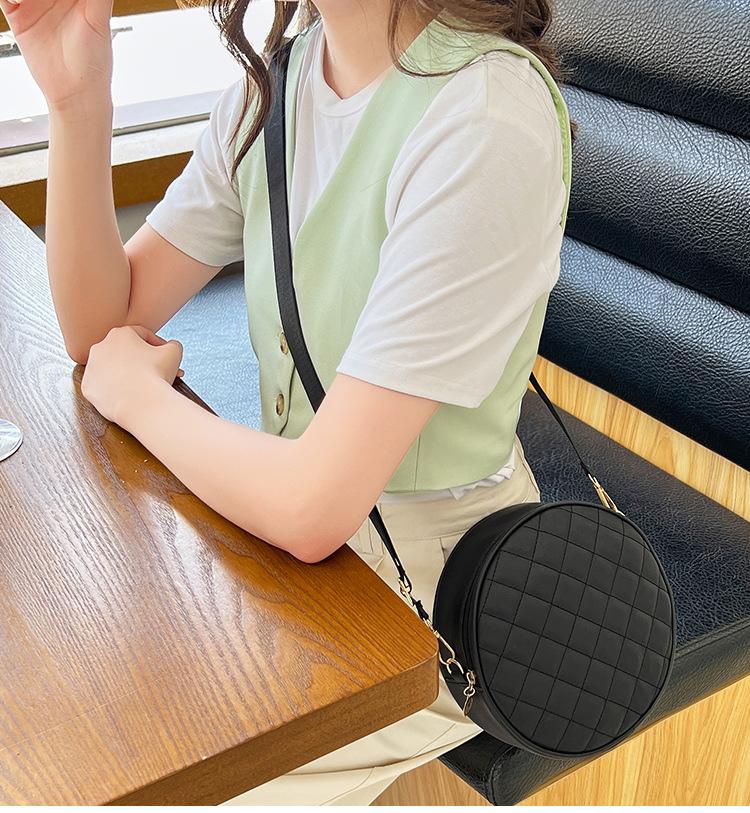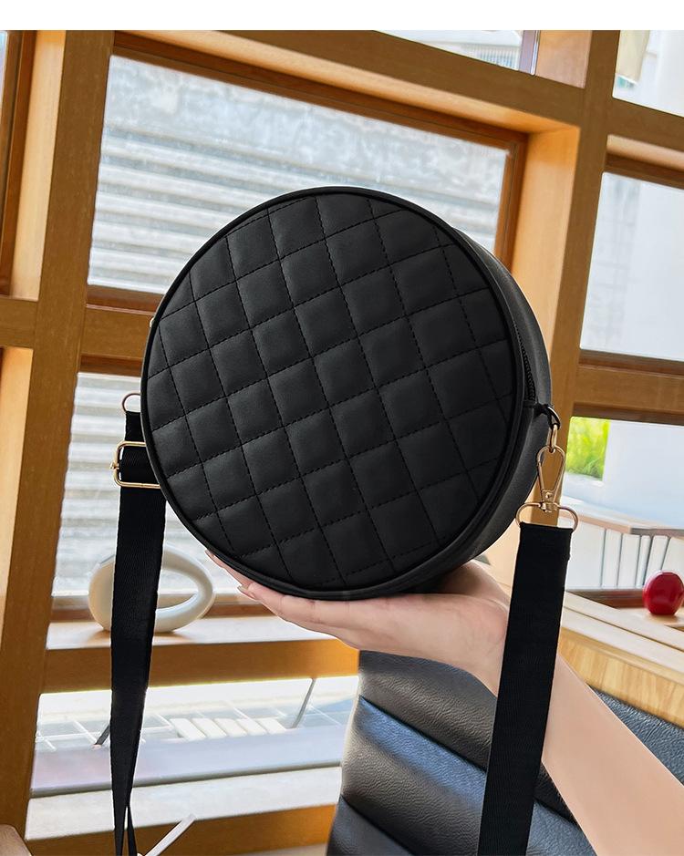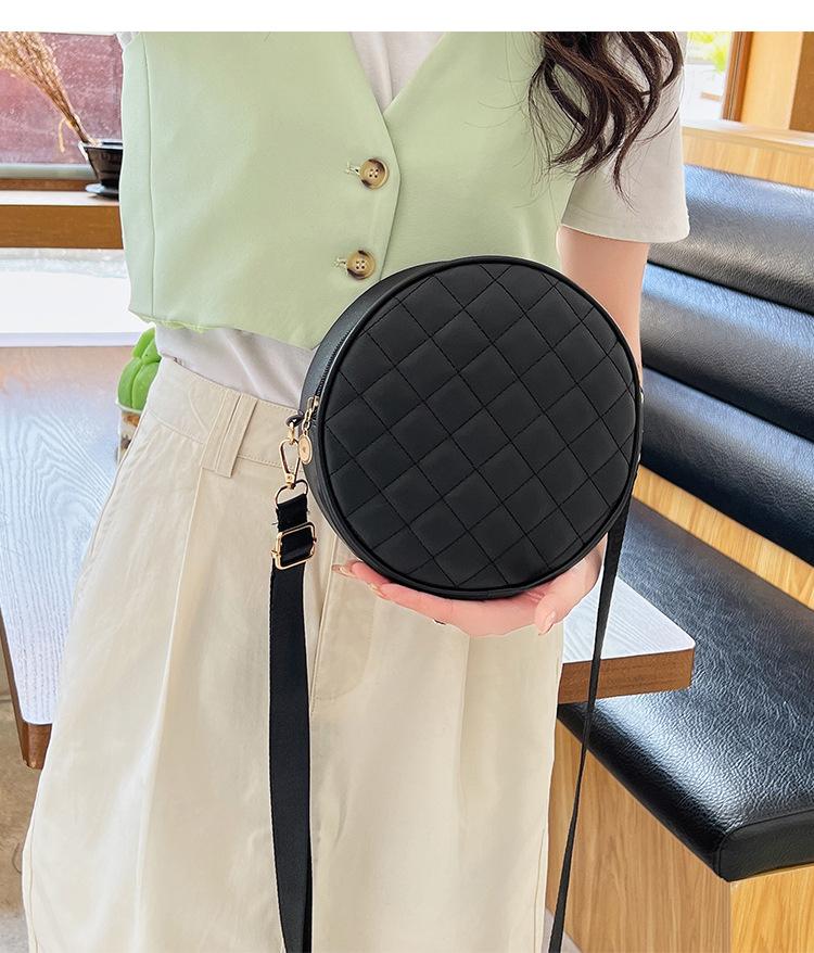 Bolso pequeño y sencillo, redondo, para mujer, novedad de 2023, bolso de hombro de color liso con bordado a cuadros de diamantes a juego a la moda, venta al por mayor
