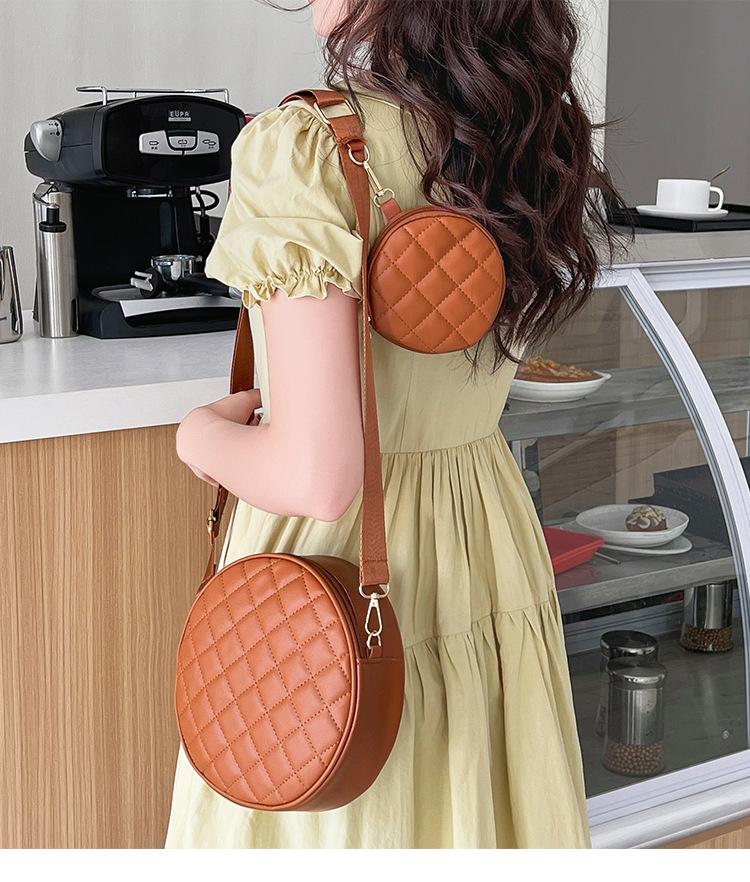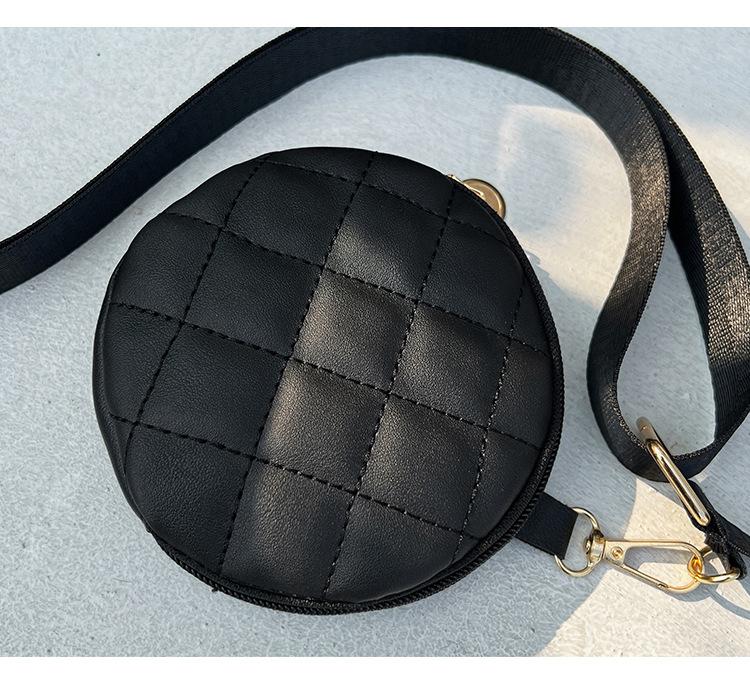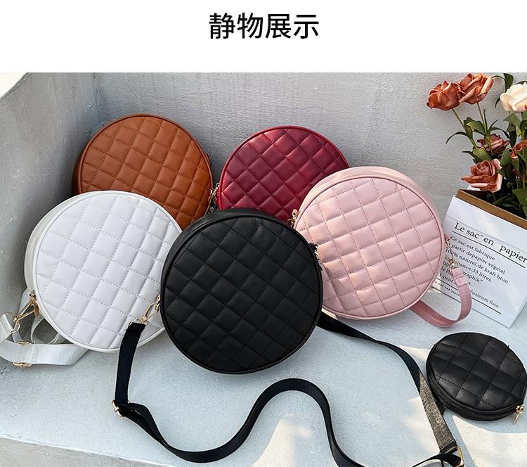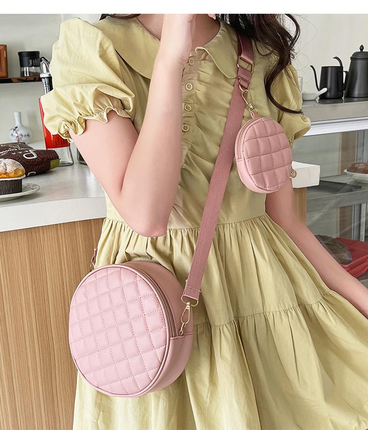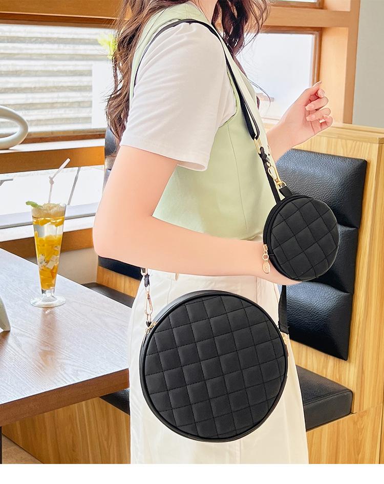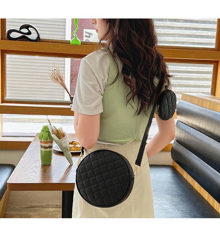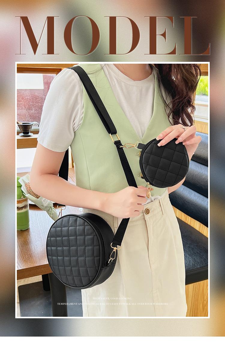 Bolso pequeño y sencillo, redondo, para mujer, novedad de 2023, bolso de hombro de color liso con bordado a cuadros de diamantes a juego a la moda, venta al por mayor