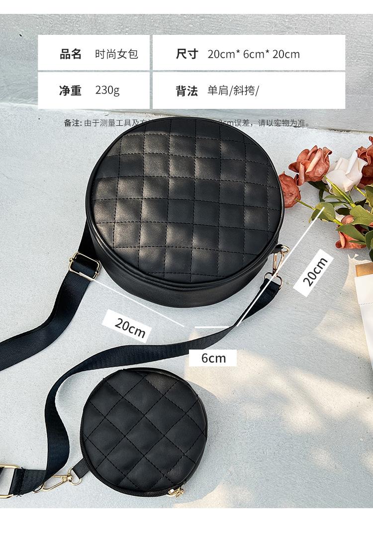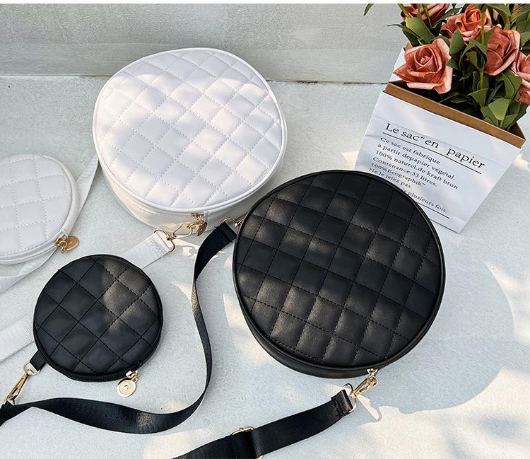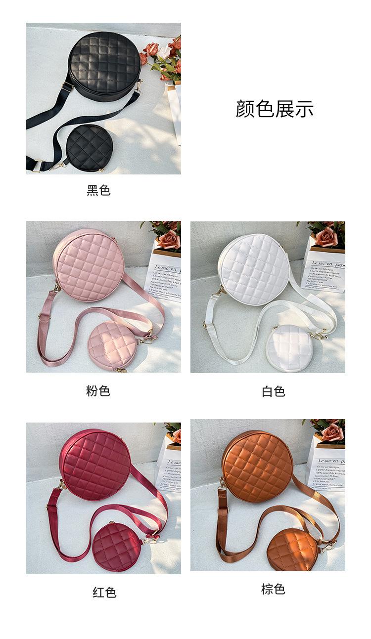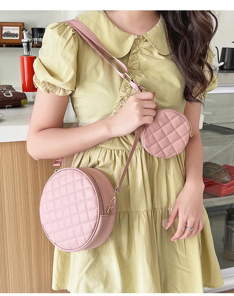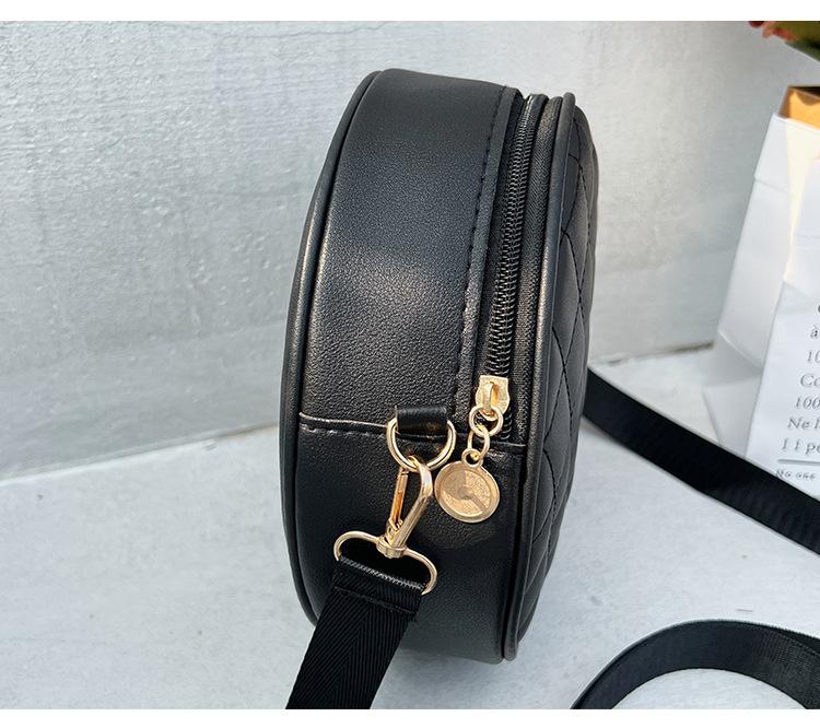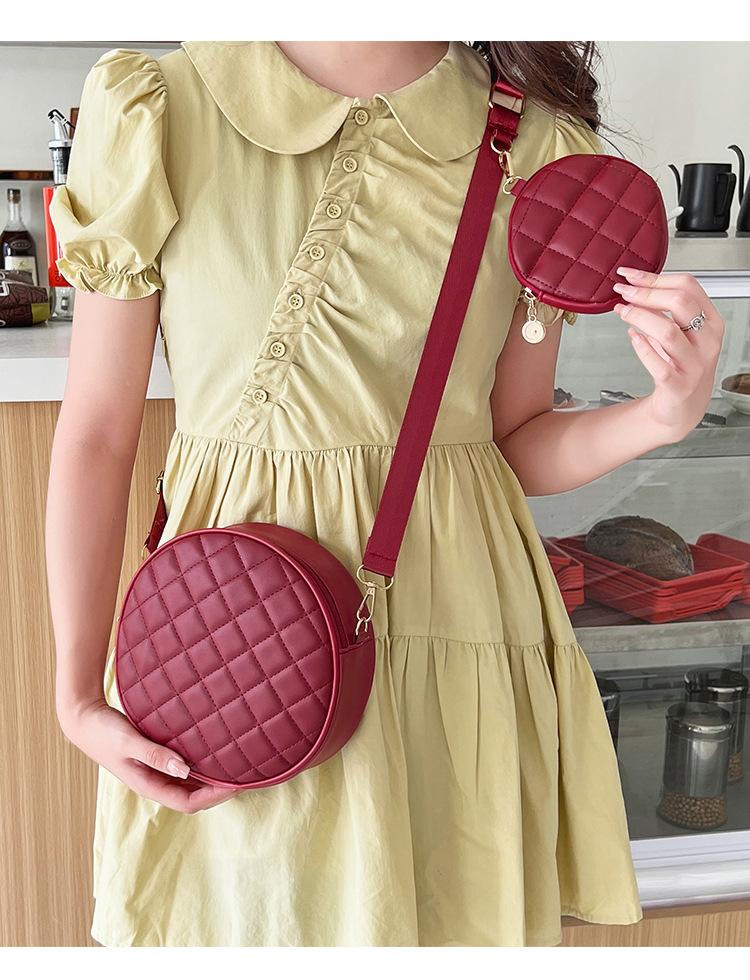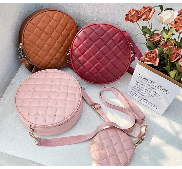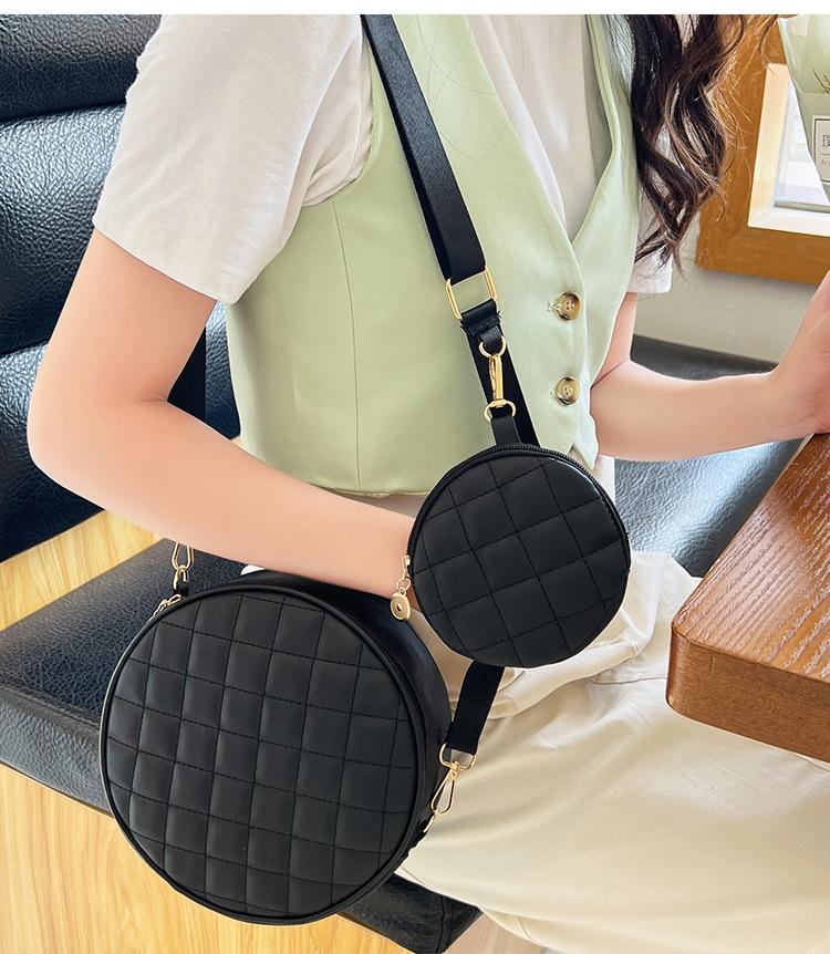 Bolso pequeño y sencillo, redondo, para mujer, novedad de 2023, bolso de hombro de color liso con bordado a cuadros de diamantes a juego a la moda, venta al por mayor