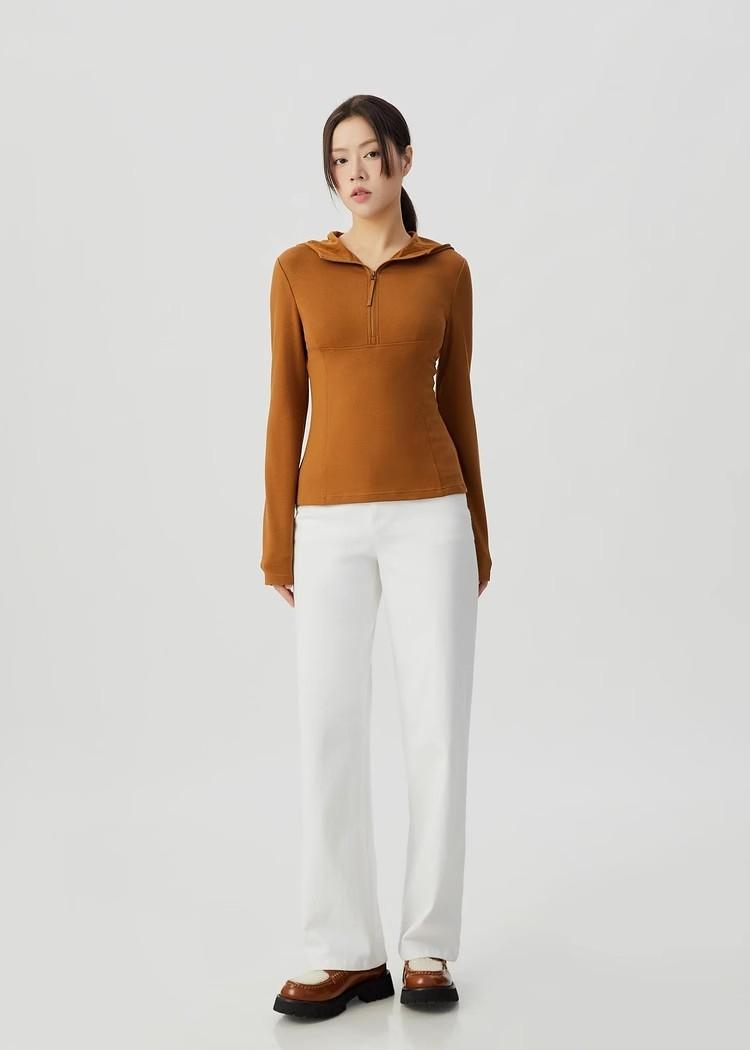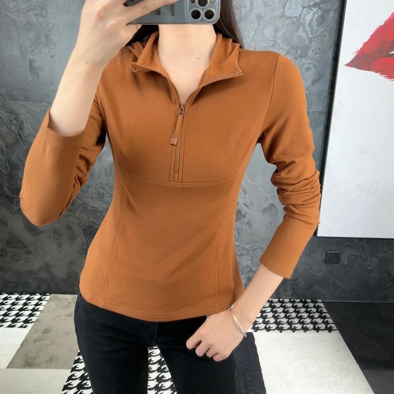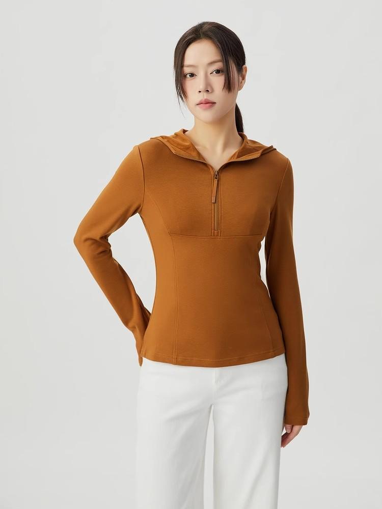 Quitar Gabinete productos de comercio exterior 2024 Invierno nuevo delgado con capucha jersey de manga larga con cremallera suéter casual camiseta top de mujer