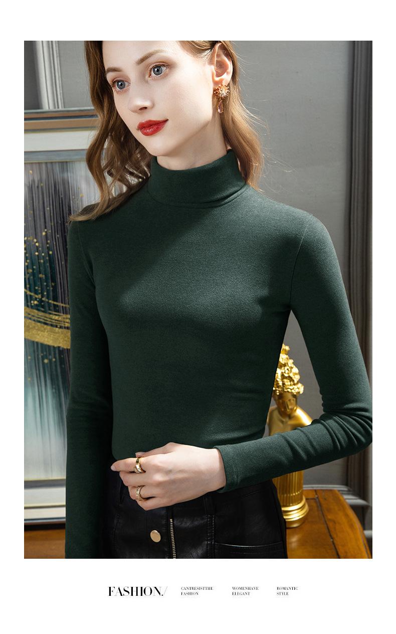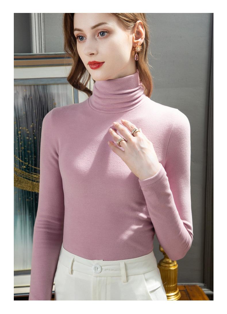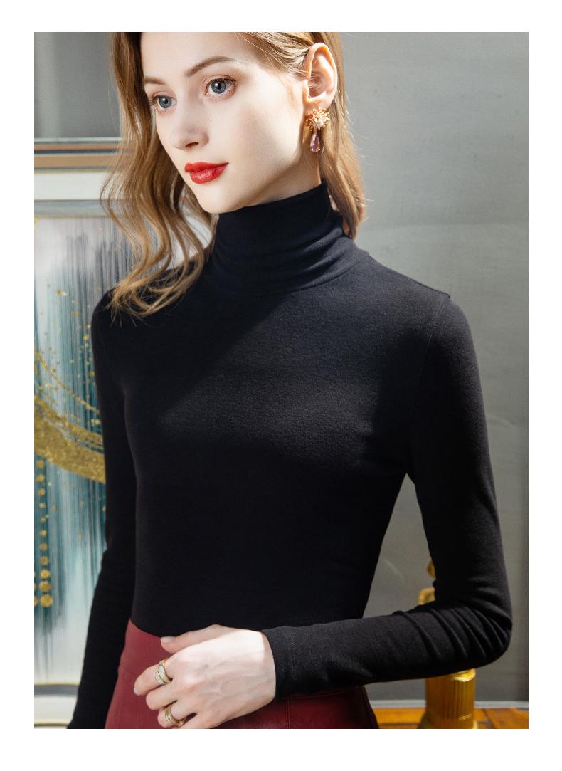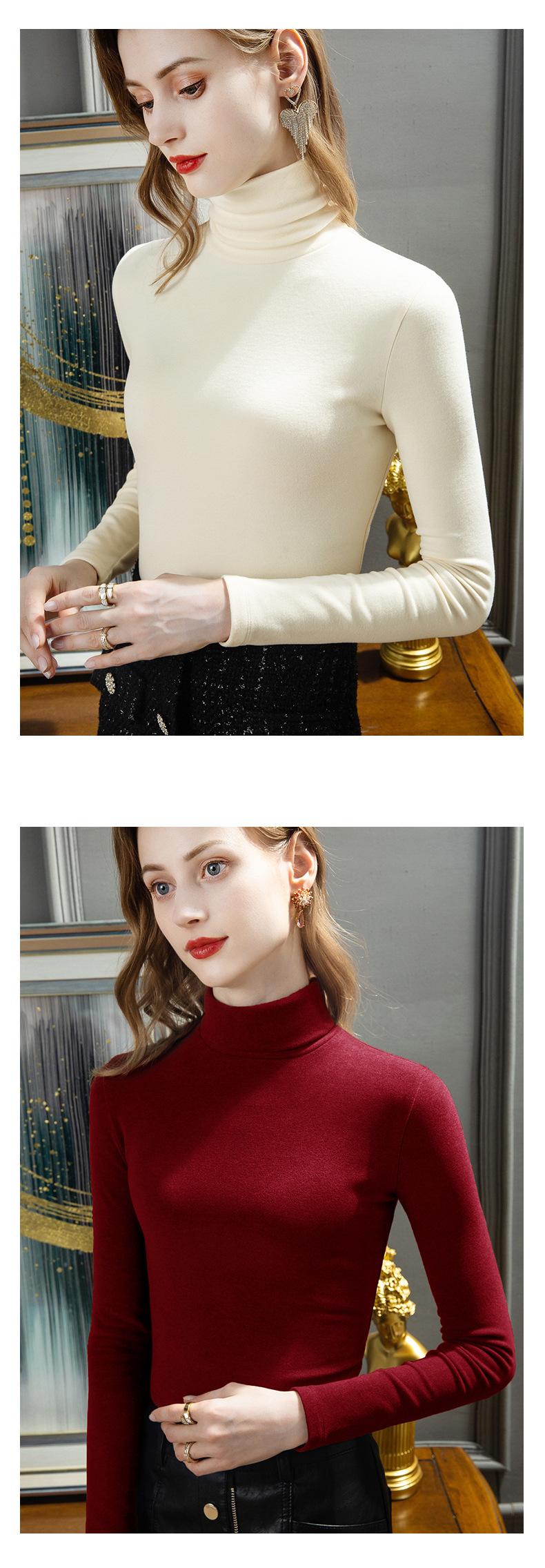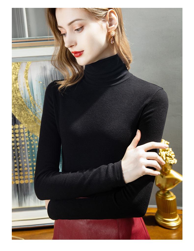 Camisa de seda de cachemira para mujer 2024 otoño e invierno nueva ropa interior de mujer top de cuello alto cálido de terciopelo alemán más terciopelo engrosado |