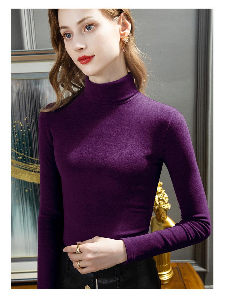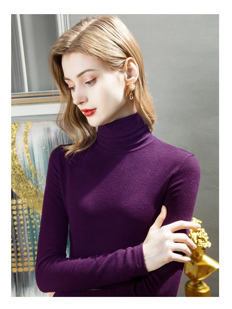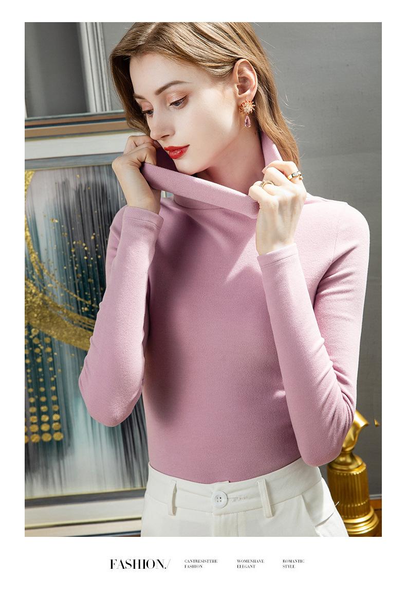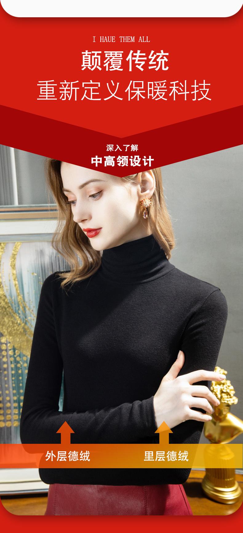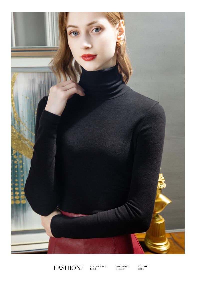 Camisa de seda de cachemira para mujer 2024 otoño e invierno nueva ropa interior de mujer top de cuello alto cálido de terciopelo alemán más terciopelo engrosado |