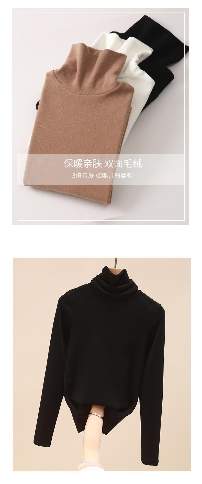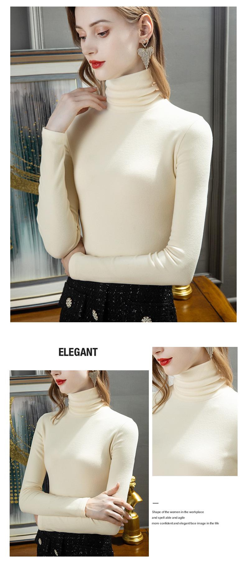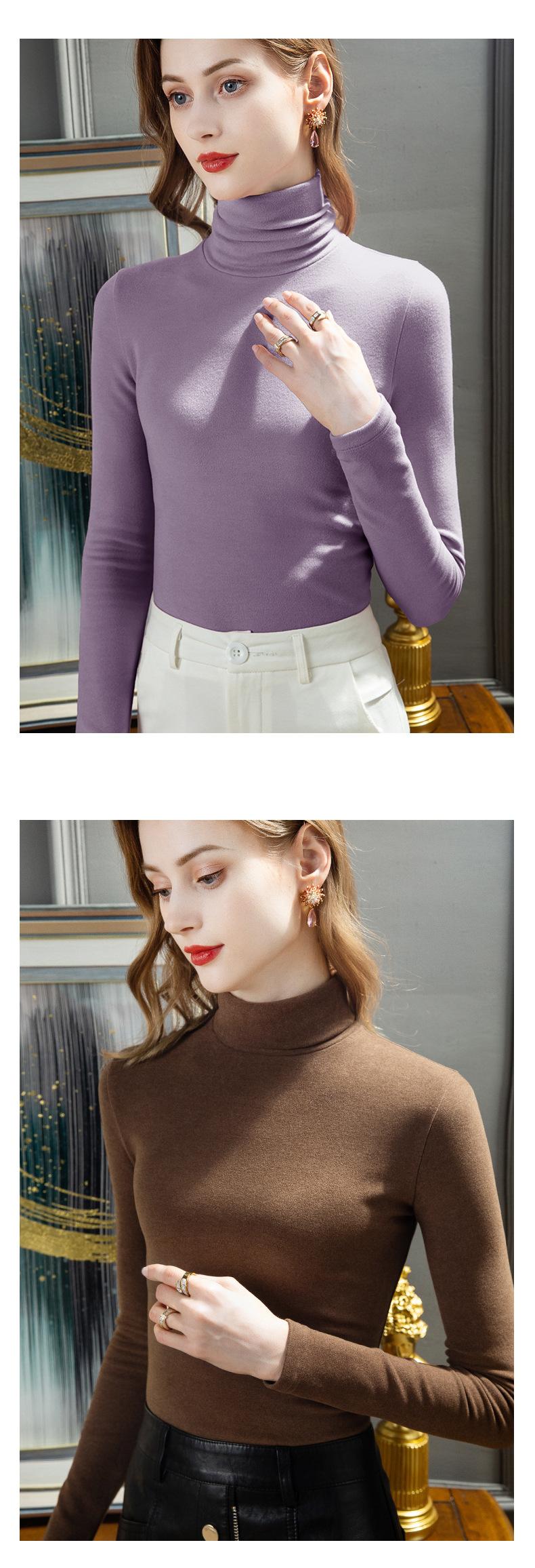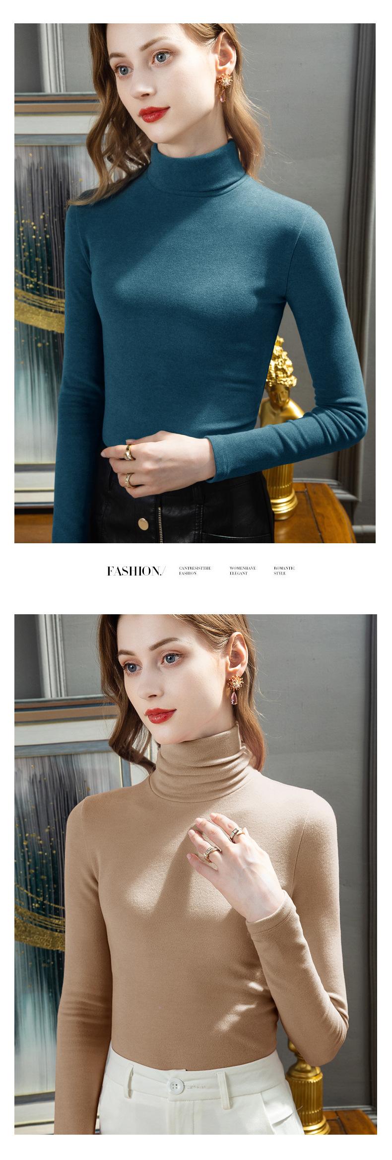Ropa interior térmica de terciopelo de seda para mujer, camisetas interiores de terciopelo grueso con cuello alto, ropa de otoño, camisa de lana para invierno |