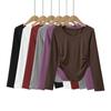 Camisa de cuello redondo para mujer, ropa interior, ropa de mujer, principios de otoño 2024, camiseta blanca de manga larga de moda, top de cachemira sintética para mujer, ropa exterior |