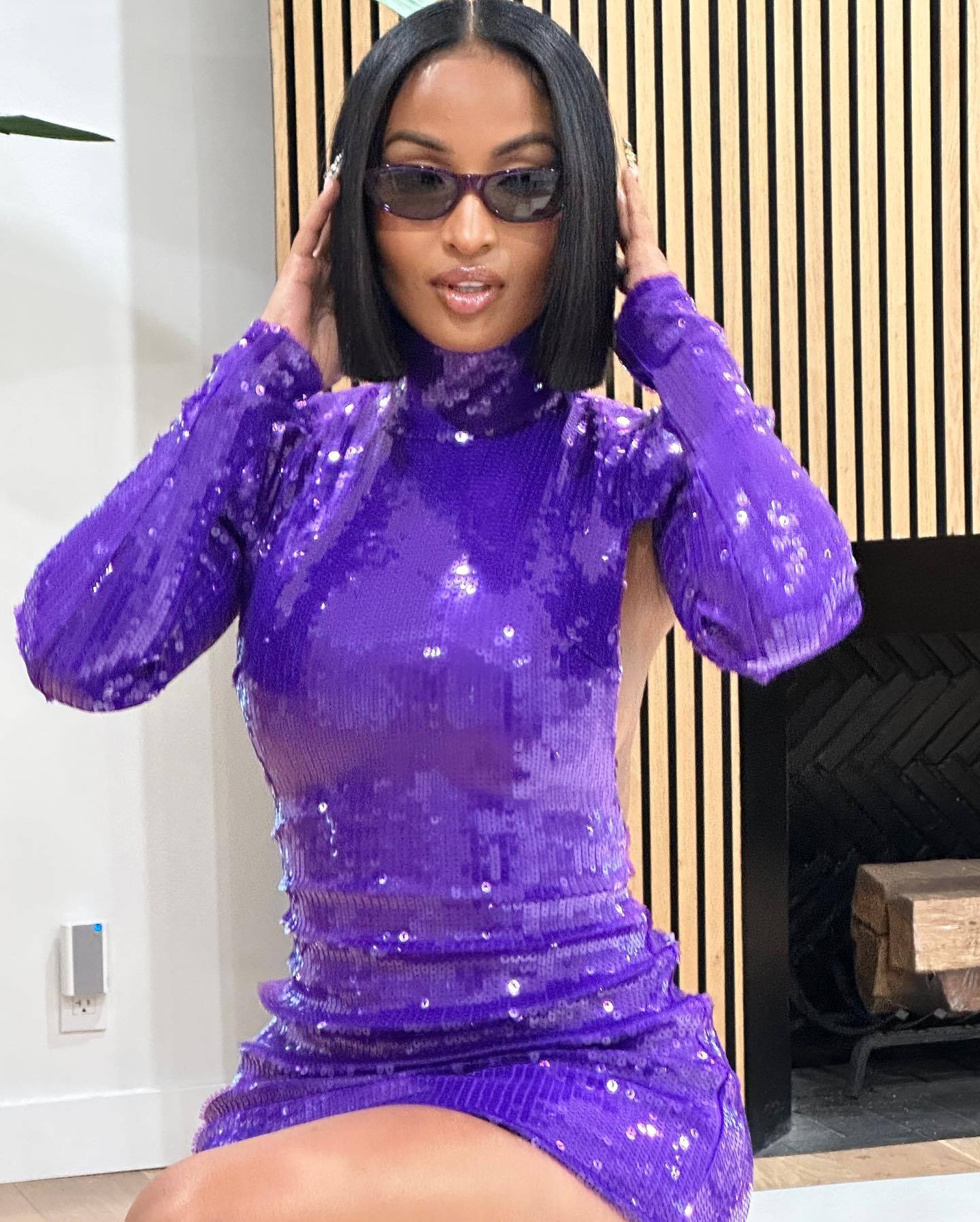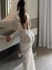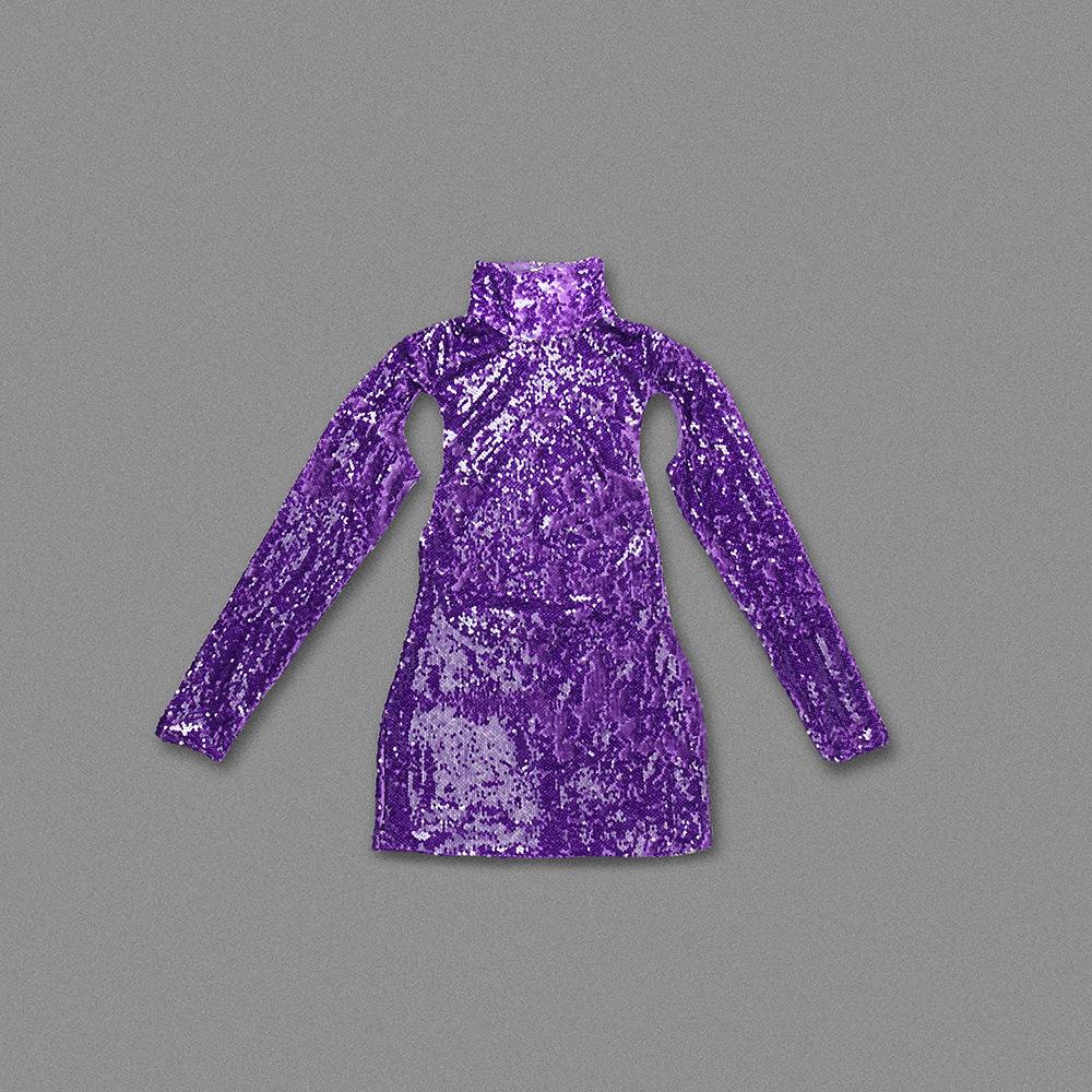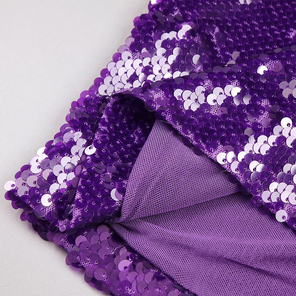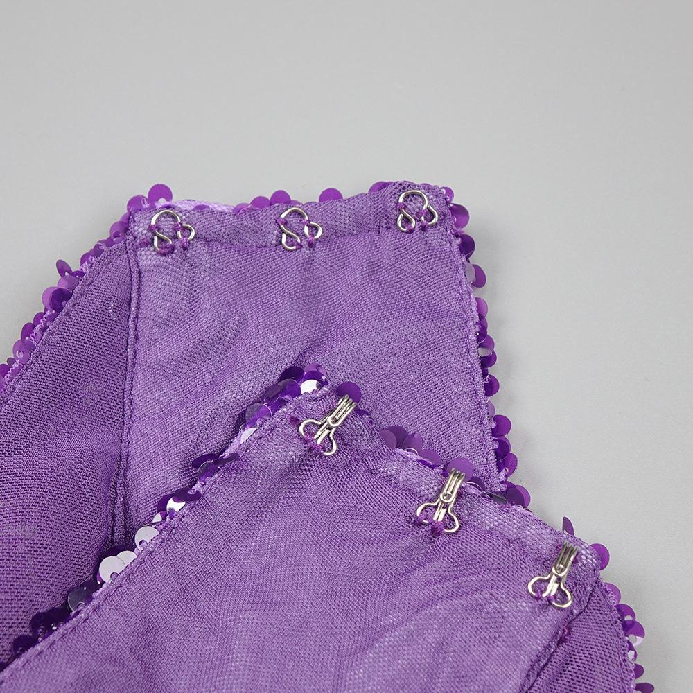 Vestido de Fiesta Nuevo para Mujer Sexy Ajustado con Lentejuelas Moradas Europeas y Americanas, Cuello Redondo, Espalda Descubierta, Manga Larga, Verano