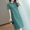 Vestido de Solapa de Largo Medio a la Moda para Mujer 2024 Verano Nuevo Holgado Talla Grande Cintura Estampado Falda Delgada