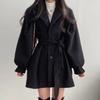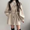 Nuevo abrigo de estilo coreano elegante de otoño e invierno, suelto, de lana, con cuello de traje, abrigo de lana de longitud media para mujeres pequeñas