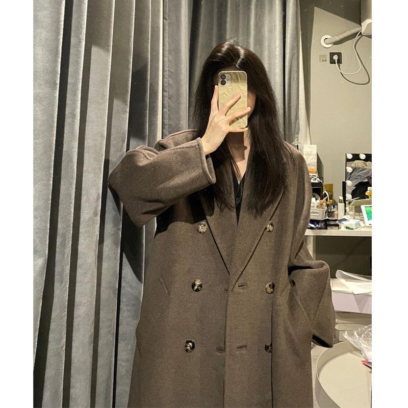 Abrigo de Lana Grueso Pequeño para Mujer 2024 Otoño e Invierno Nuevo Estilo Coreano Doble Botonadura Largo Medio Abrigo de Lana
