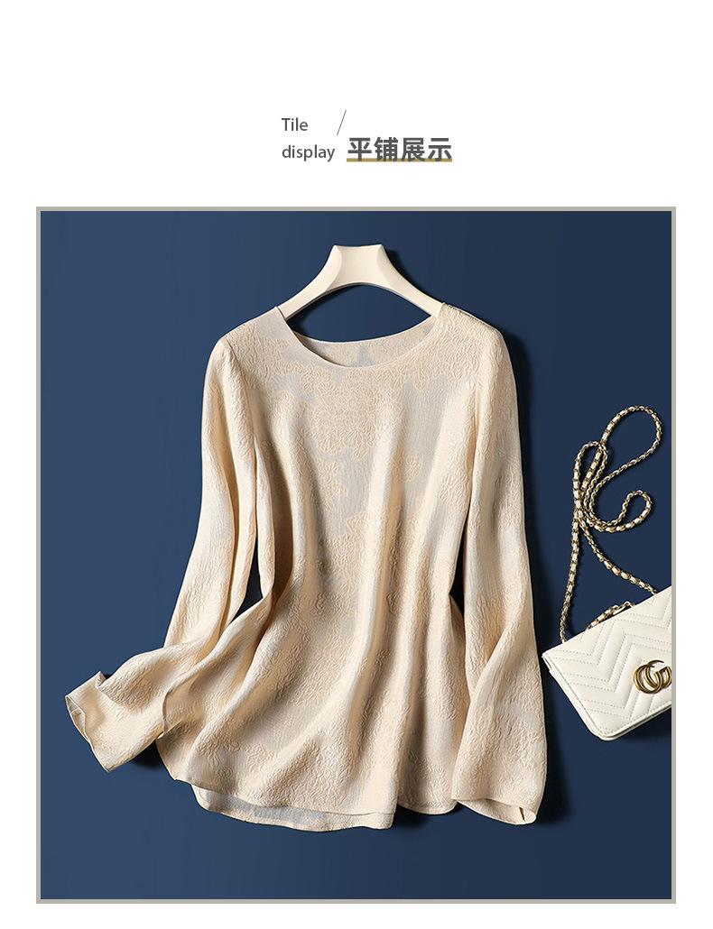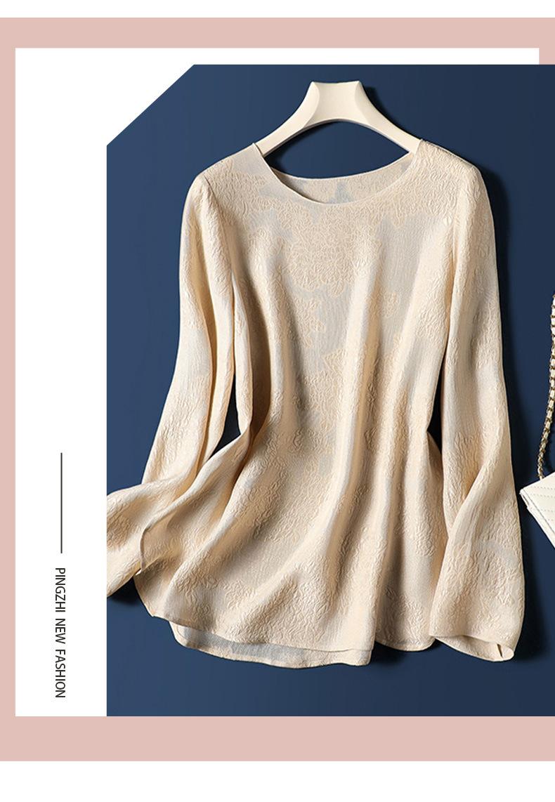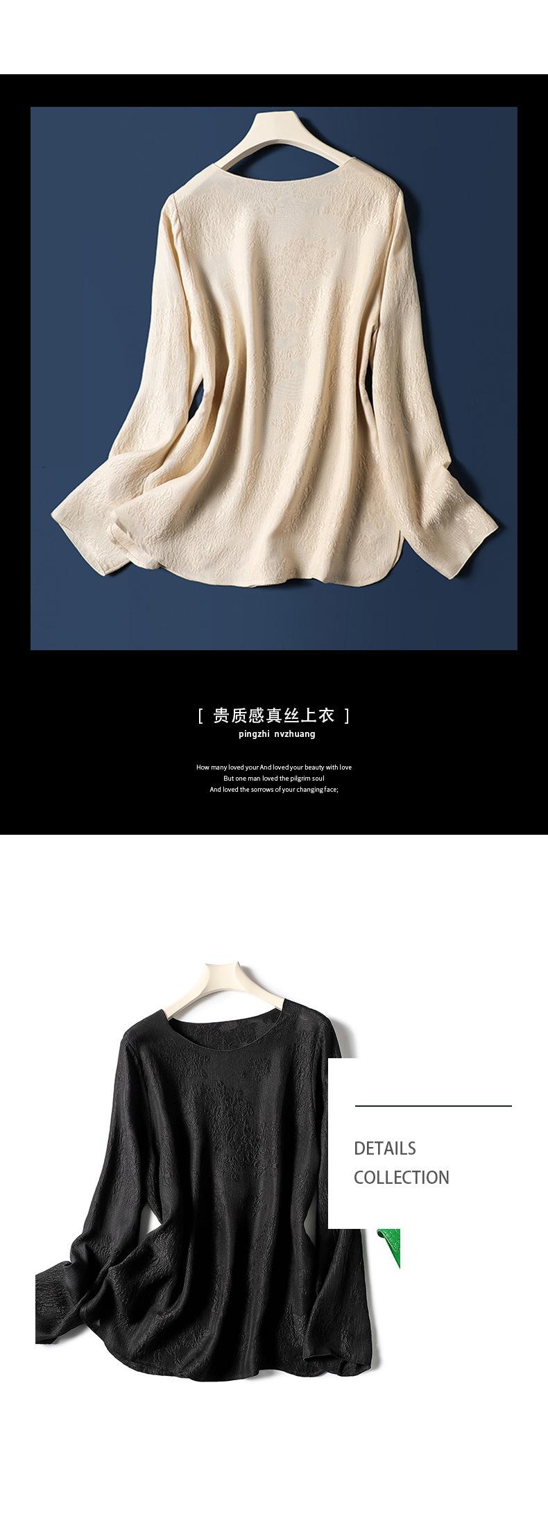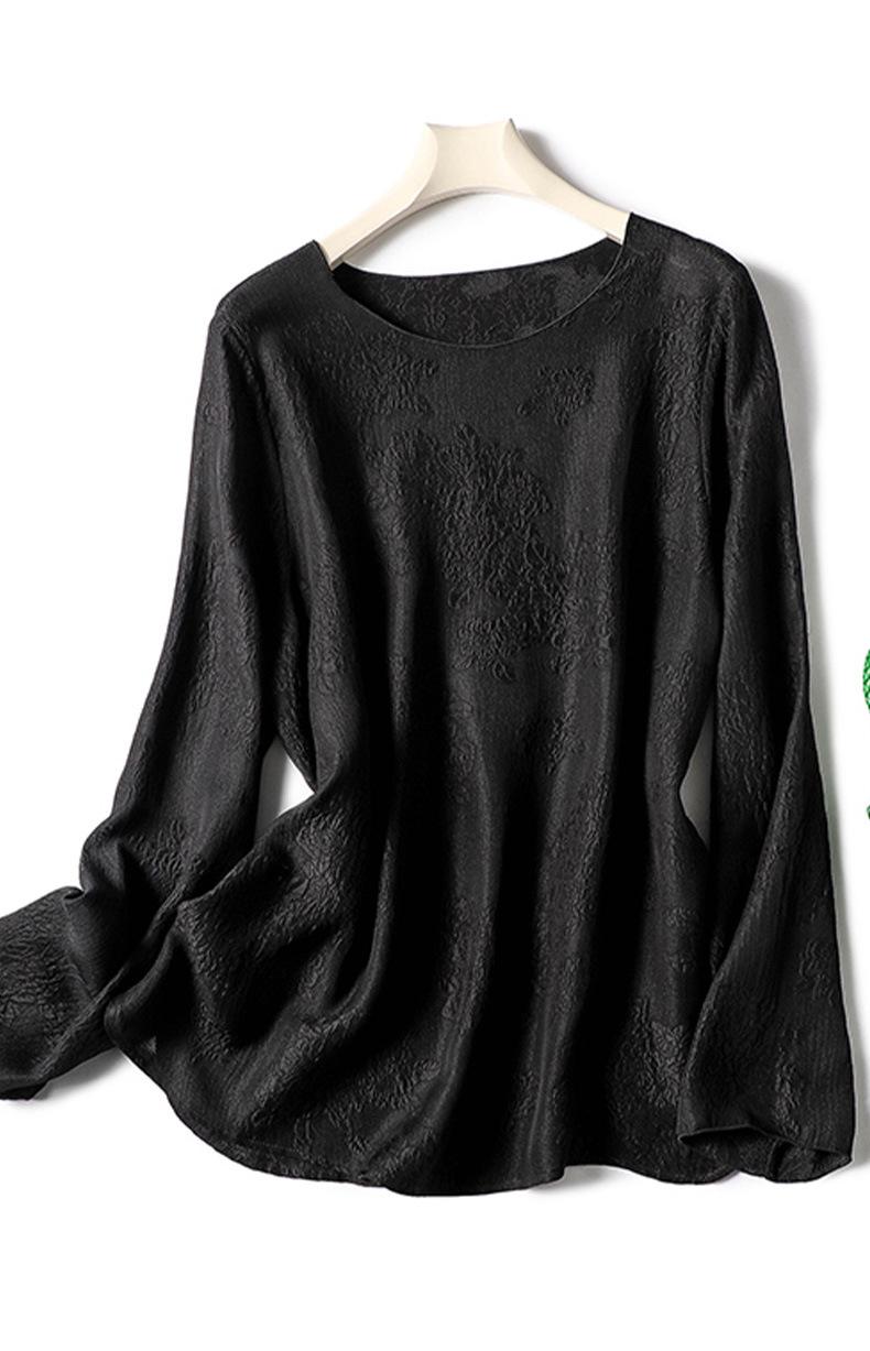 Blusa Jacquard de Seda de 19mm, Camiseta de Seda de Morera, Top Negro de Manga Larga, Ropa de Mujer de Hangzhou para Otoño y Verano