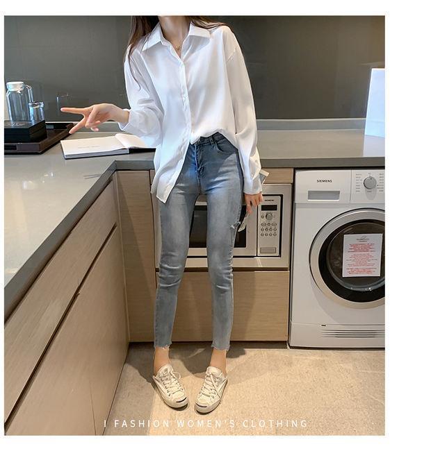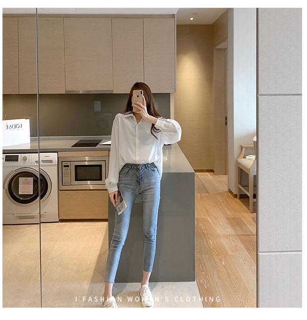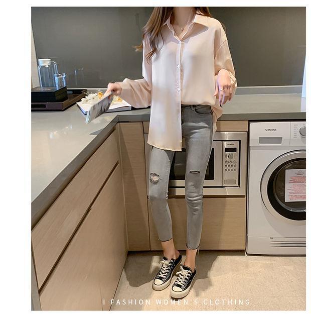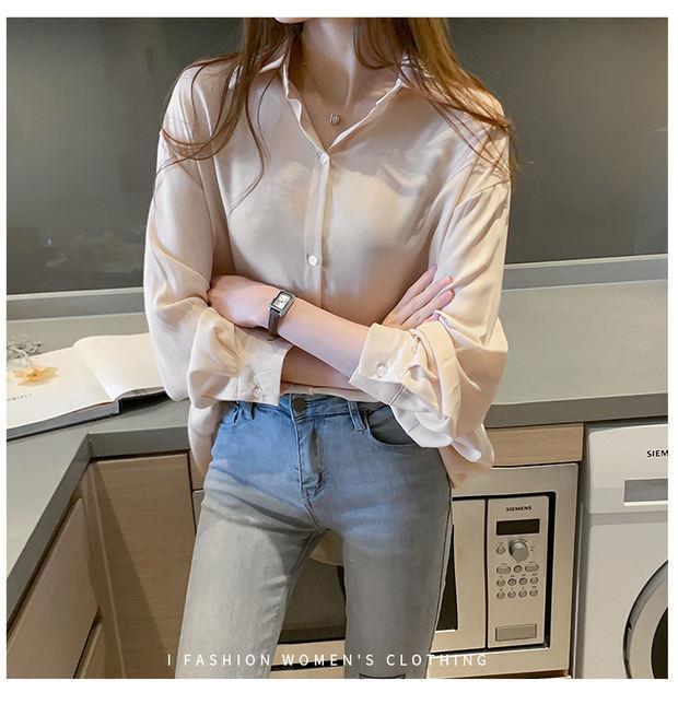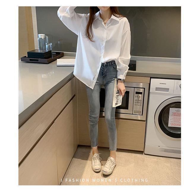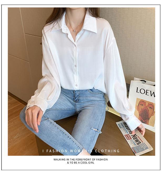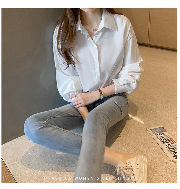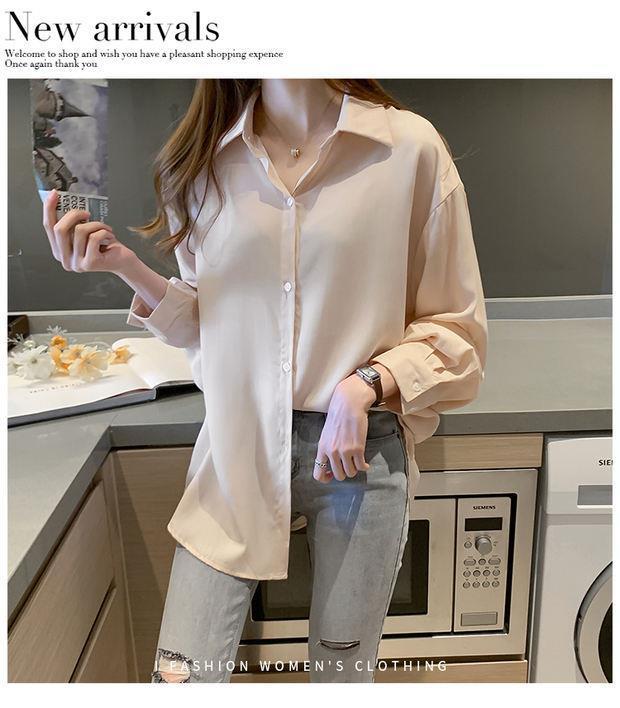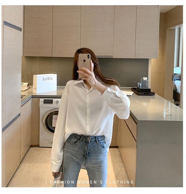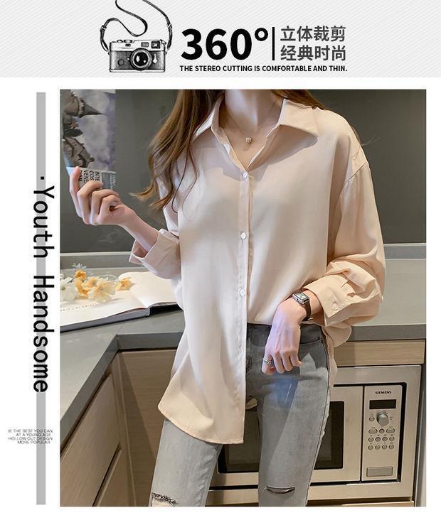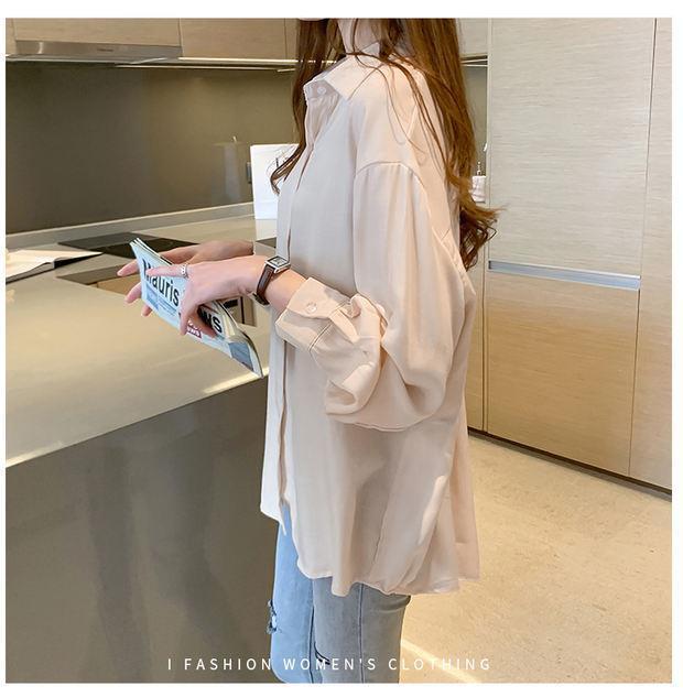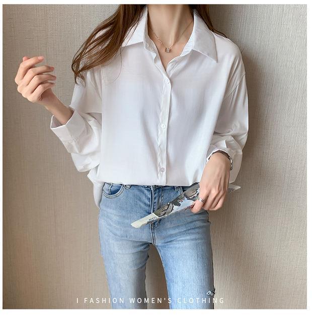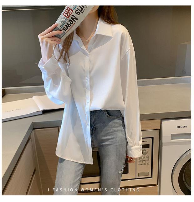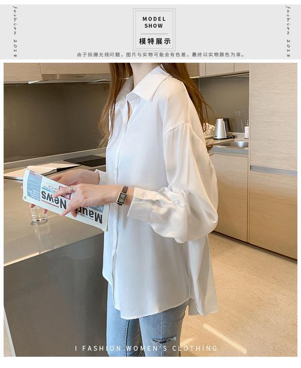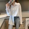 Camisa blanca de manga larga para mujer, camisa que combina con todo, abrigo para mujer, camisa holgada retro de gasa estilo Hong Kong, ropa exterior para mujer, de moda
