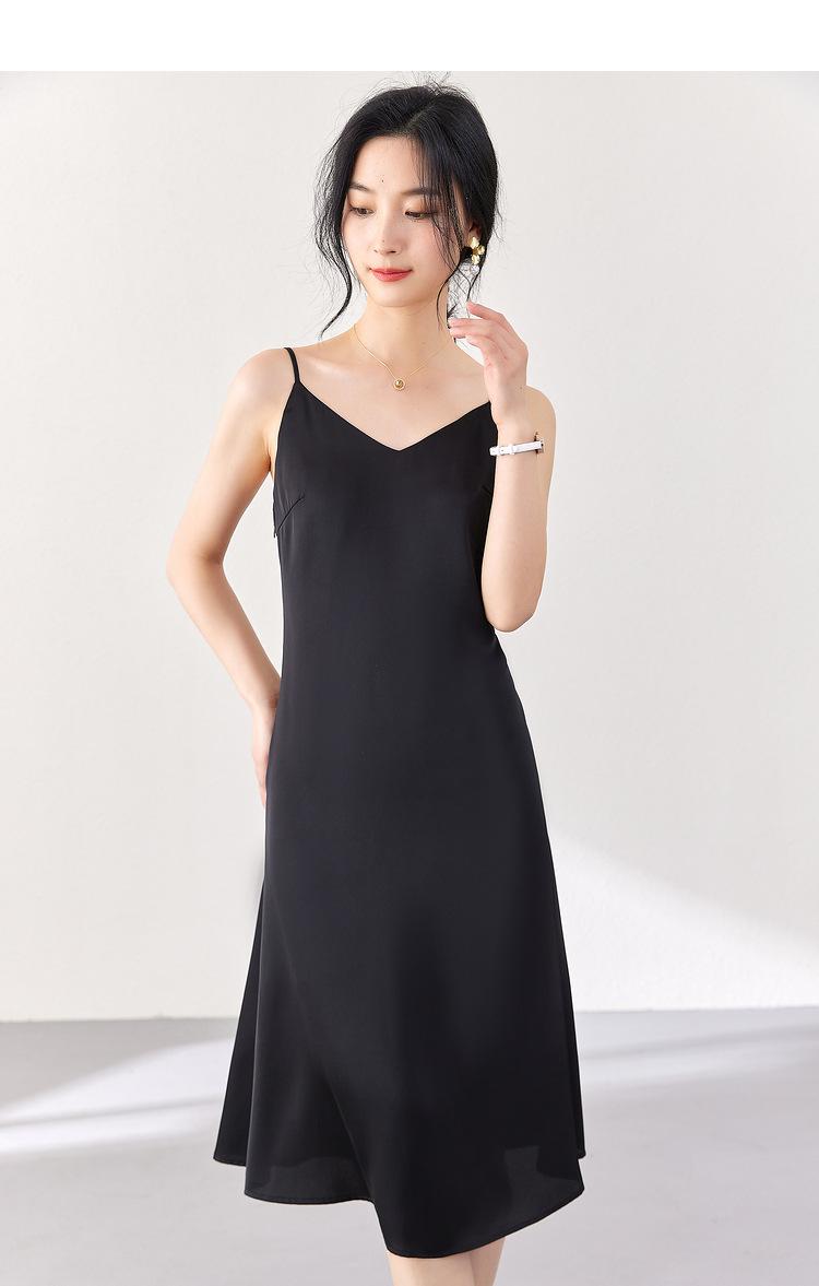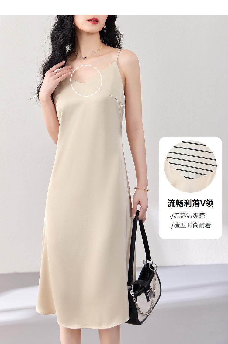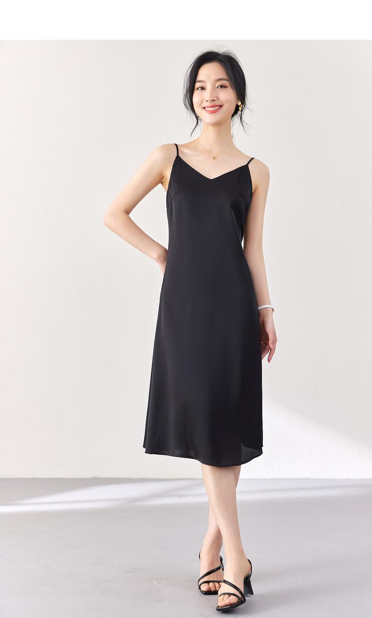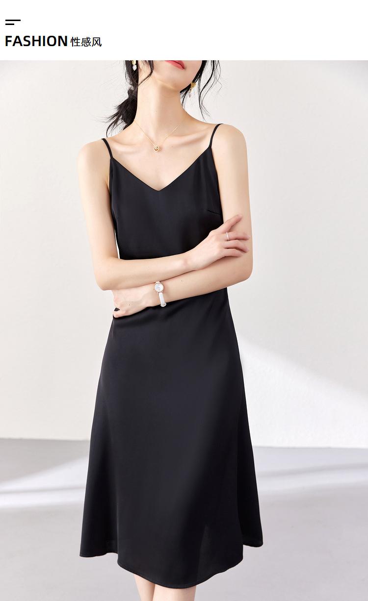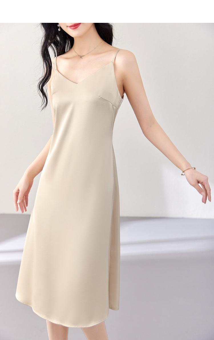 Zhen Xi - Vestido sexy de escote en V, color liso, largo medio, para mujer, cintura alta, adelgazante, DJ830