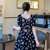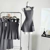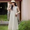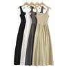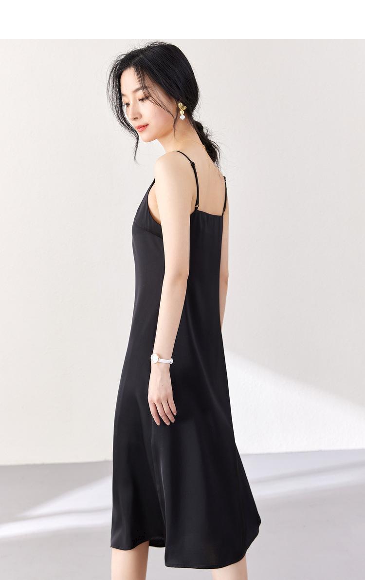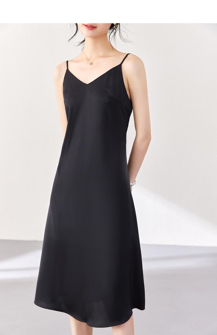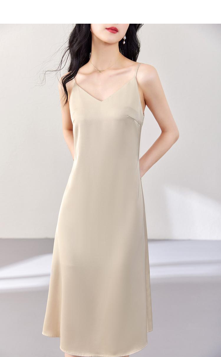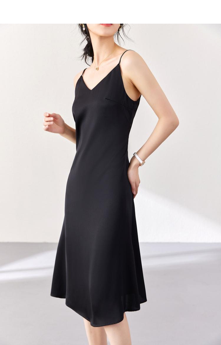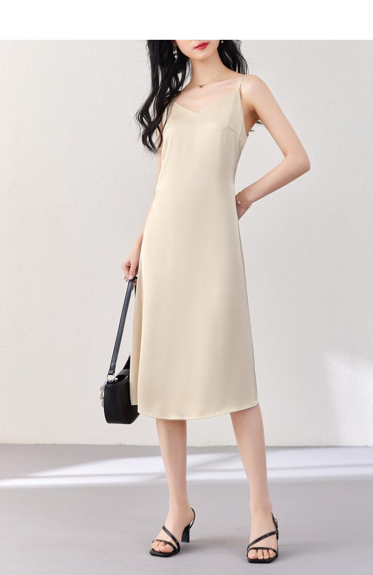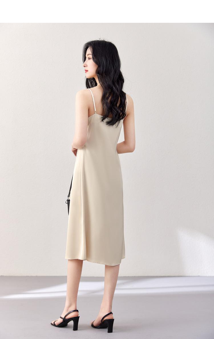 Zhen Xi - Vestido sexy de escote en V, color liso, largo medio, para mujer, cintura alta, adelgazante, DJ830