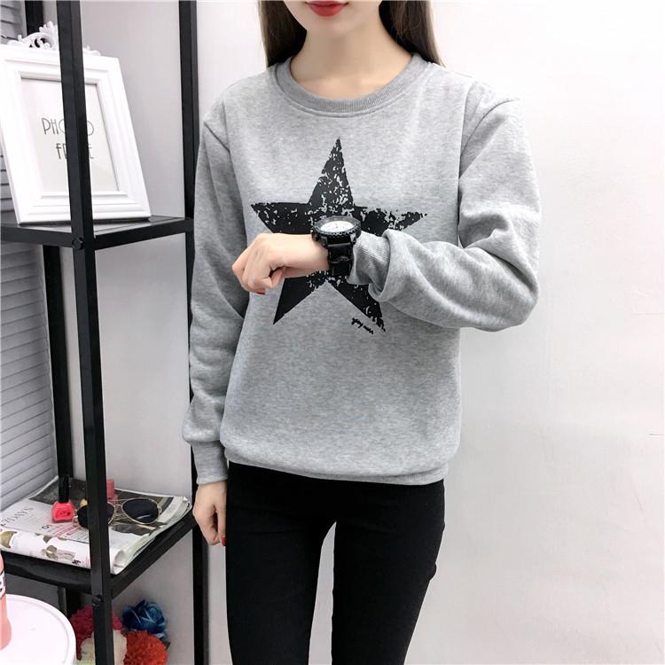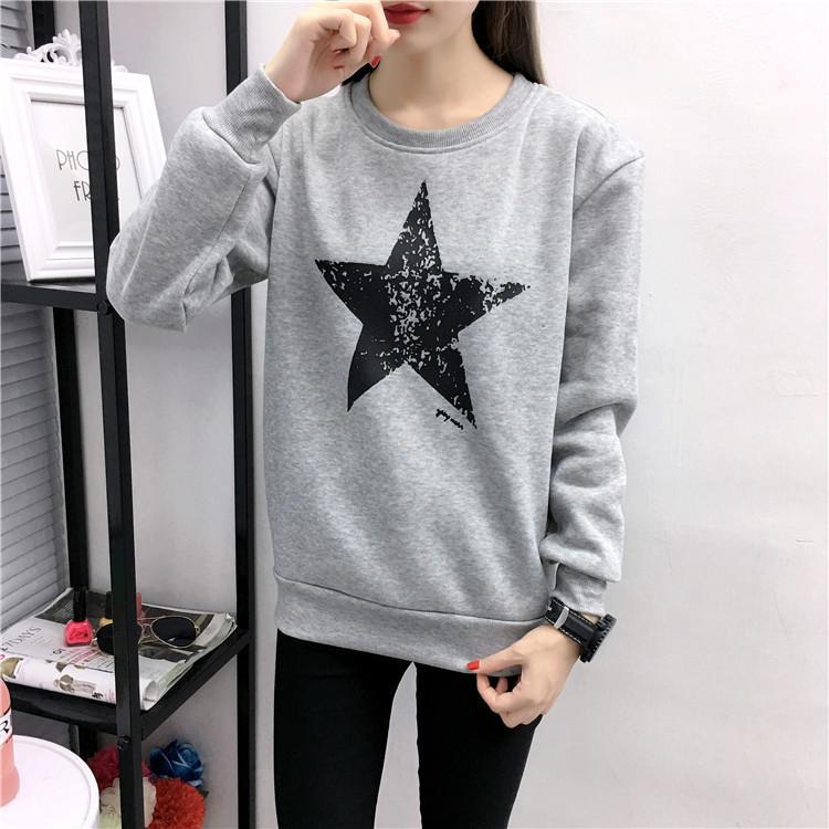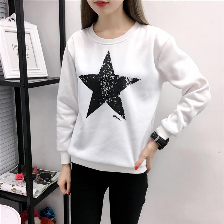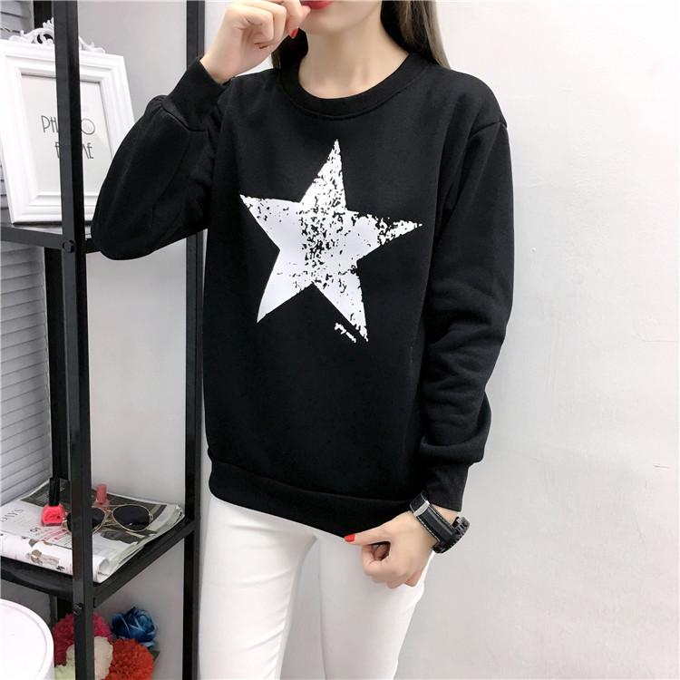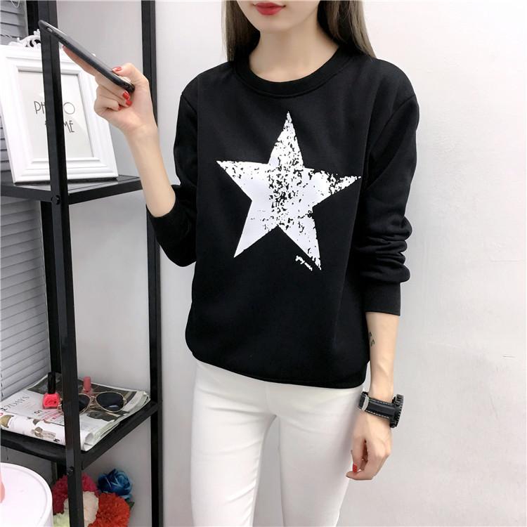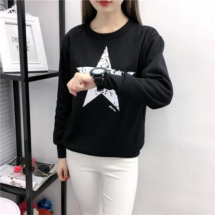 Nueva Camiseta Base Estampada Holgada de Talla Grande para Mujer Otoño-Invierno 2025, Sudadera de Manga Larga para Mujer Gruesa y Forrada con Vellón, a la Moda