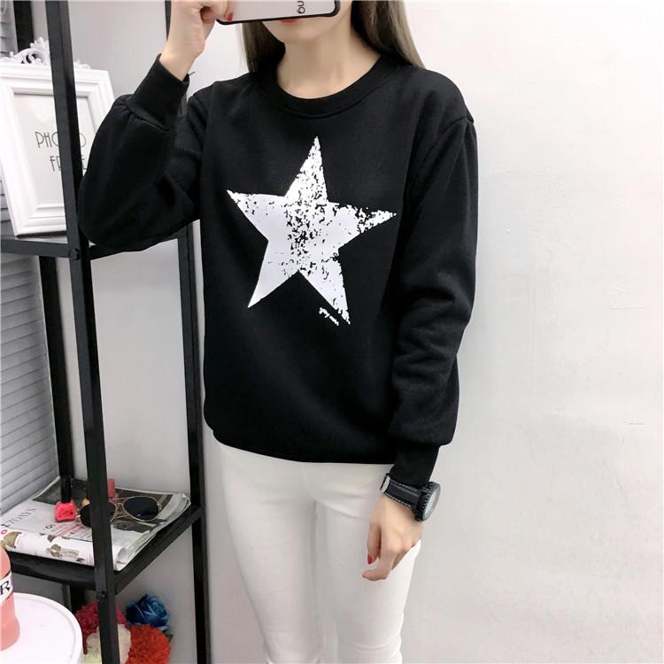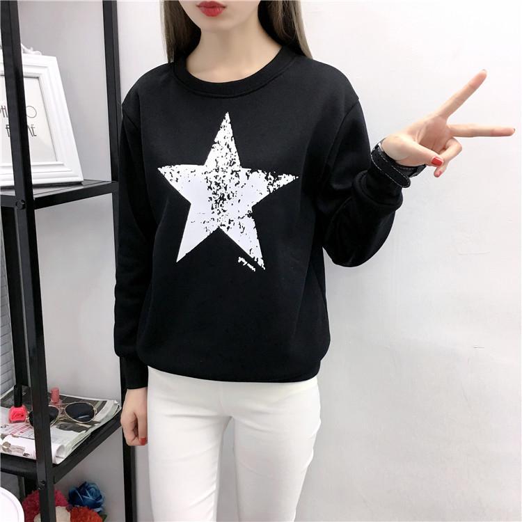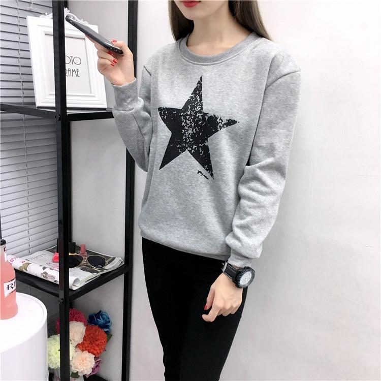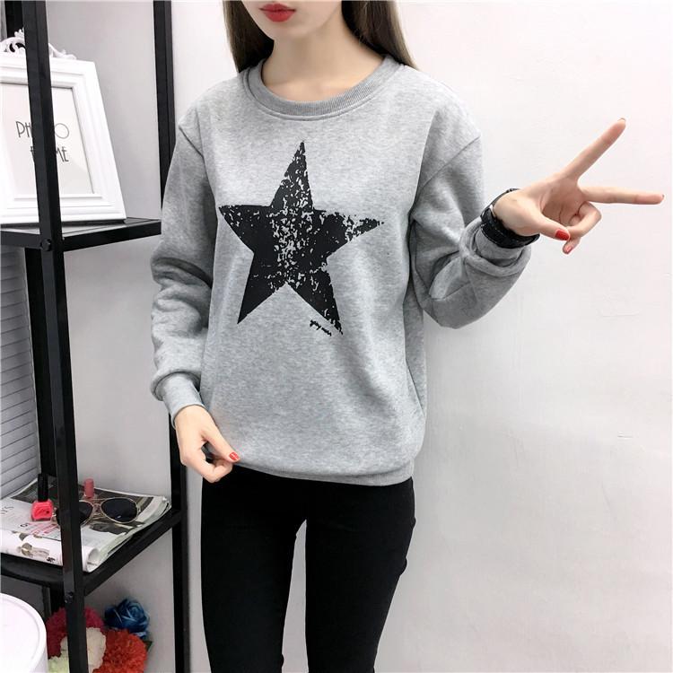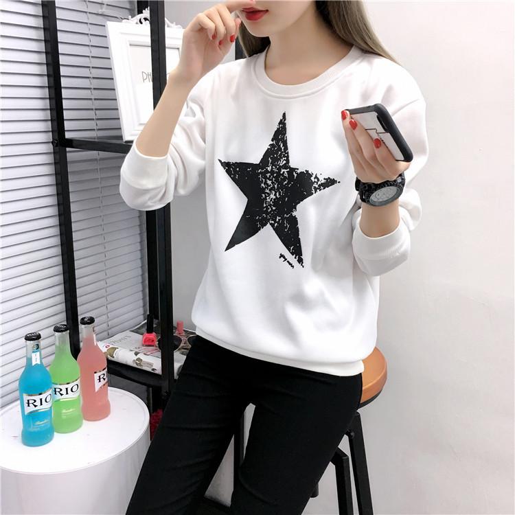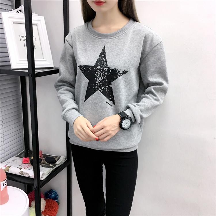 Nueva Camiseta Base Estampada Holgada de Talla Grande para Mujer Otoño-Invierno 2025, Sudadera de Manga Larga para Mujer Gruesa y Forrada con Vellón, a la Moda