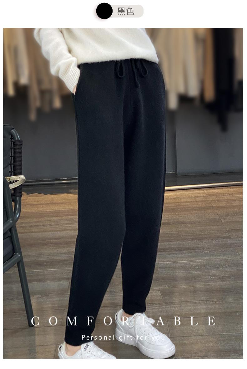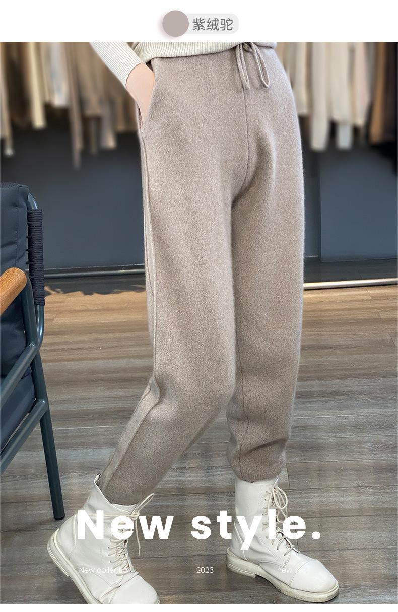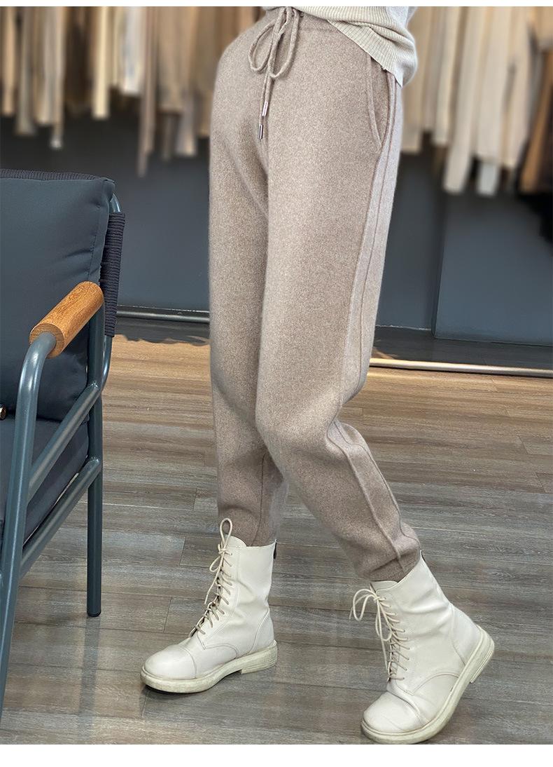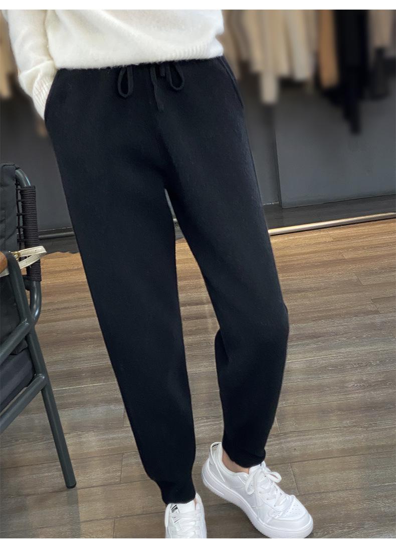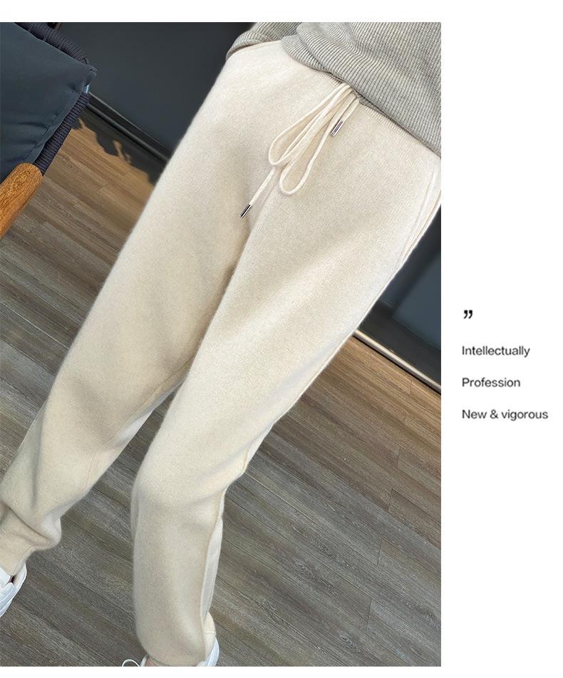 Pantalones ajustados de punto de lana para mujer estilo deportivo 2023 otoño e invierno nuevos casuales gruesos de cintura alta holgados