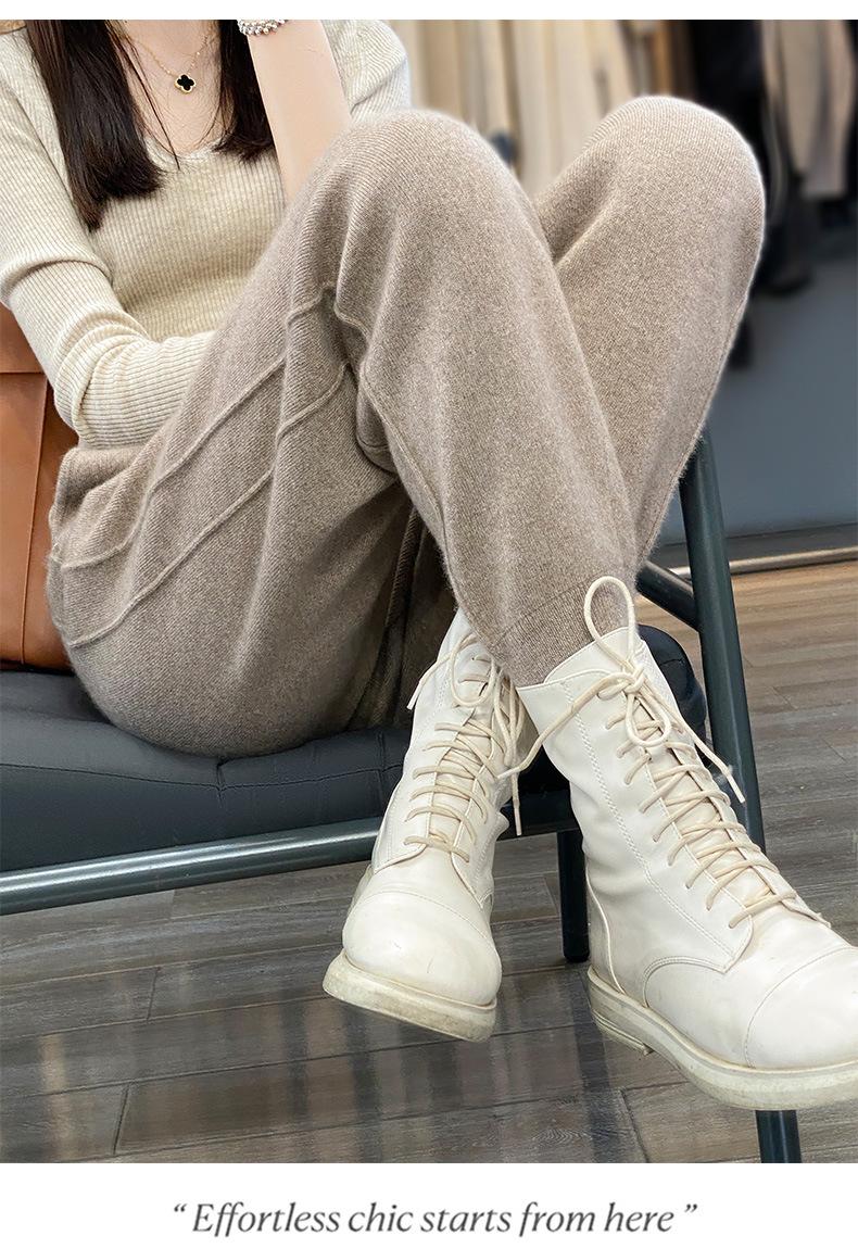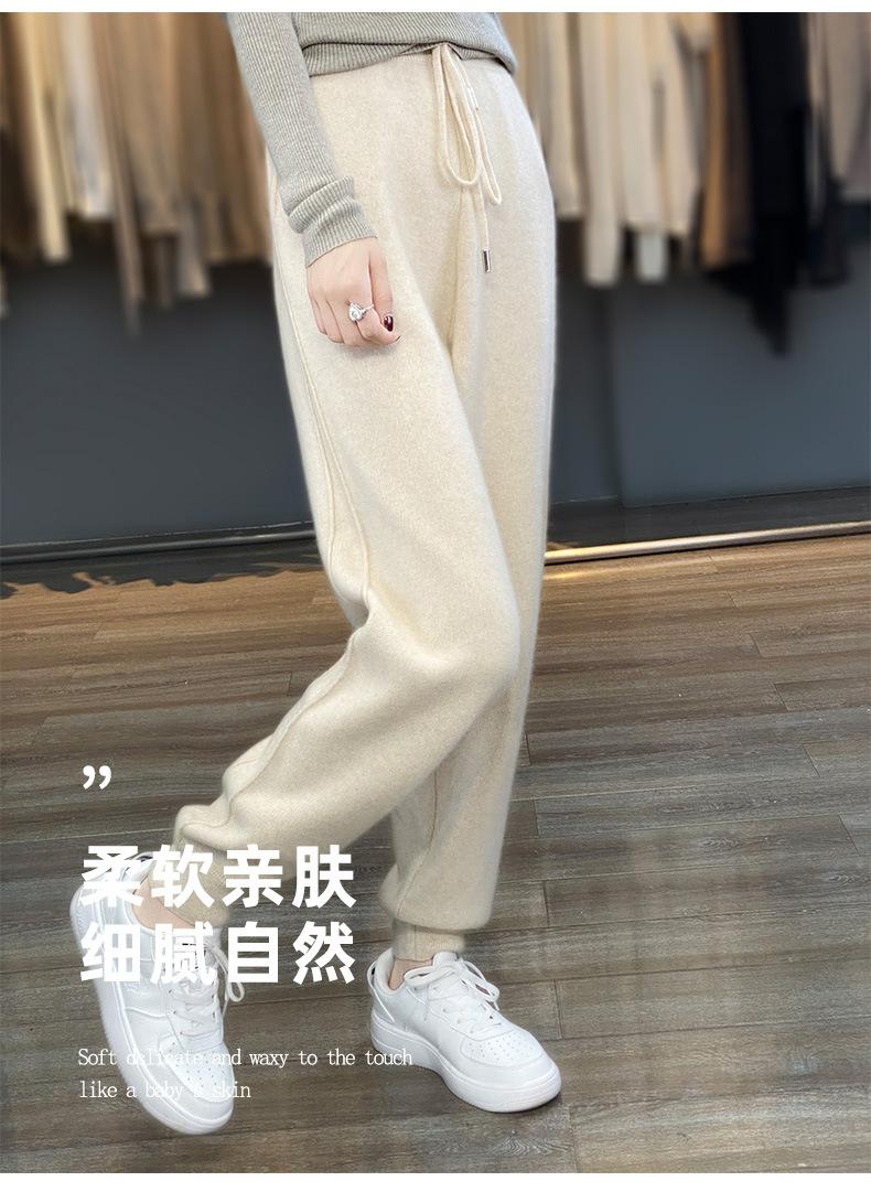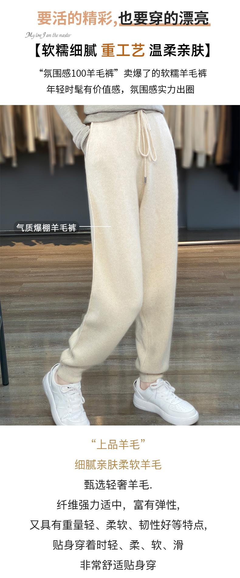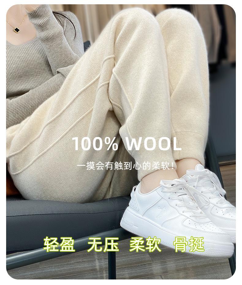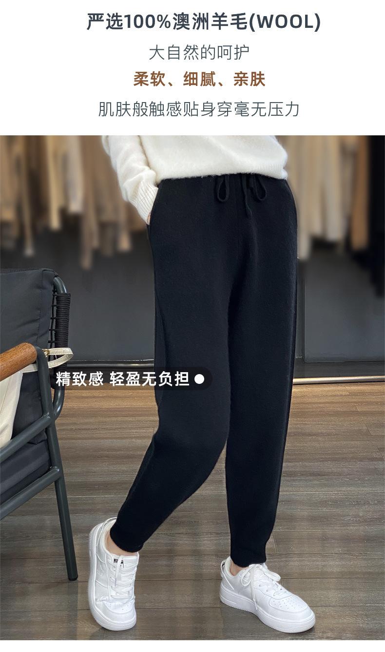 Pantalones ajustados de punto de lana para mujer estilo deportivo 2023 otoño e invierno nuevos casuales gruesos de cintura alta holgados
