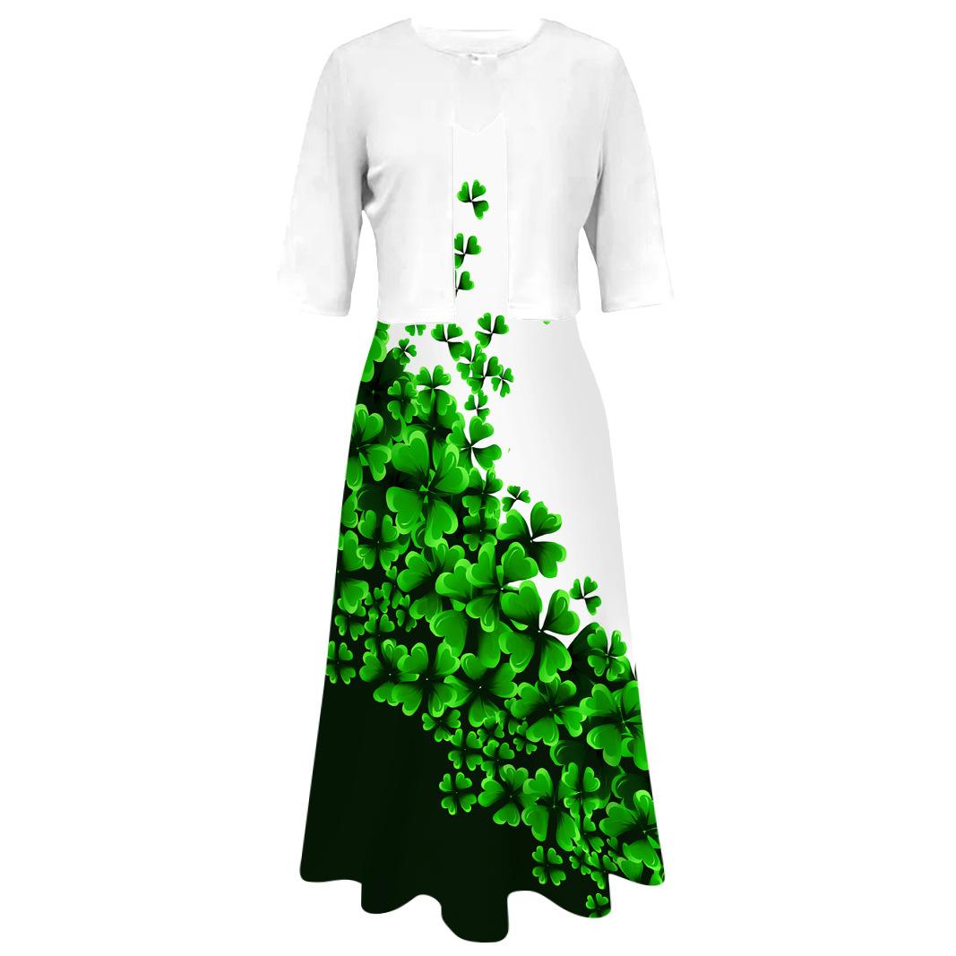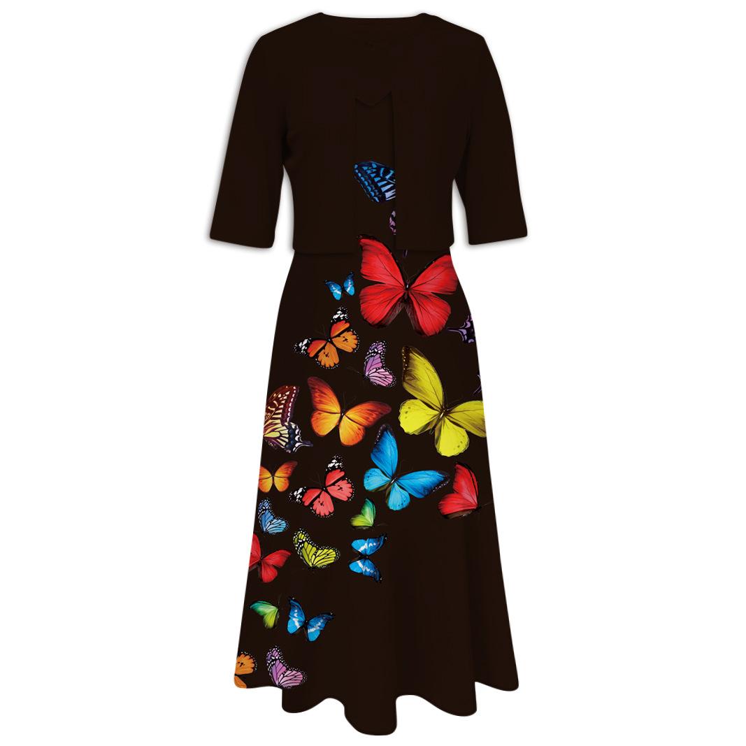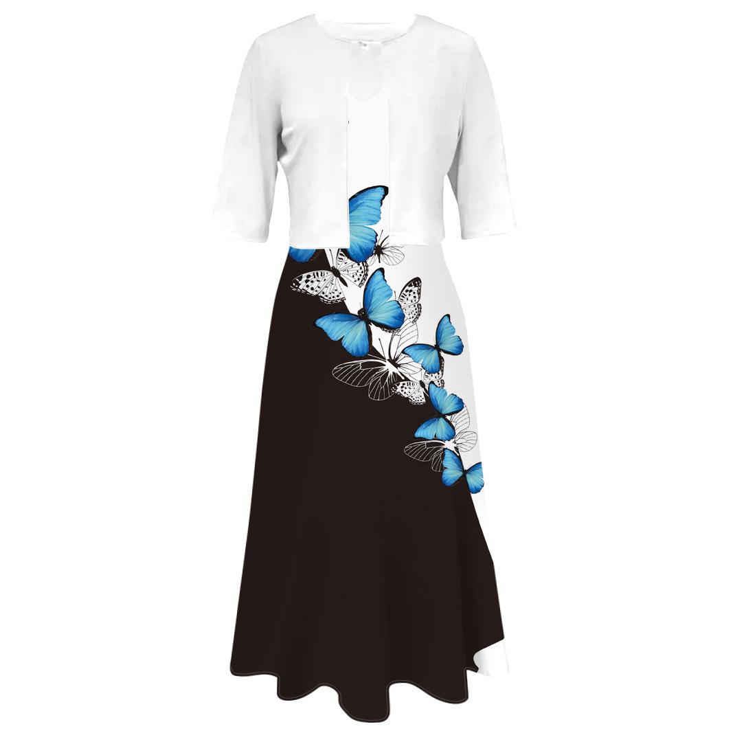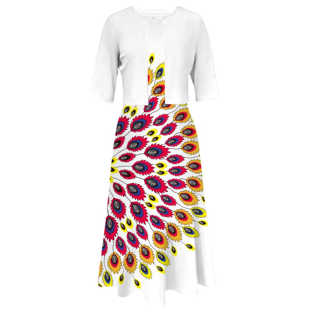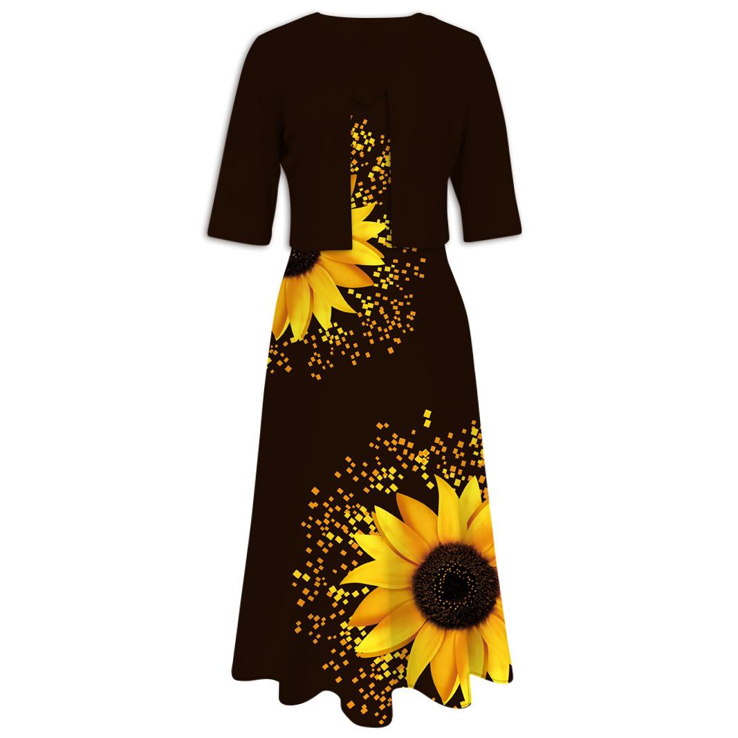 Conjunto de dos piezas de vestido y abrigo de cuello redondo con estampado 3D para mujer, otoño 2024, Amazon, Europa y América