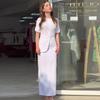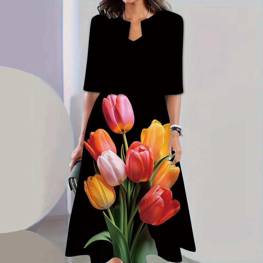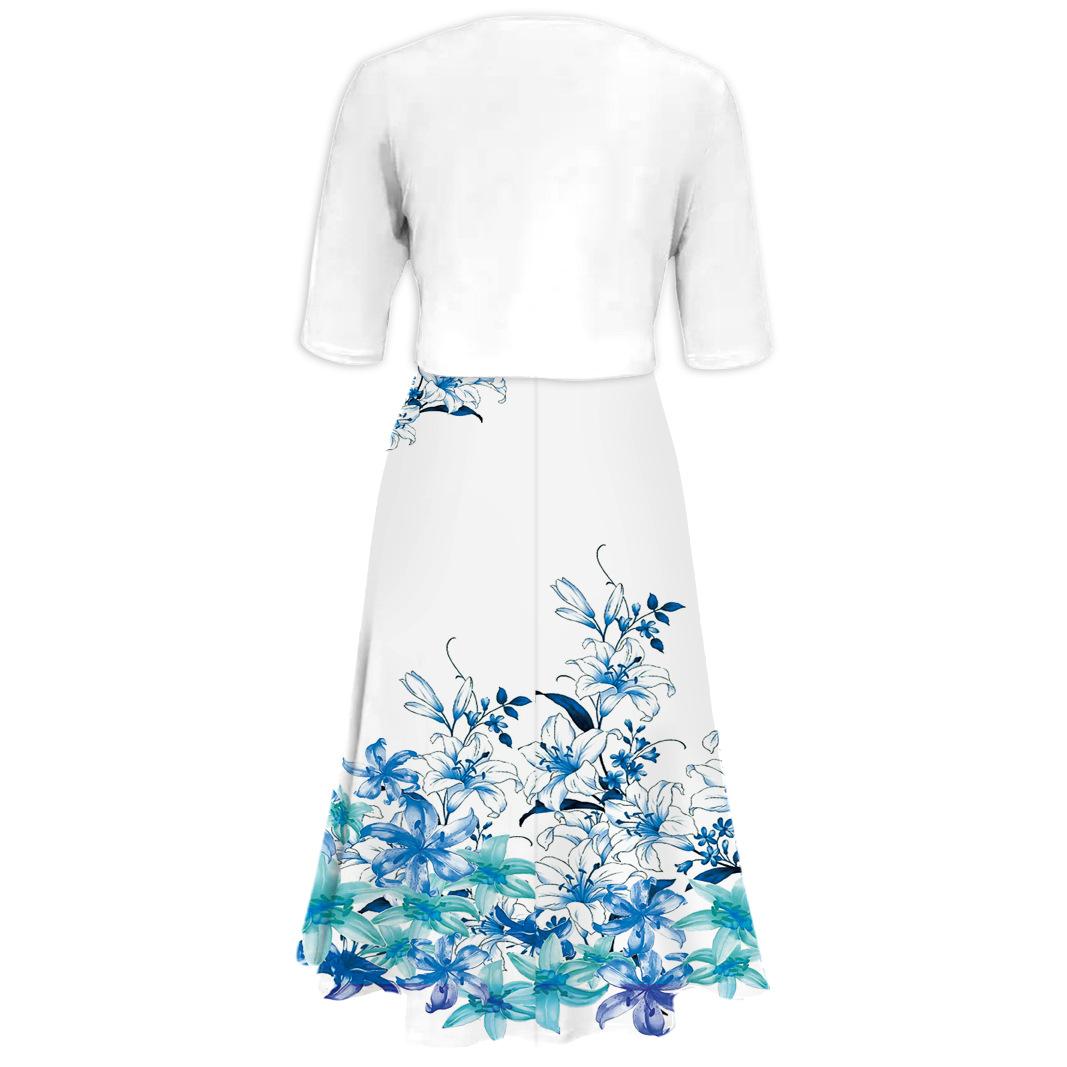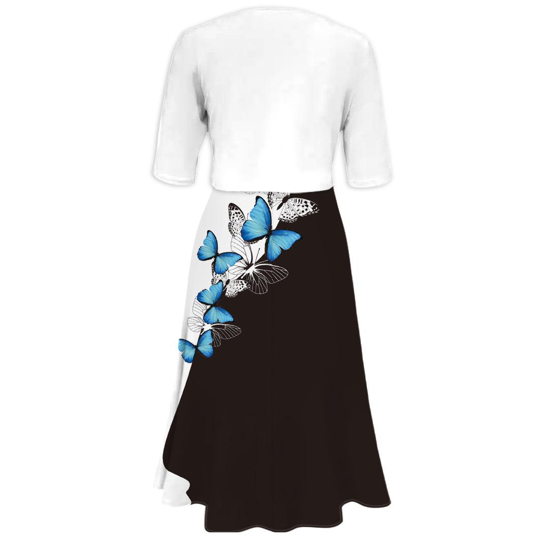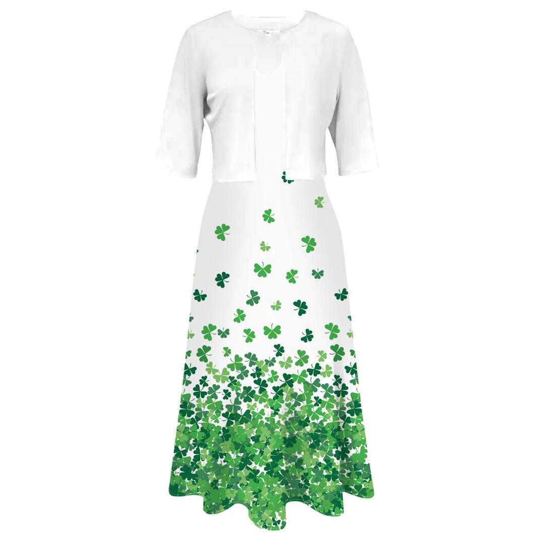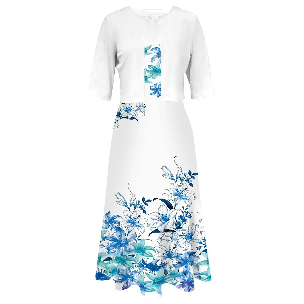 Conjunto de dos piezas de vestido y abrigo de cuello redondo con estampado 3D para mujer, otoño 2024, Amazon, Europa y América
