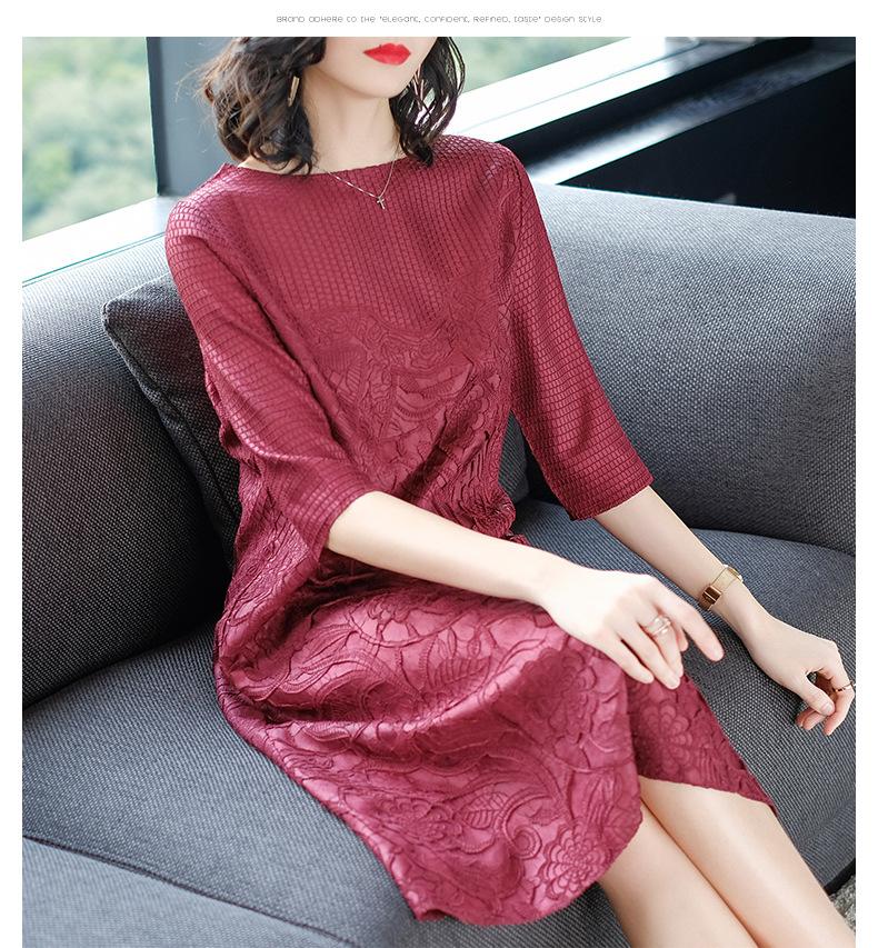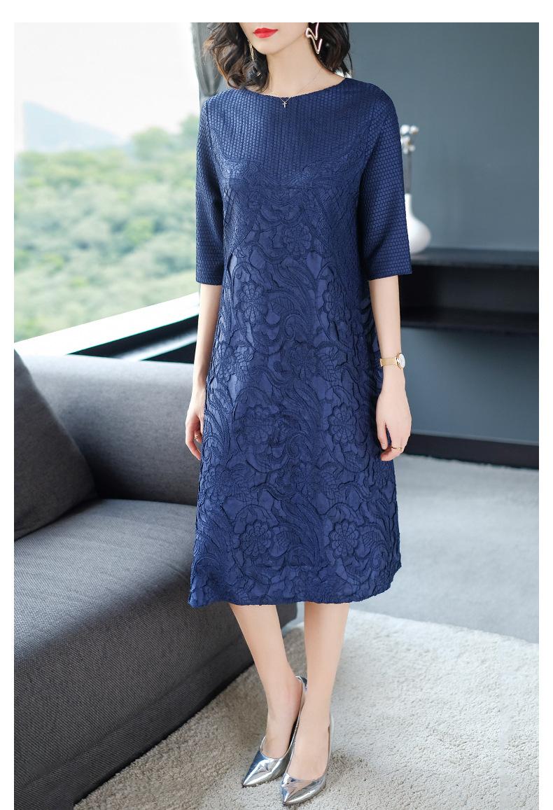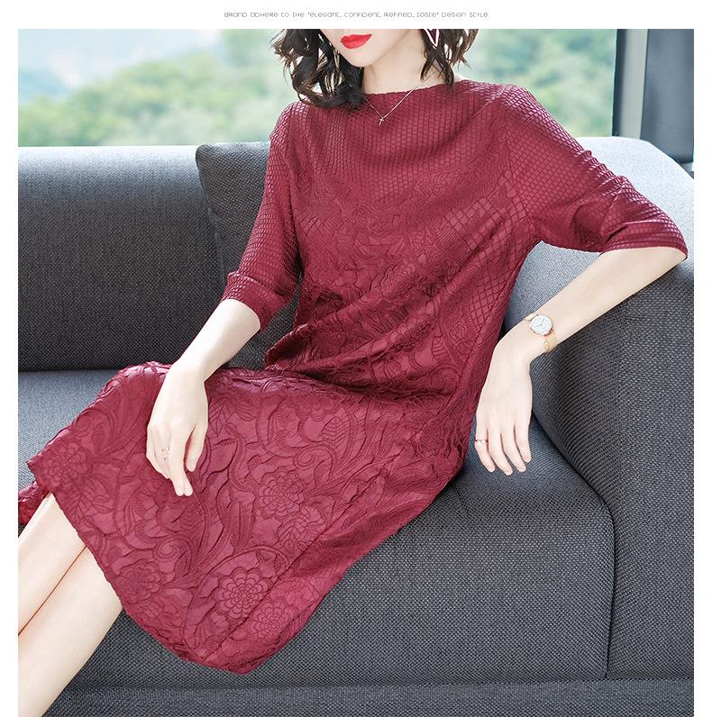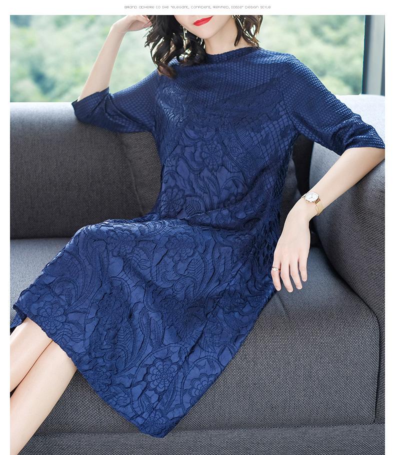 Vestido Bordado Otoño 2023 Nuevo Ropa de Moda Elegante para Madre de Mediana Edad de Talla Grande Suelta para Mujer Falda Línea A por Encima de la Rodilla