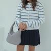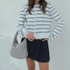 2023 Invierno nuevo Europeo y Americano Amazon transfronterizo moda cuello redondo rayas estampado mohair suéter hebilla metálica