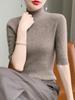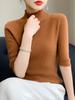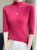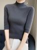 Camisa de punto de media manga para mujer, jersey de cuello alto medio, suéter corto de media manga de color liso, suéter interior