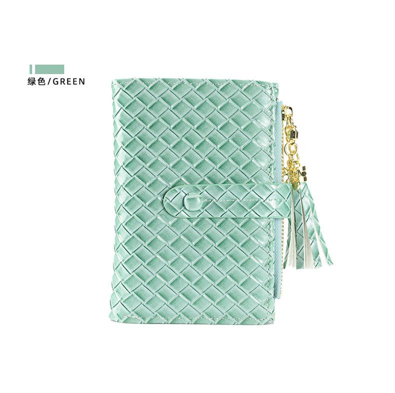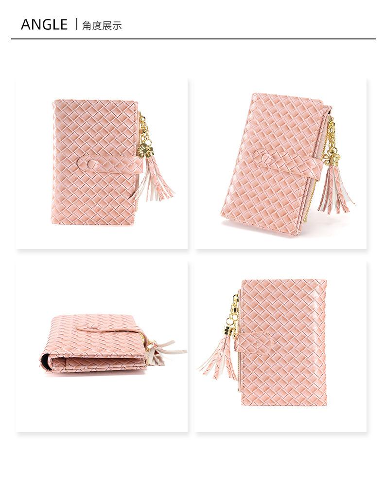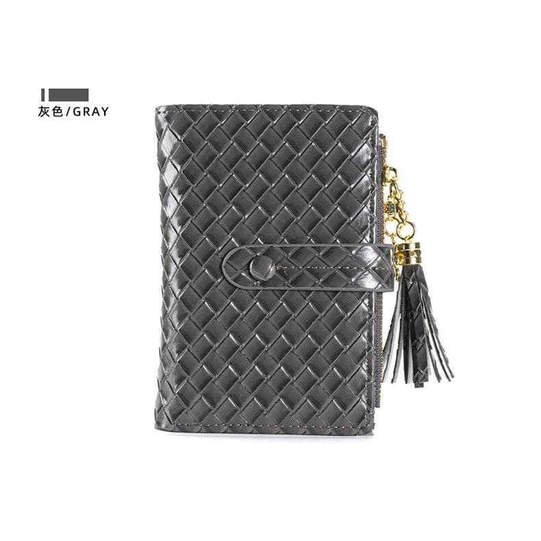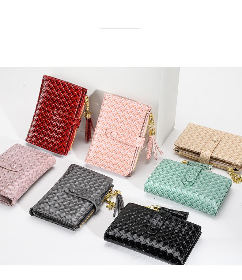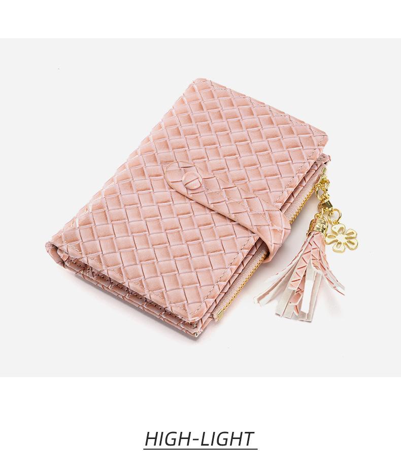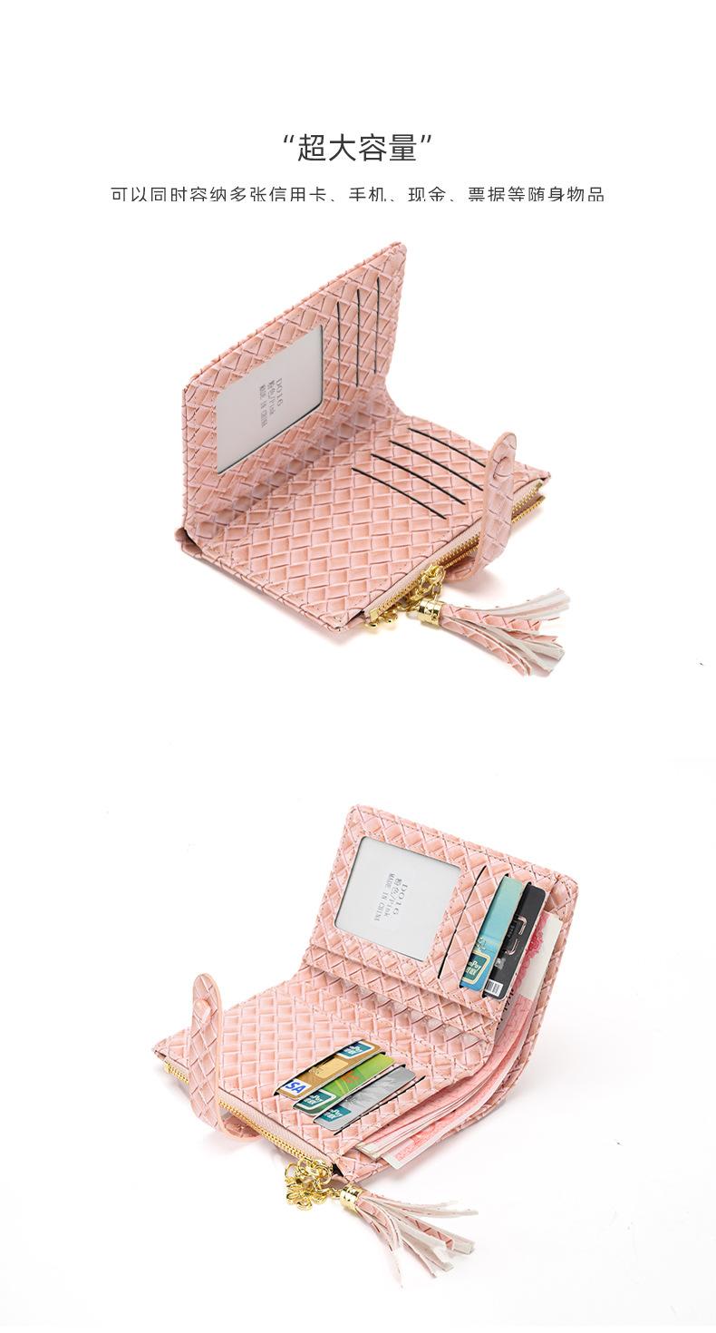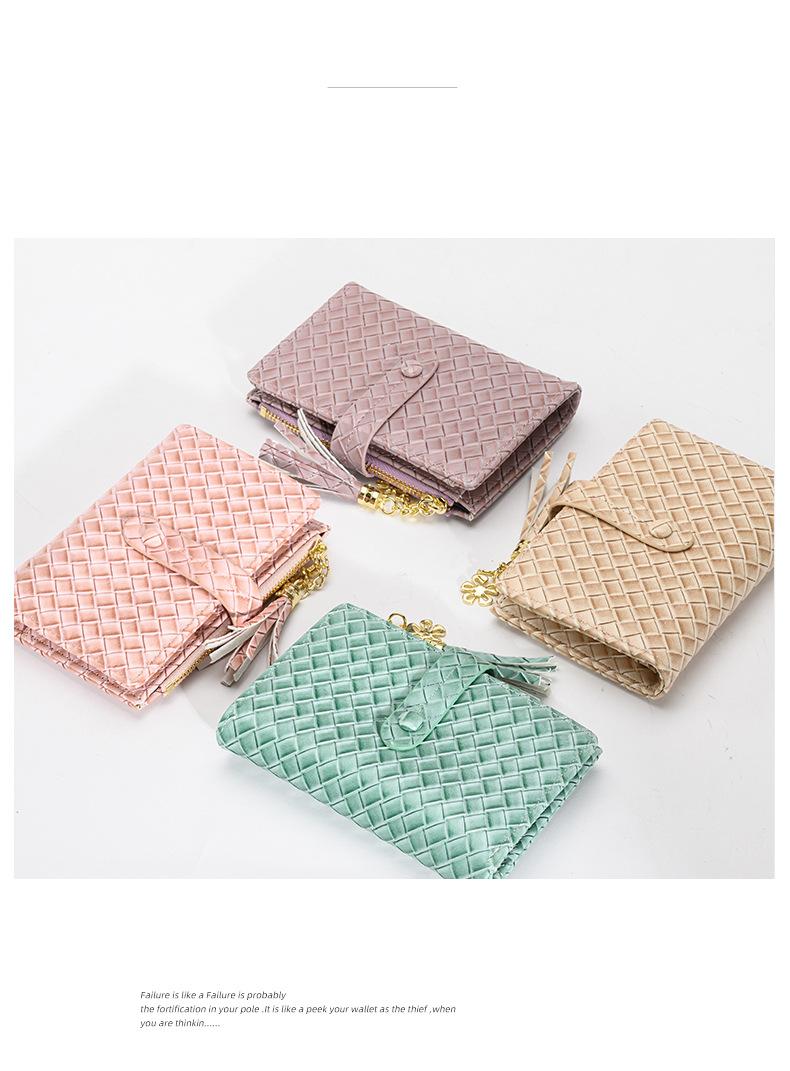 Cartera para Mujer 2024 Nueva Moda Coreana Colgante de Borla Cartera Corta con Patrón Tejido Monedero Multitarjeta