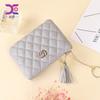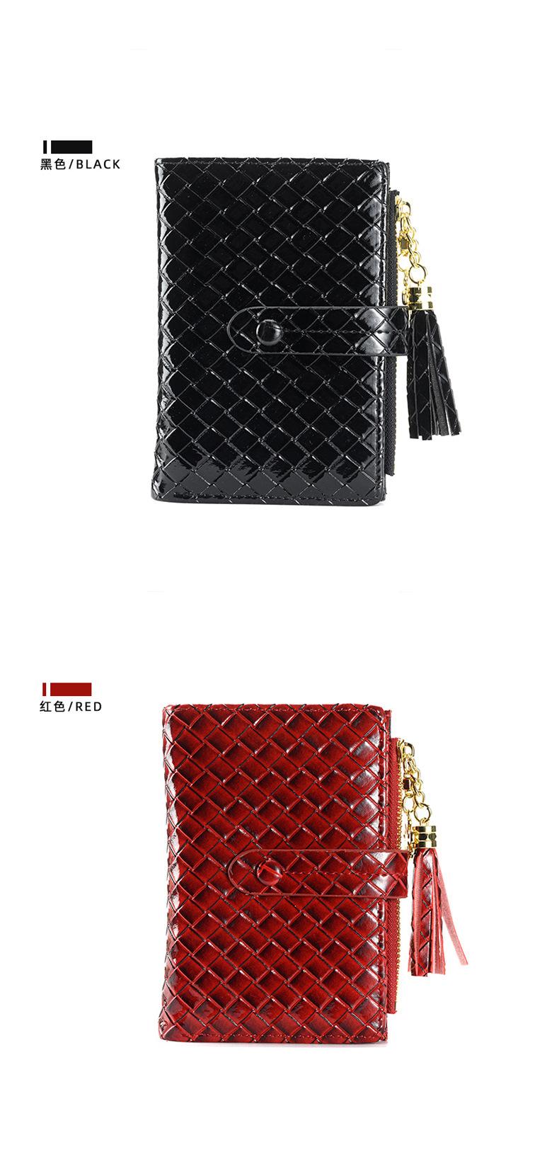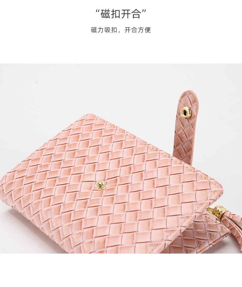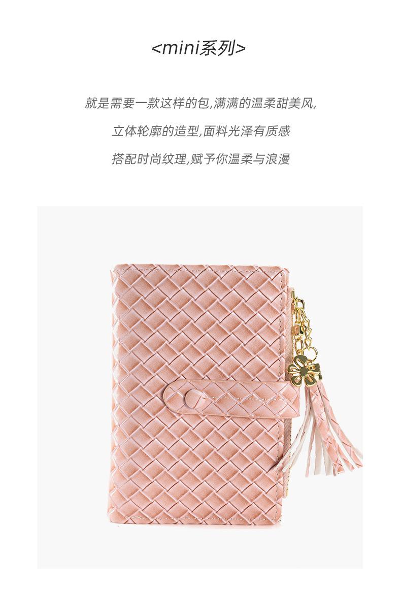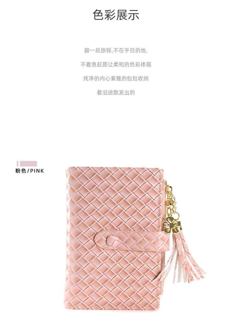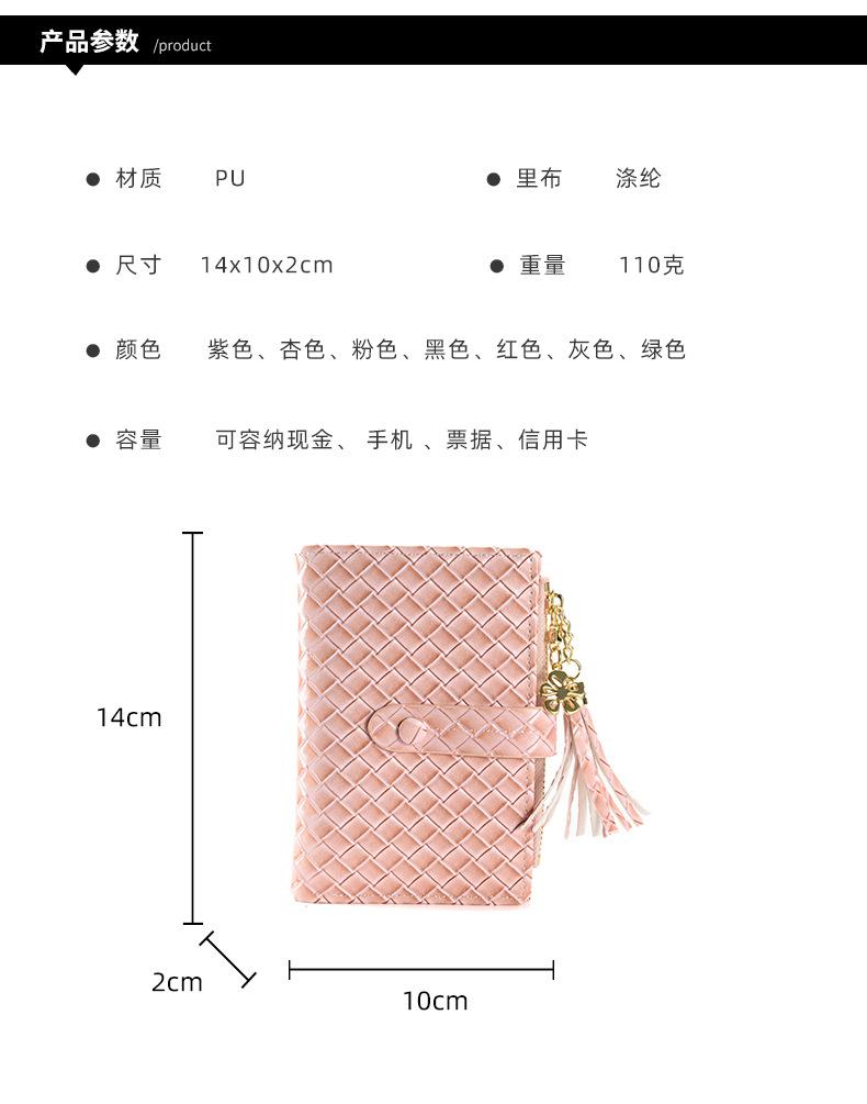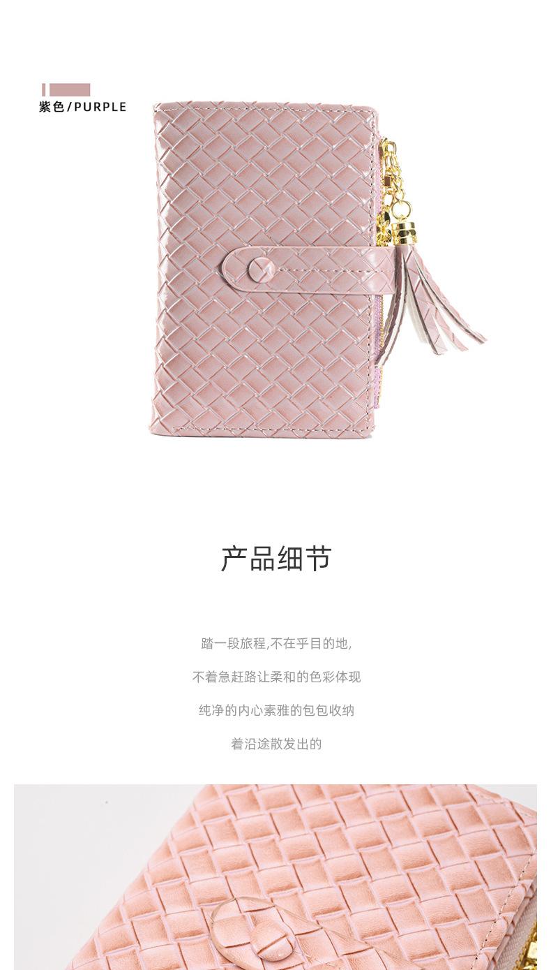 Cartera para Mujer 2024 Nueva Moda Coreana Colgante de Borla Cartera Corta con Patrón Tejido Monedero Multitarjeta