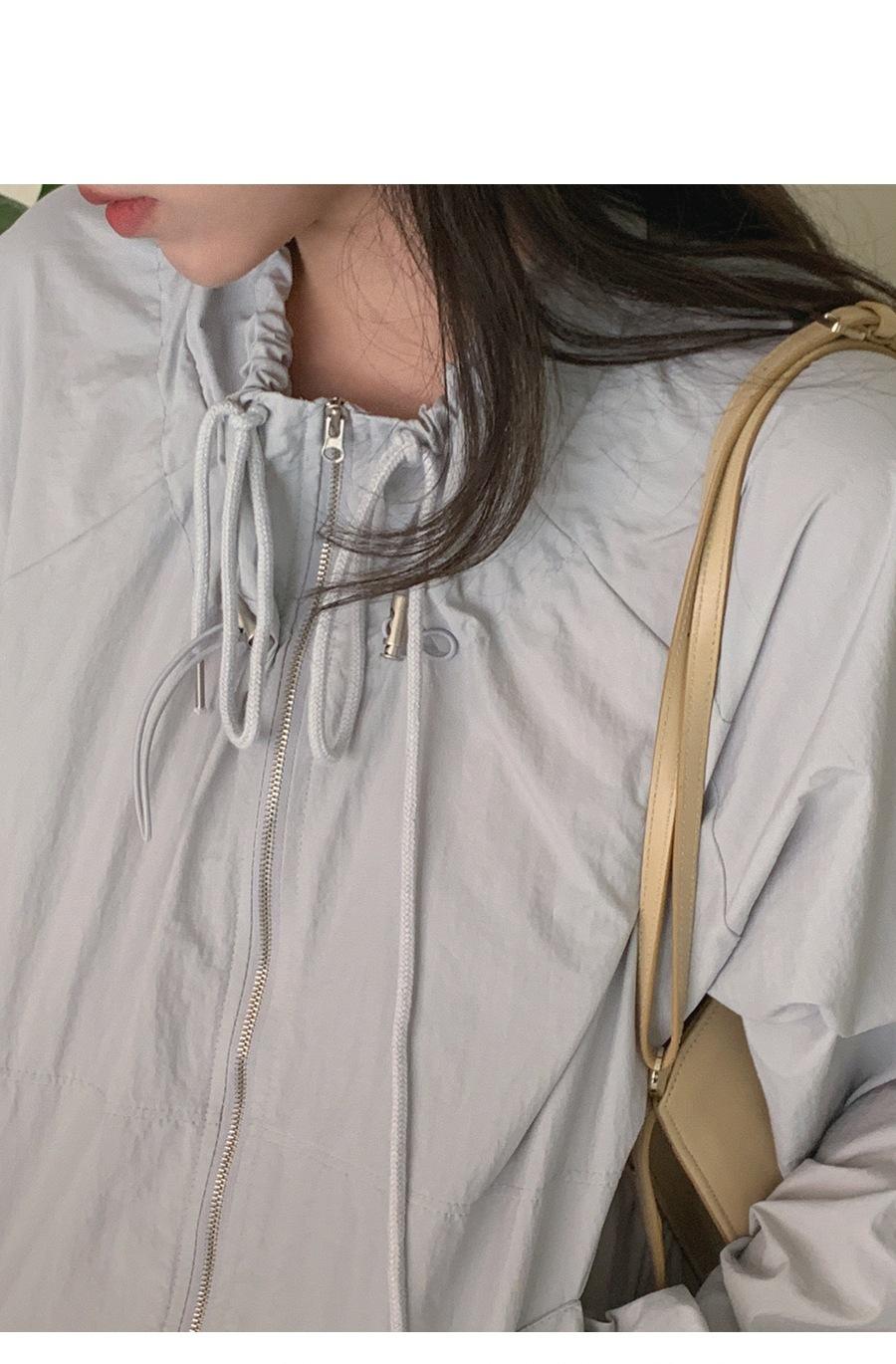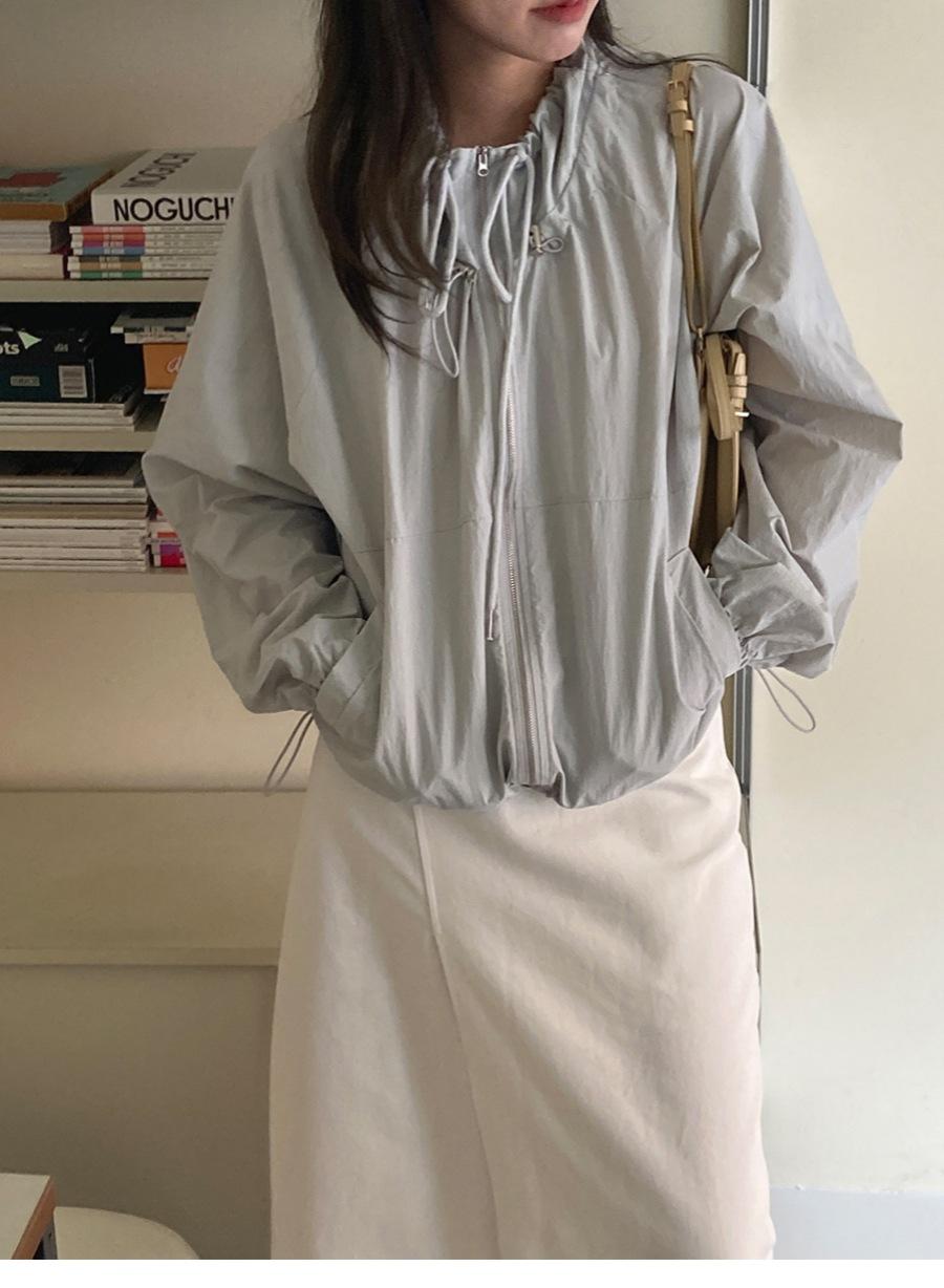 2025 Estilo Coreano Verano Nuevo Versátil Holgado Cintura con Cordón Cuello Alto Clásico Chaqueta Ligera Anti-Moda Protección Solar para Mujer de Moda