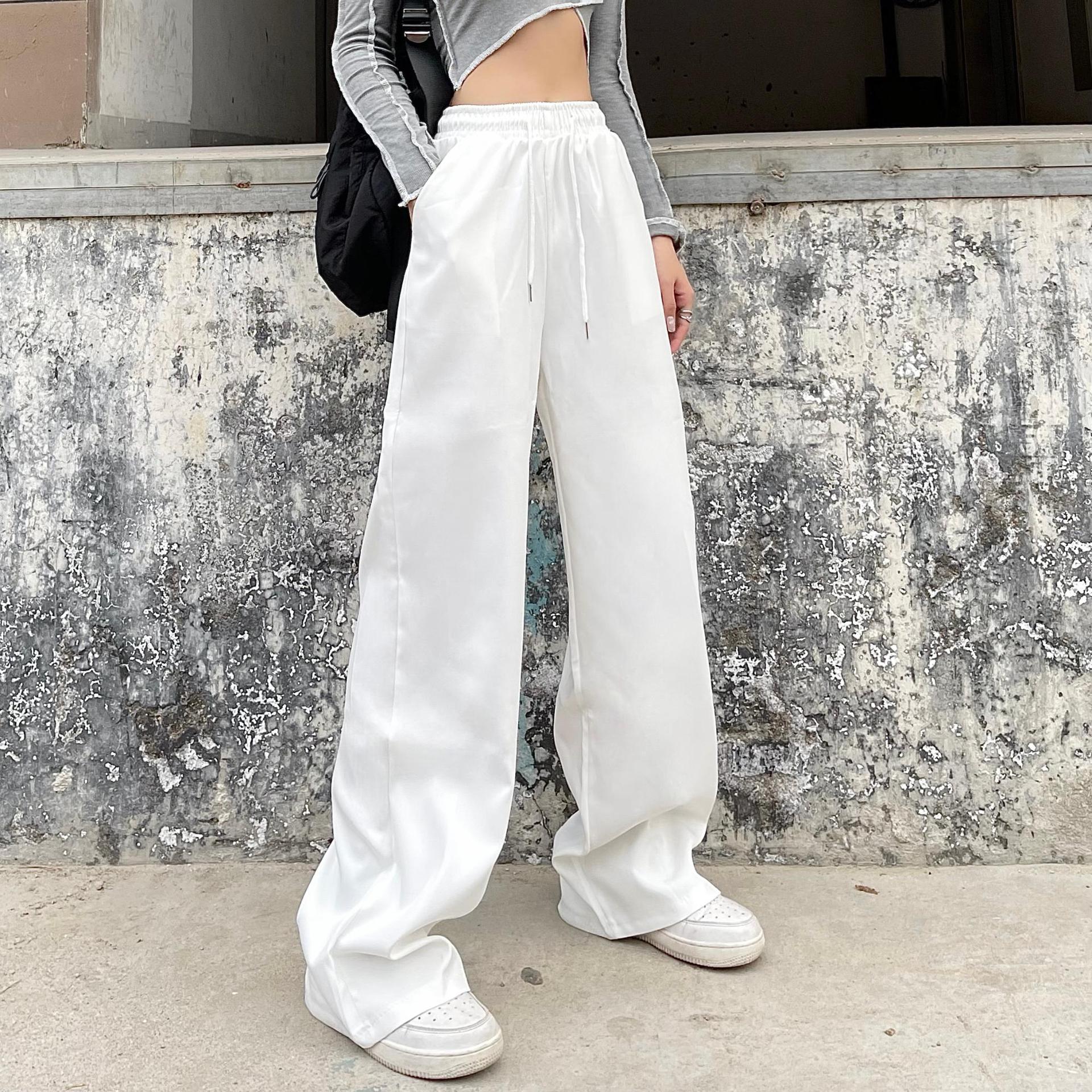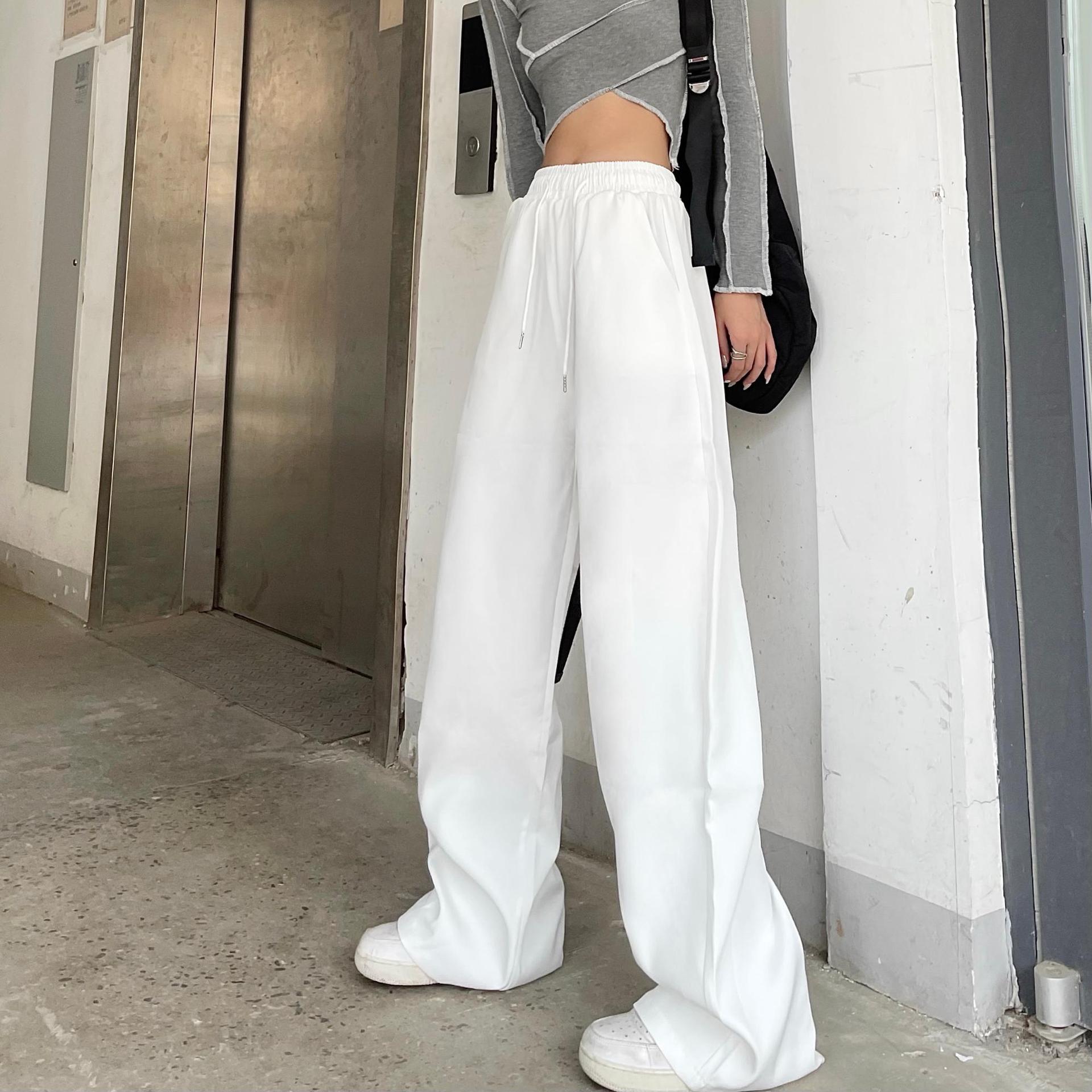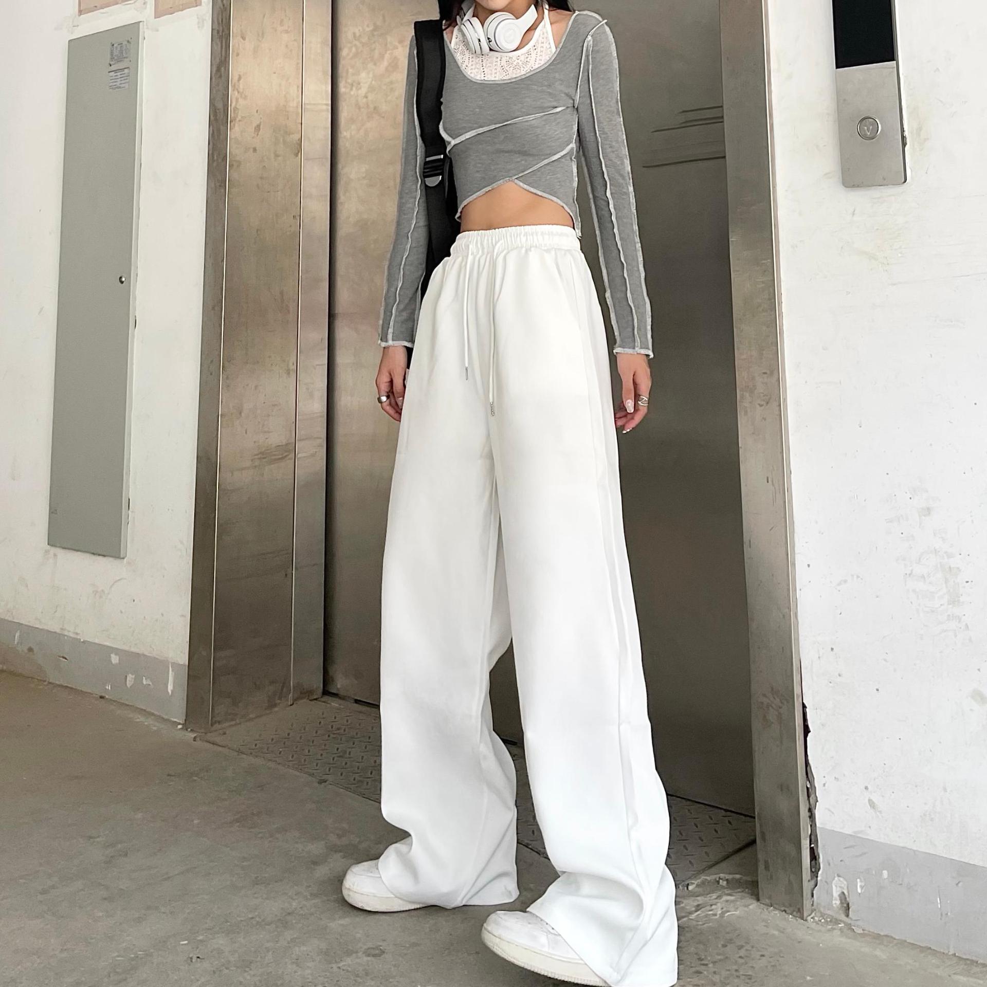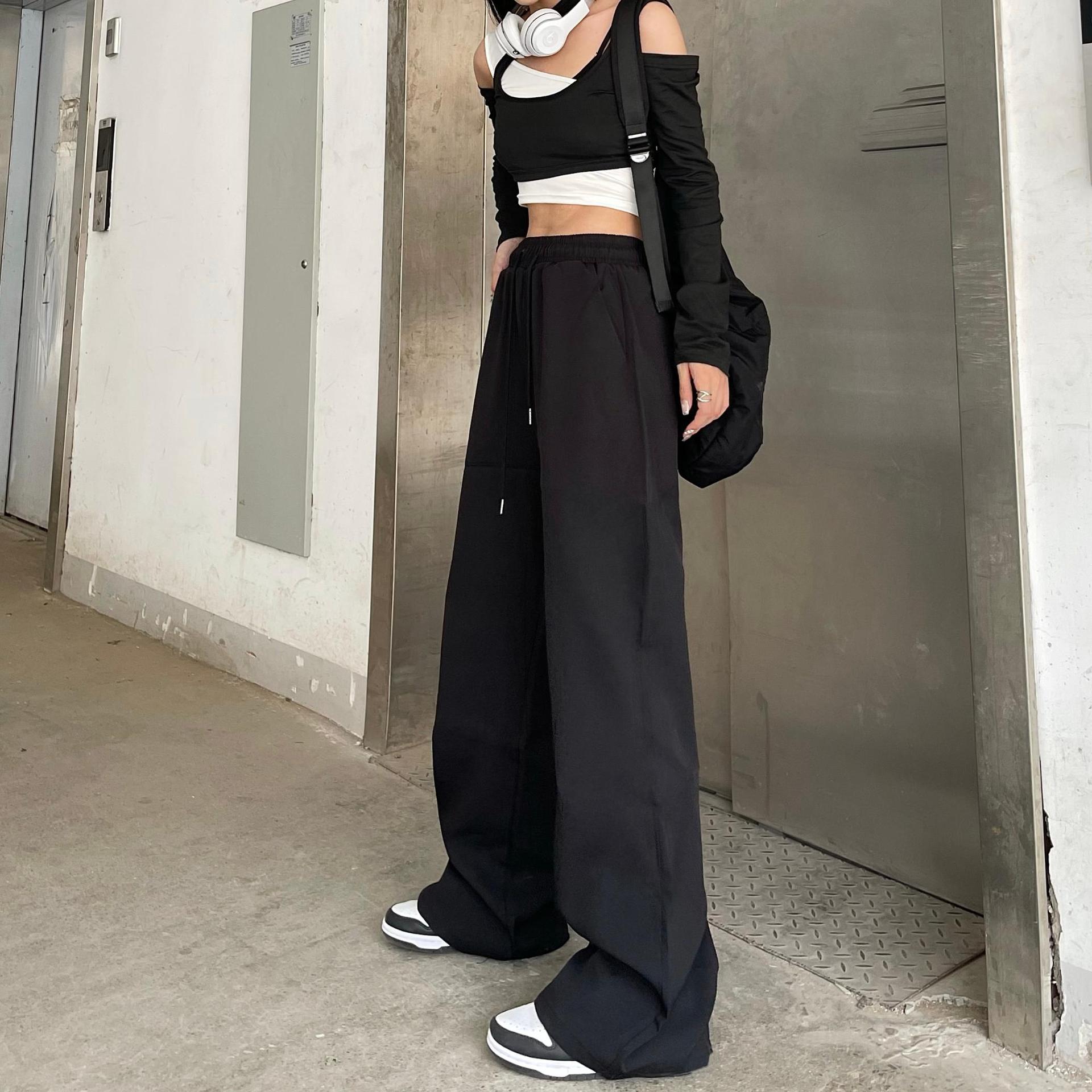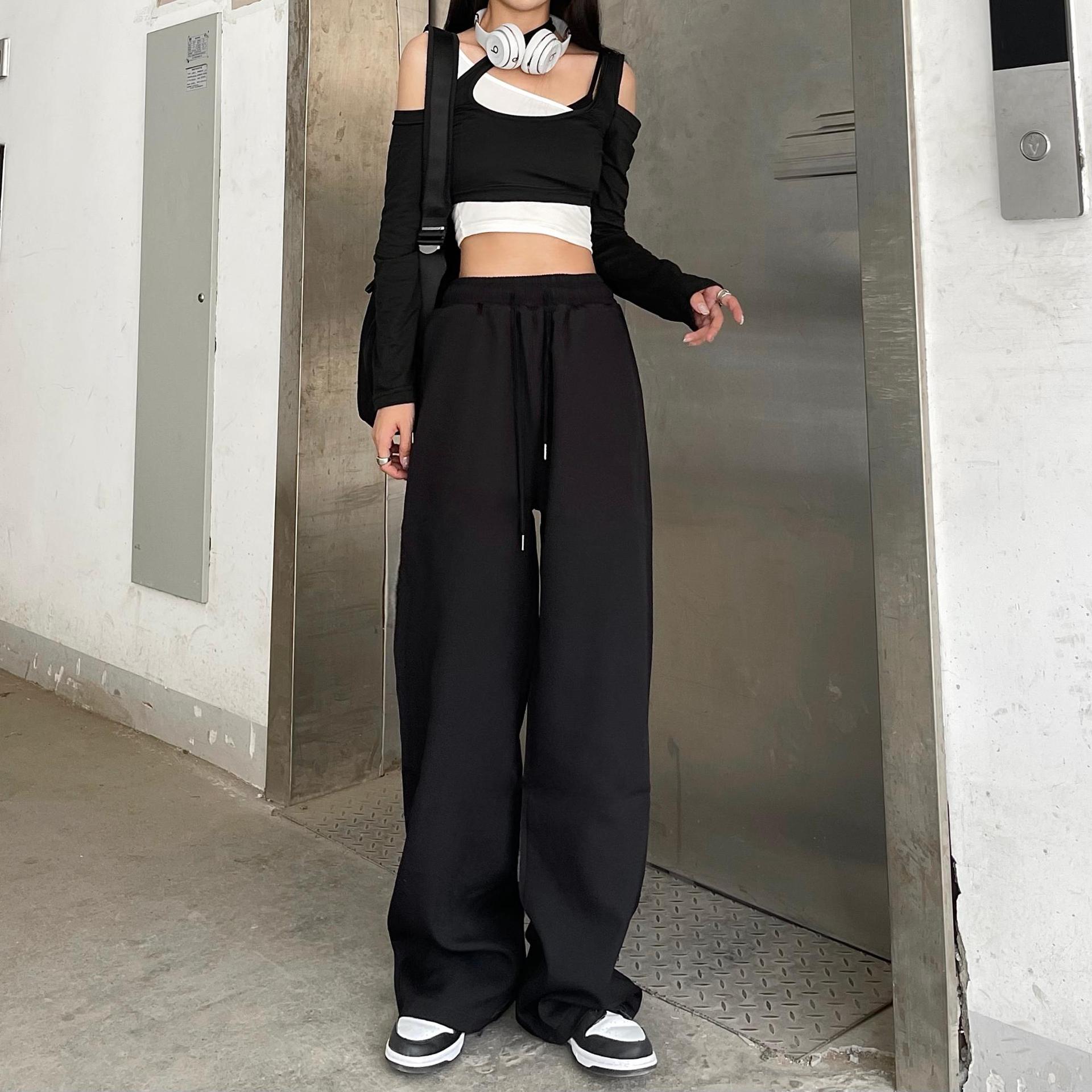 Tiro real talla grande casual pantalón de mop deportivo para mujer otoño Nuevo recto cintura alta slim holgado pierna ancha pantalones al por mayor