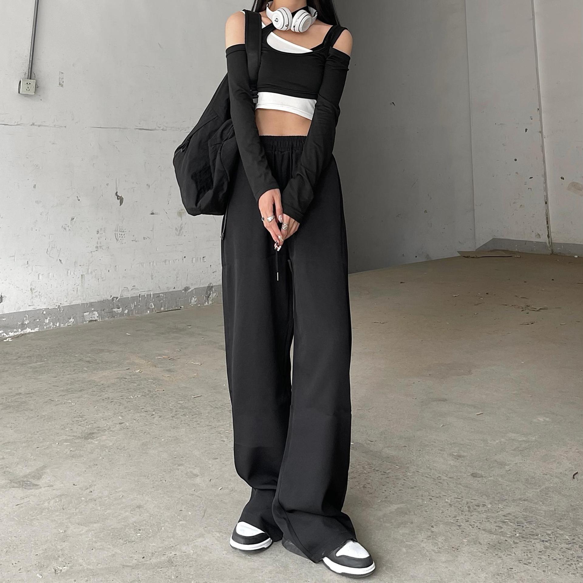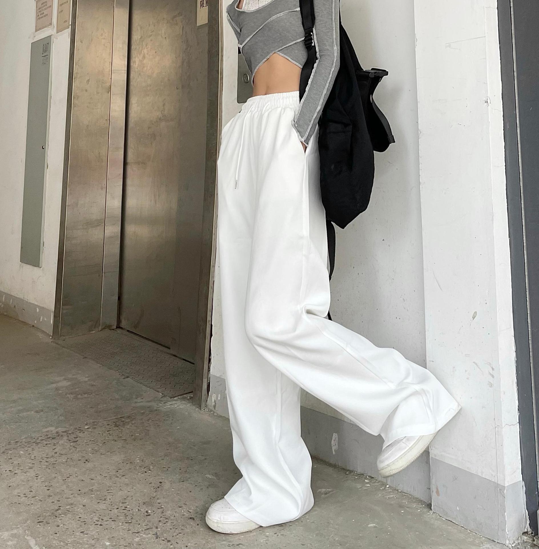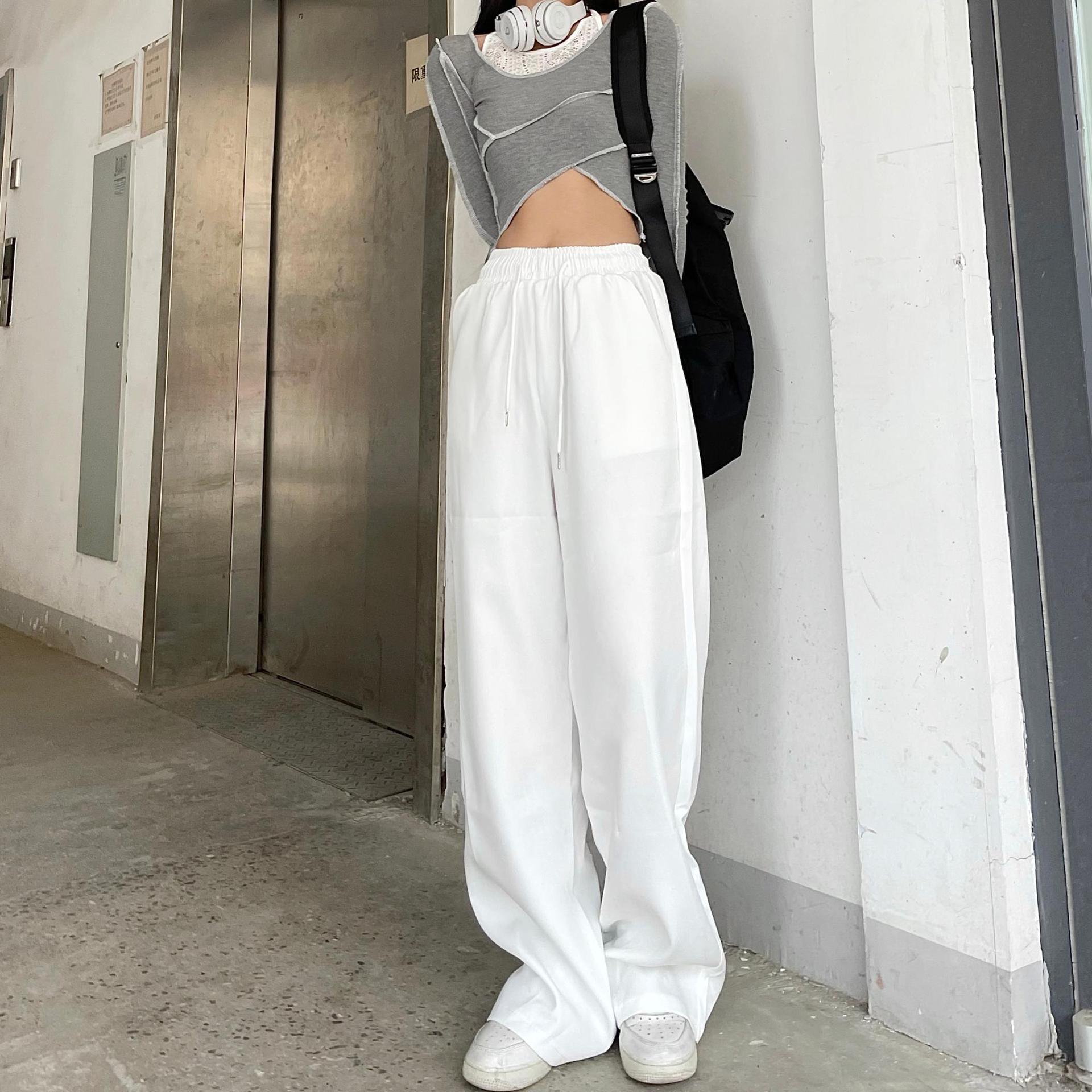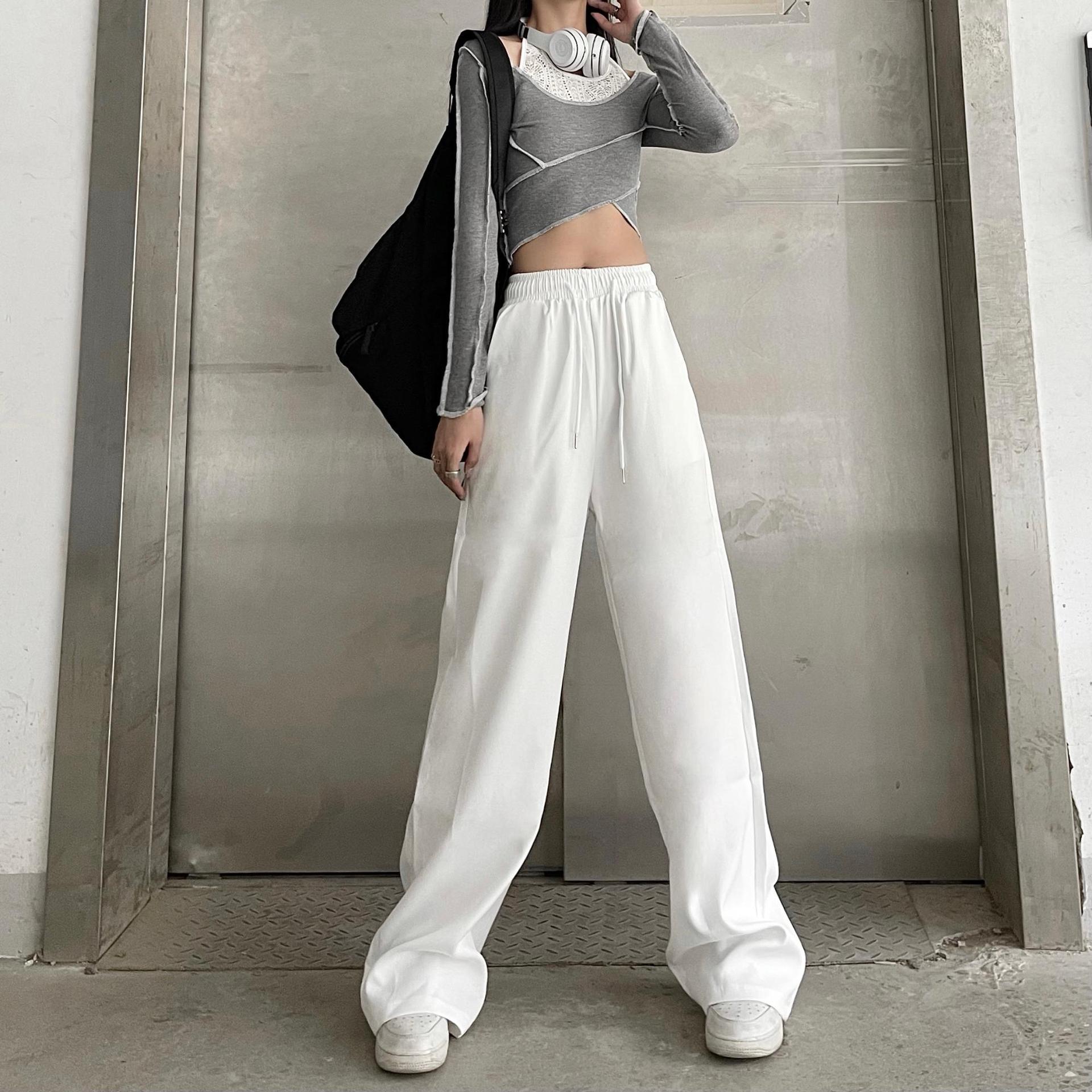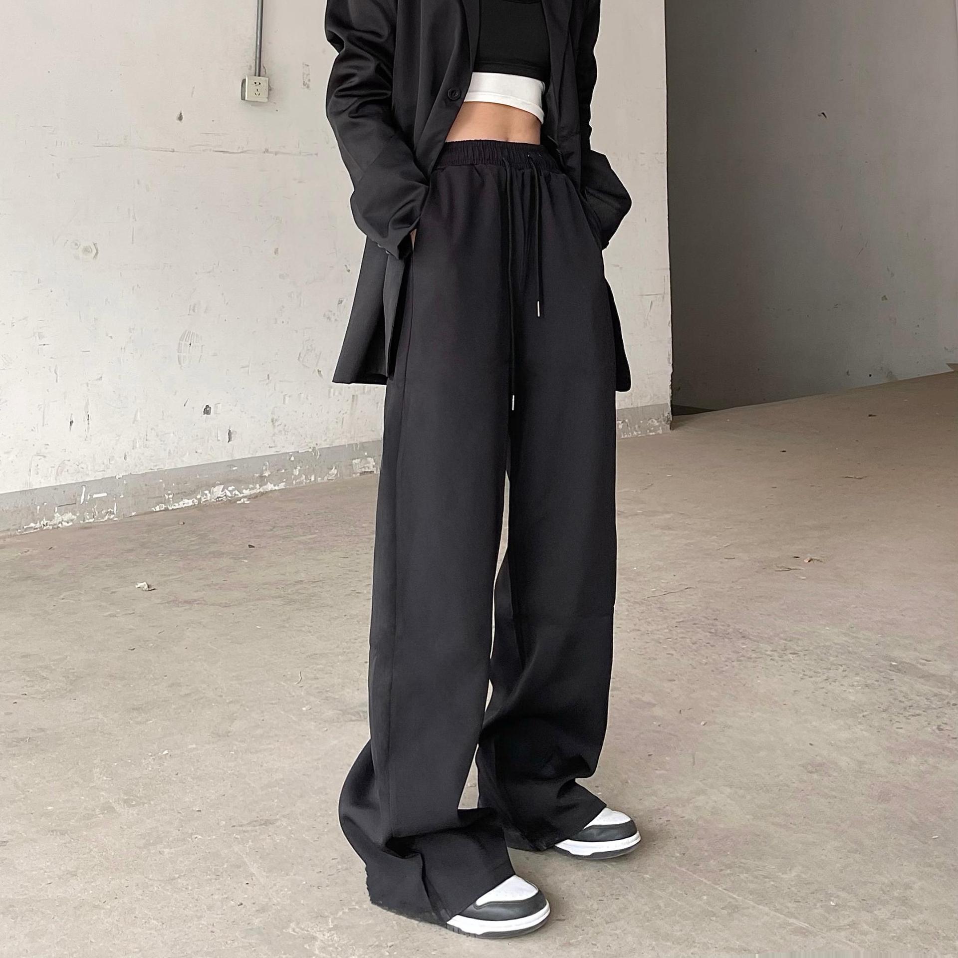 Tiro real talla grande casual pantalón de mop deportivo para mujer otoño Nuevo recto cintura alta slim holgado pierna ancha pantalones al por mayor