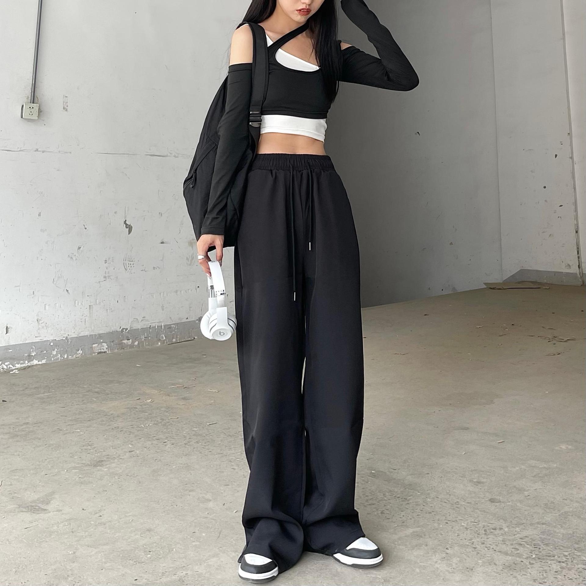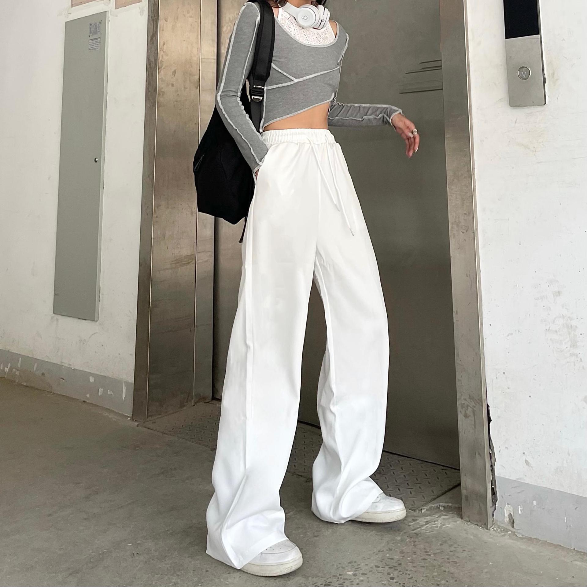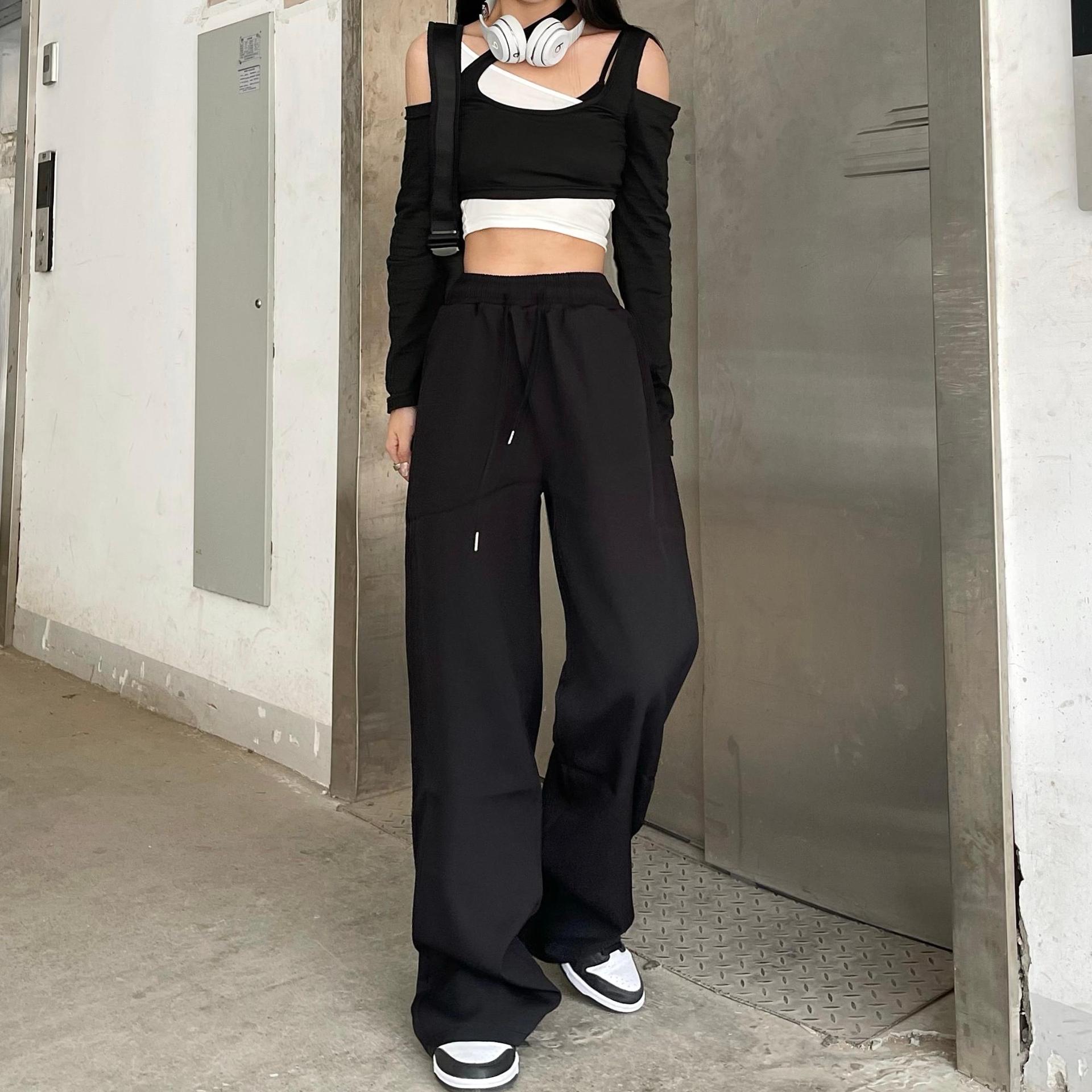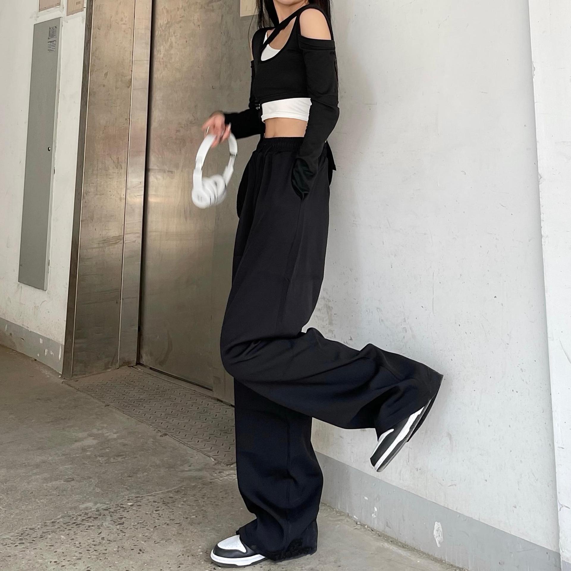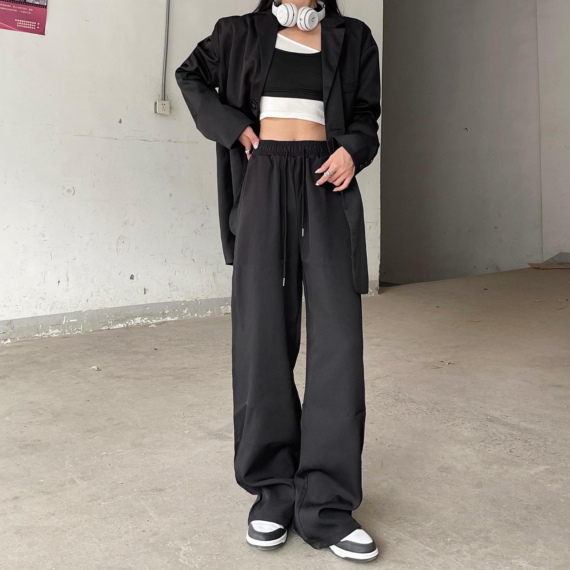 Tiro real talla grande casual pantalón de mop deportivo para mujer otoño Nuevo recto cintura alta slim holgado pierna ancha pantalones al por mayor